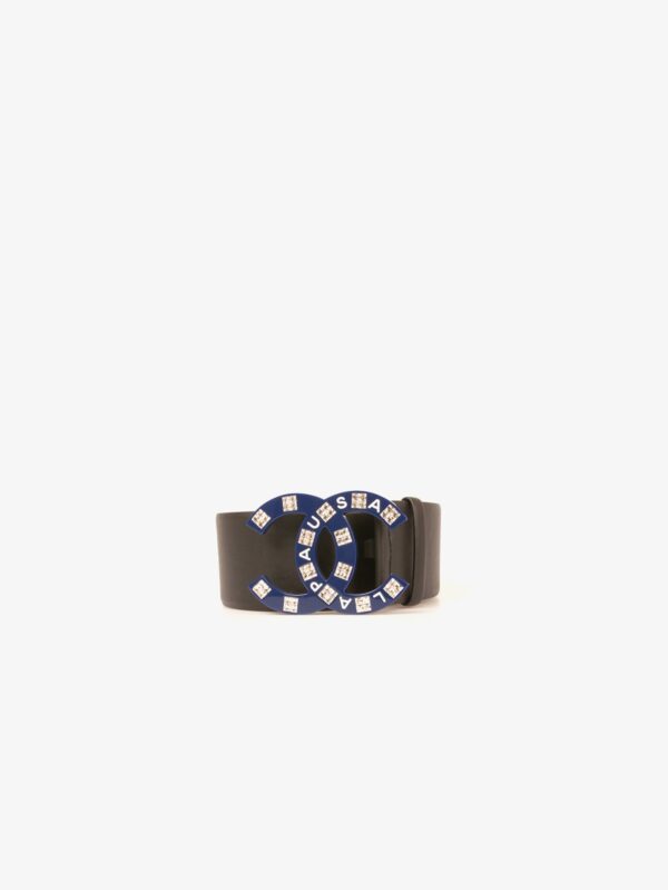 Chanel black leather belt CC buckle rhinestones