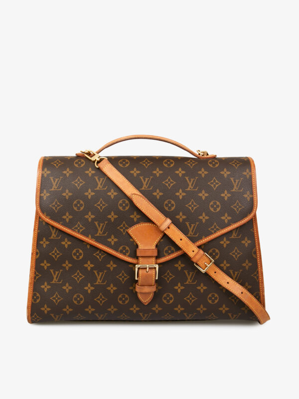 1450€This Louis Vuitton Beverly satchel, dated 1995, embodies the utilitarian refinement of the '90s through a structured silhouette and meticulous tailoring. Made in the house's emblematic Monogram coated canvas, it is accented with smooth-grained natural leather, whose warm patina testifies to its vintage authenticity. It features a removable, adjustable cowhide leather shoulder strap and a rigid handle, offering dual carrying possibilities. Its triangular flap closes with a central gold-plated brass buckle, giving it a look that's as elegant as it is functional. This model offers generous capacity and a well-appointed interior, ideal for everyday or professional use. In very good condition.
