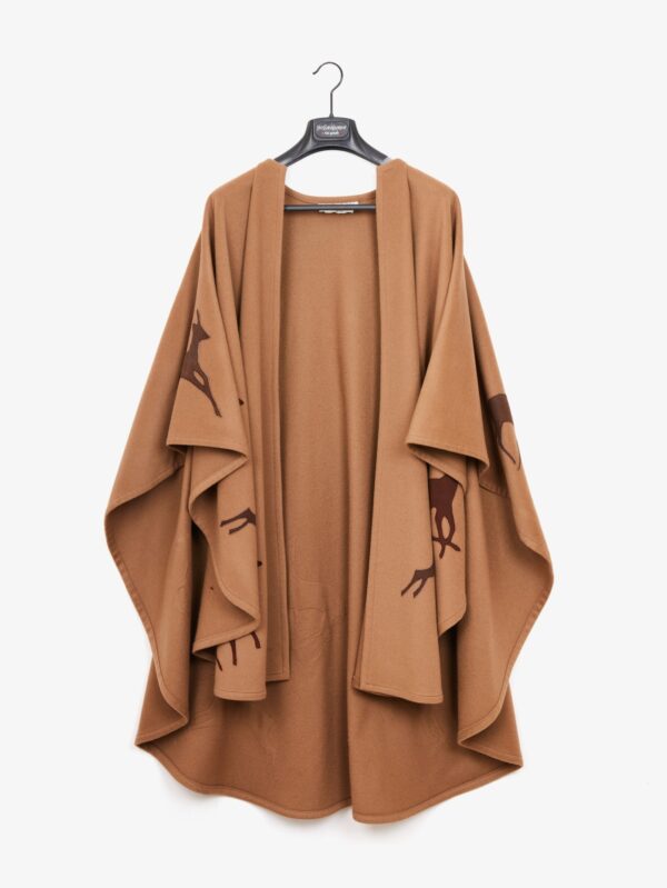 Yves Saint Laurent brown cashmere cape adorned with deer. Sublime vintage piece. In very good condition.