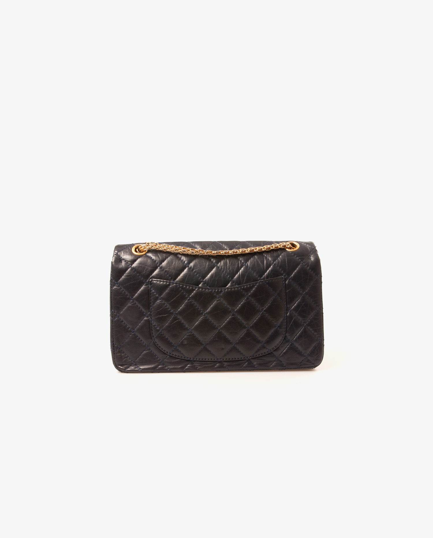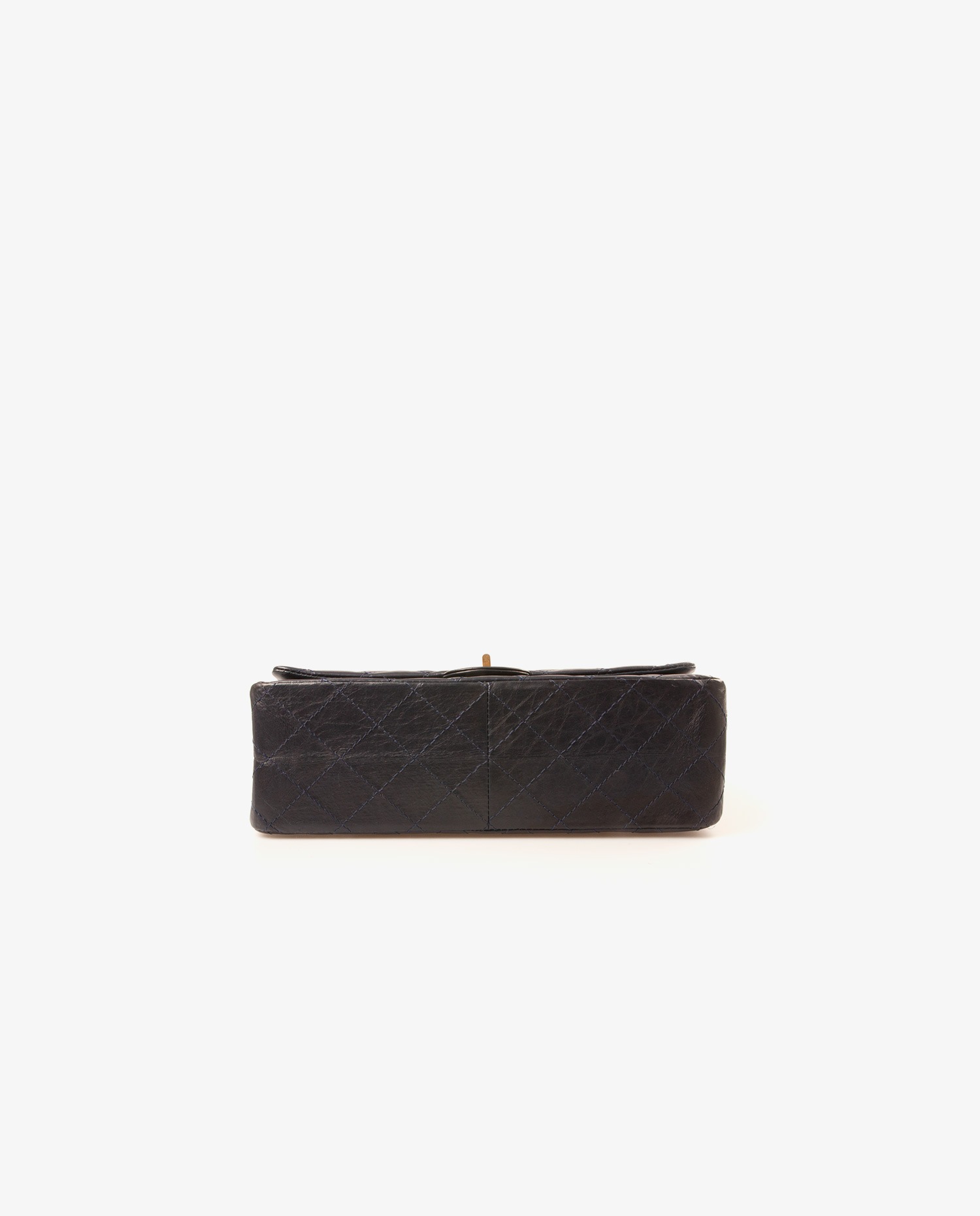 2.55 Chanel bag in navy blue distressed leather. Double flap. It can be worn on the shoulder or as a crossbody. The shoulder strap measures 102 cm.