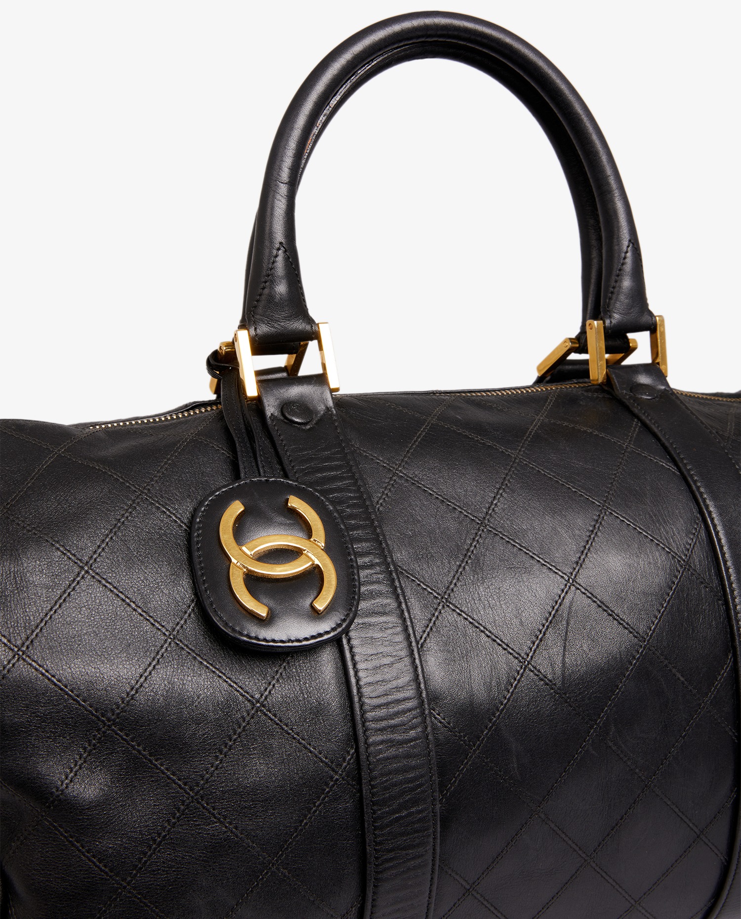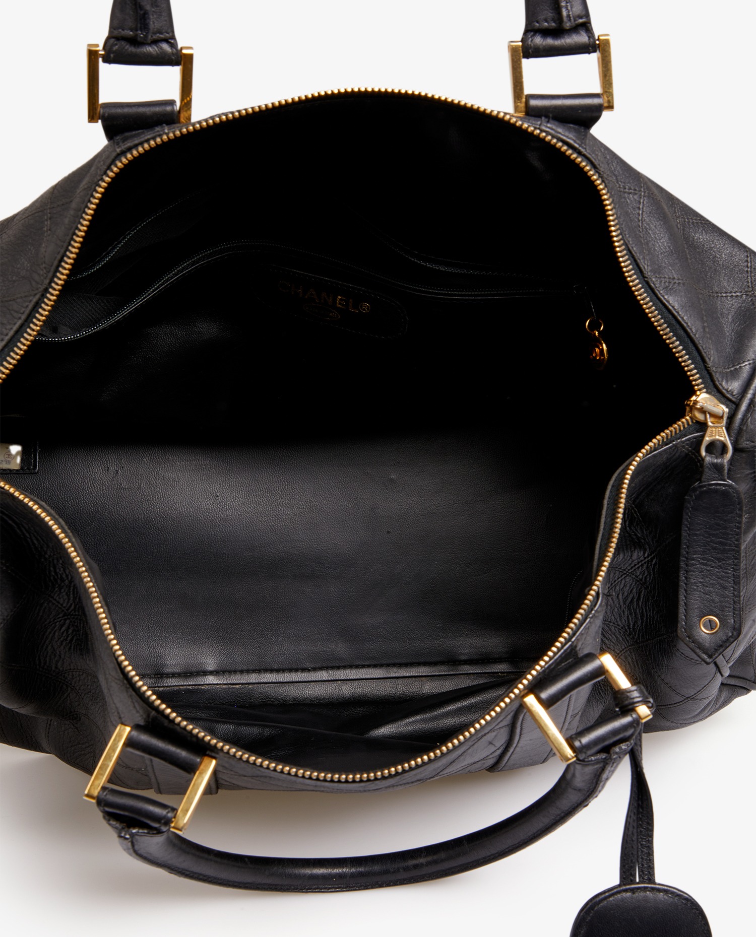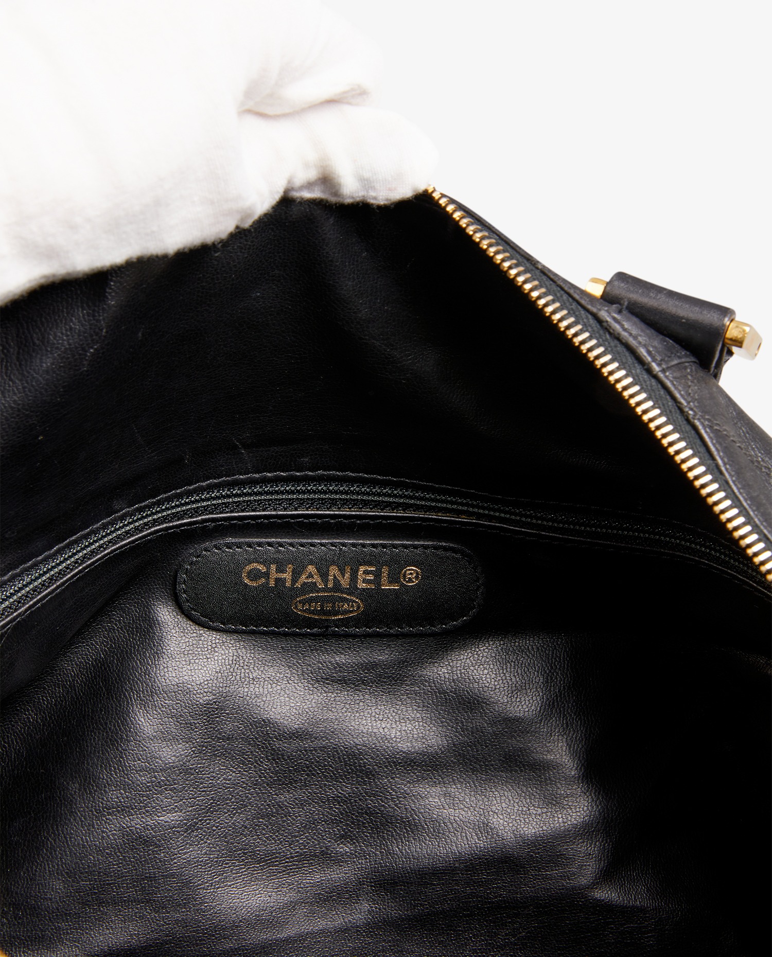 Chanel 48H bag in black leather. It can be carried by hand with a detachable shoulder strap measuring 94cm. Central zip fastening. In very good condition. A few scratches under the bag. See photos.