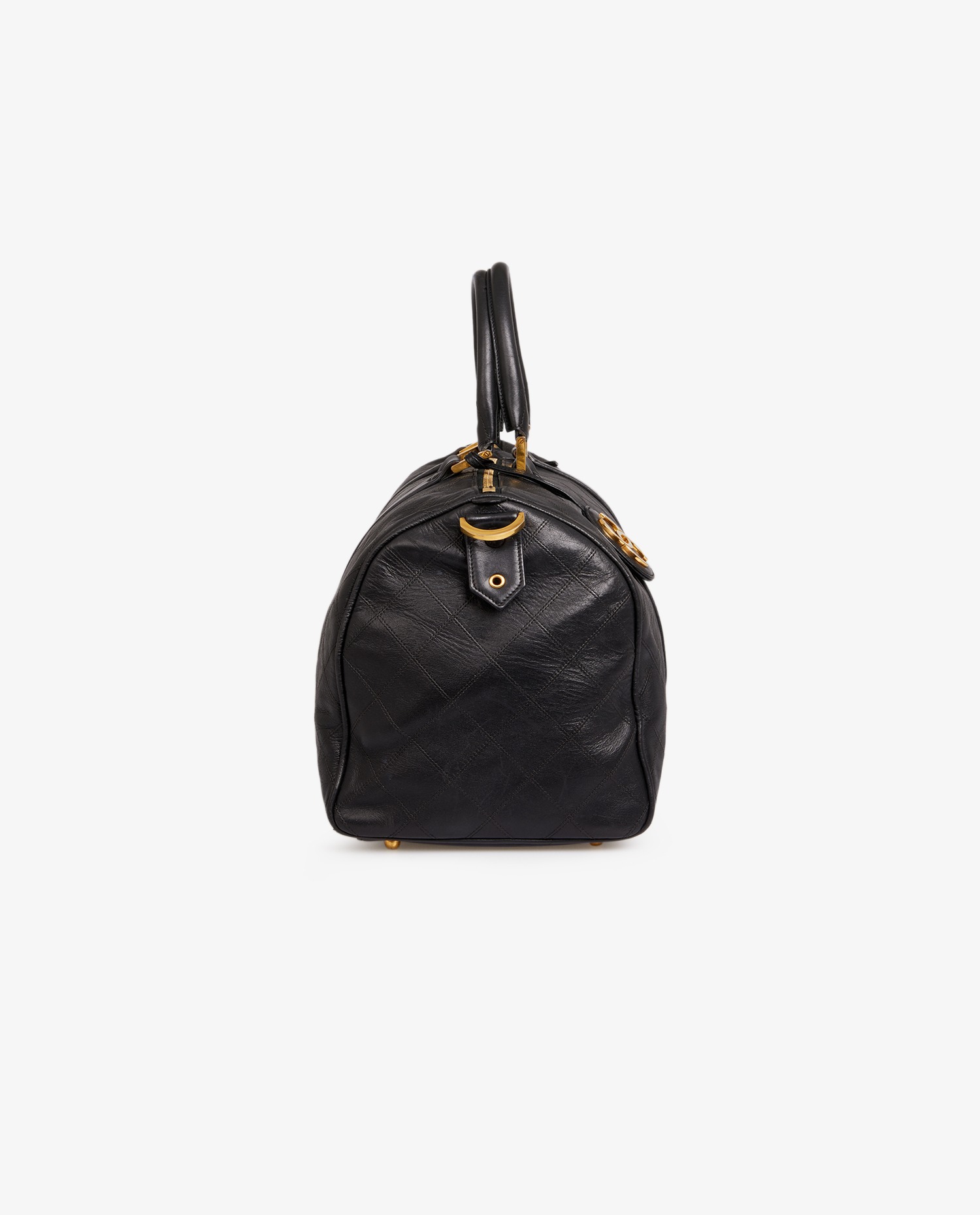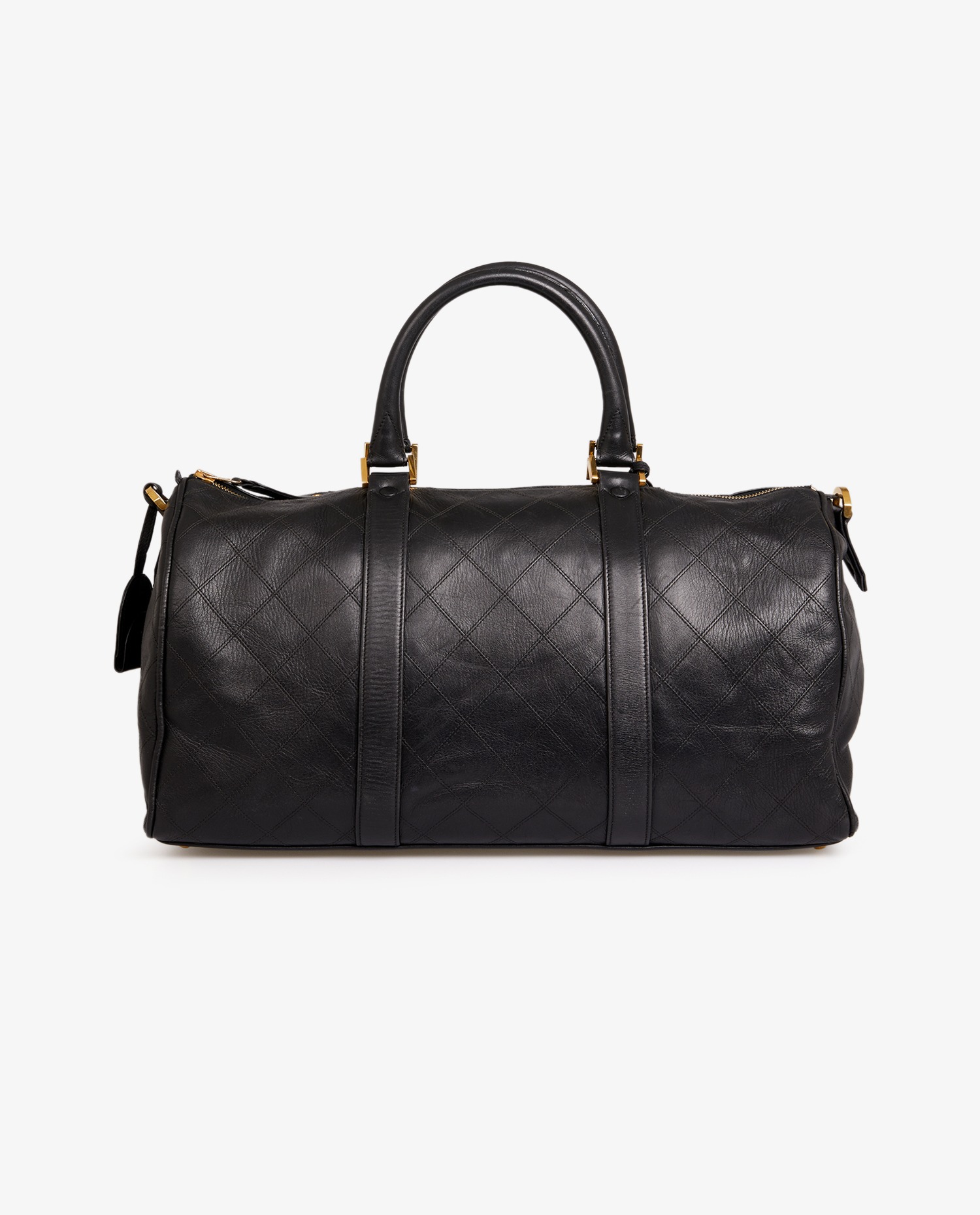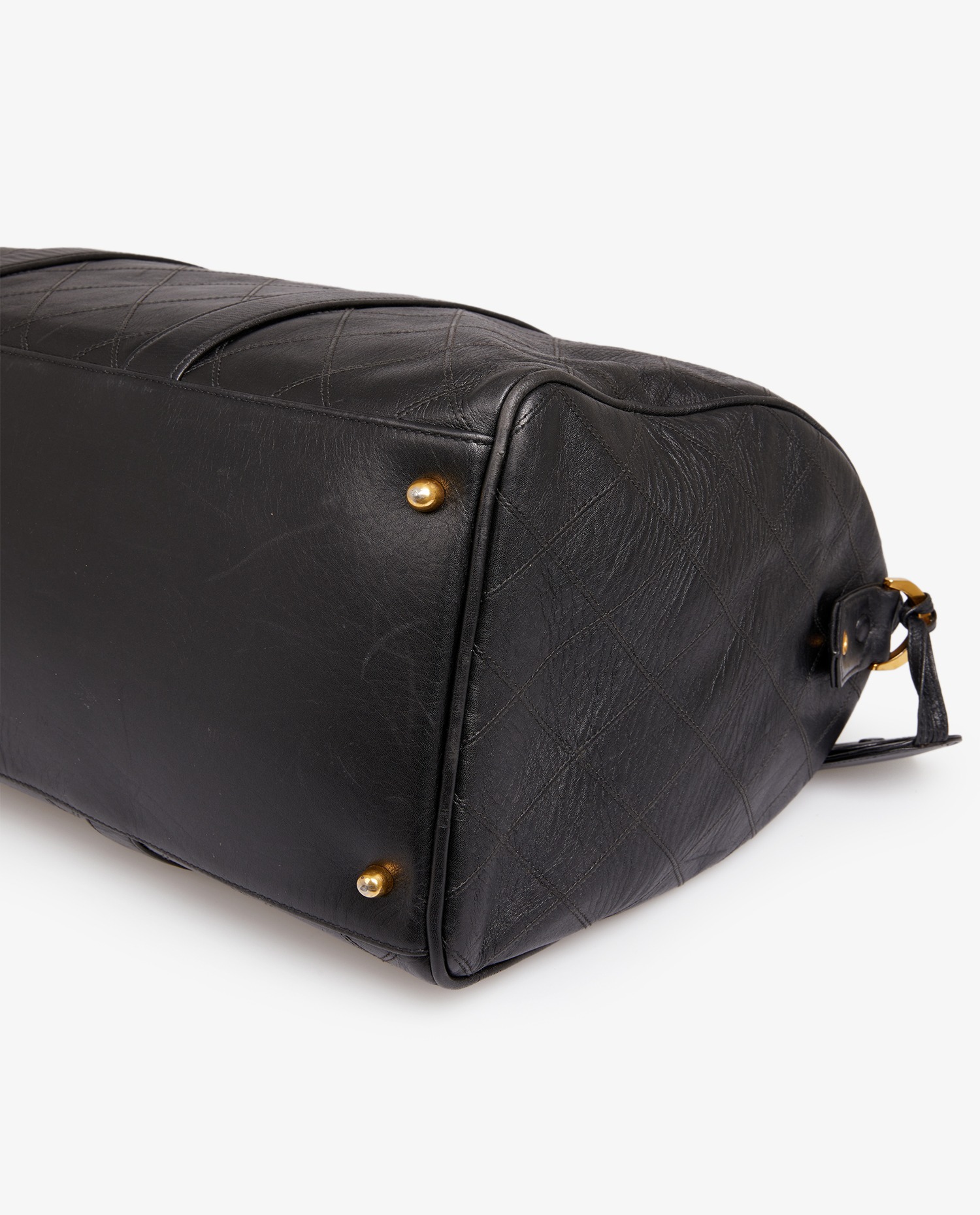 Chanel 48H bag in black leather. It can be carried by hand with a detachable shoulder strap measuring 94cm. Central zip fastening. In very good condition. A few scratches under the bag. See photos.