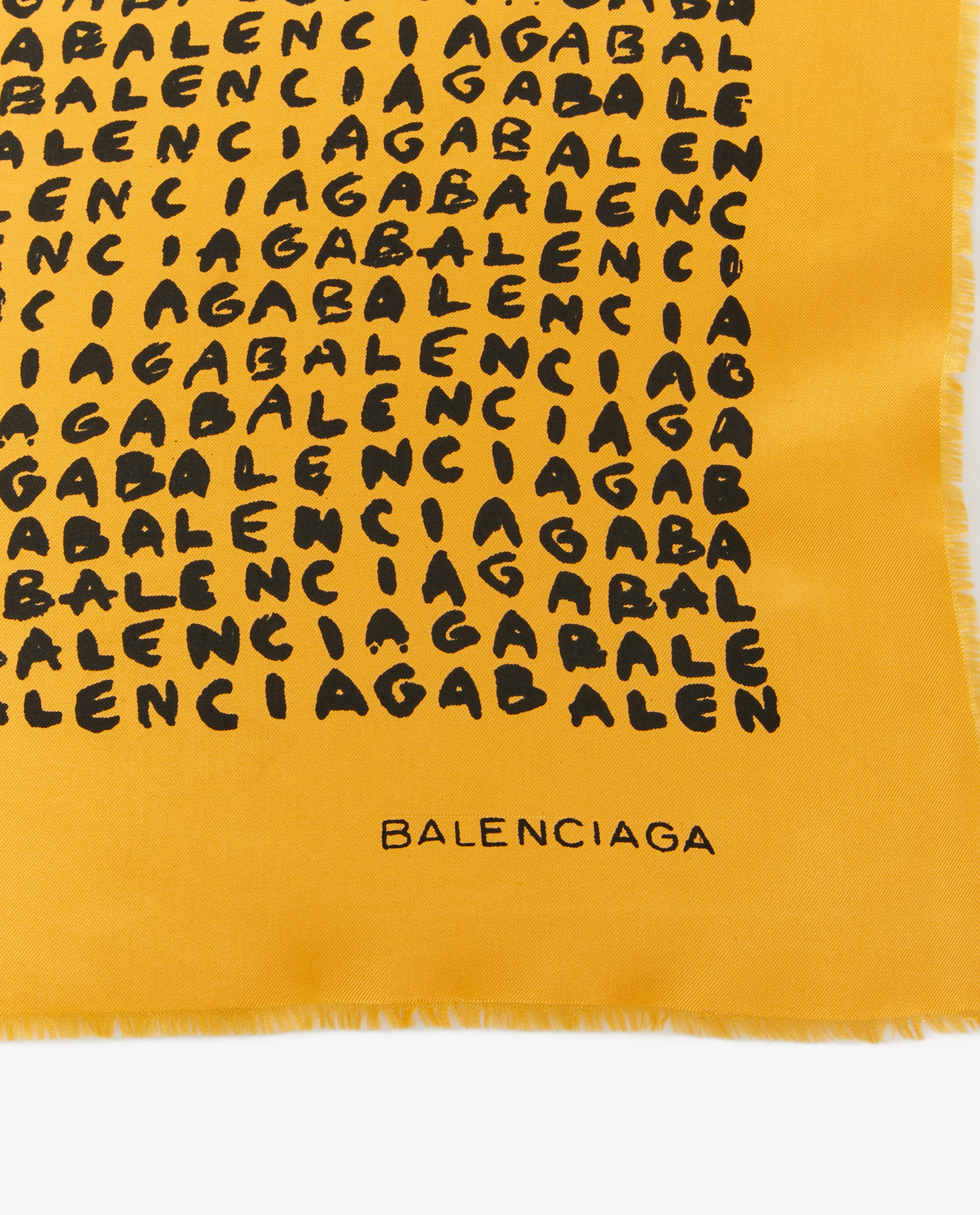 Balenciaga vintage yellow silk square with black lettering. In very good condition.