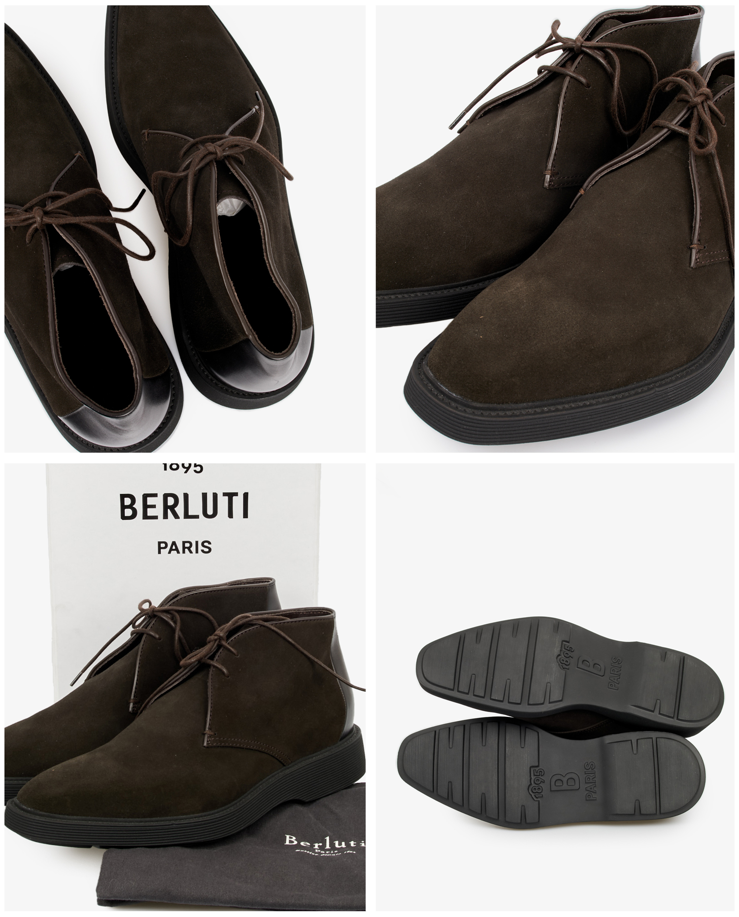 Berluti brown suede boots. Size 43.5. Finished at the back in lambskin leather. Delivered in original box and dustbag. New condition.