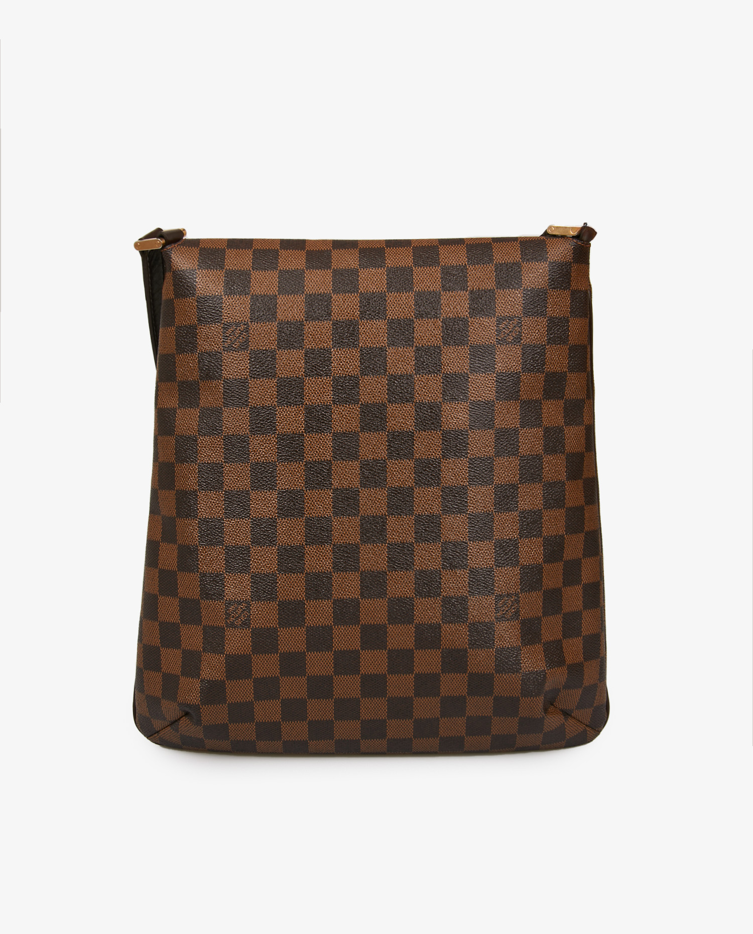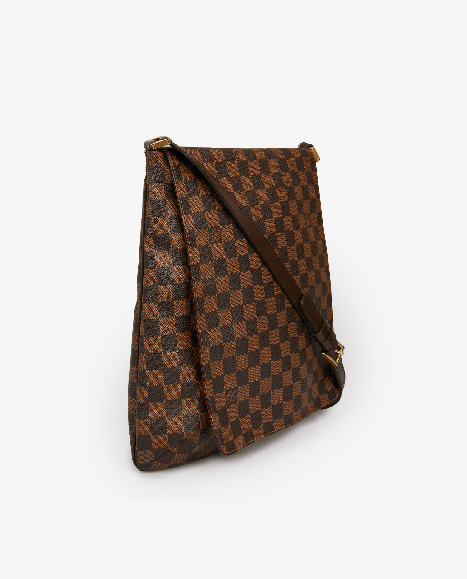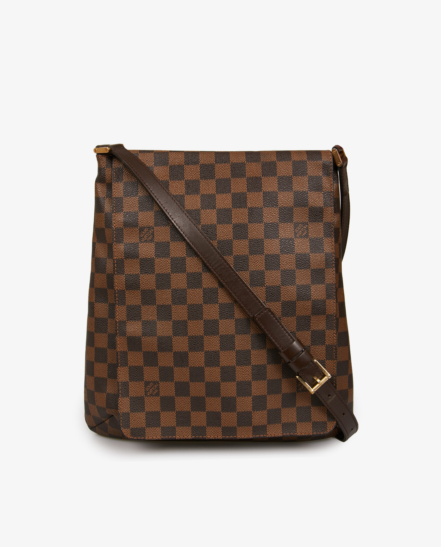 La Musette was introduced by Louis Vuitton in the 2000s as a more contemporary response to traditional shoulder bags. Inspired by urban saddlebags, it combines flexibility, structure and minimalist elegance. In 2013, this model is offered in Ébène checkerboard canvas, a heritage motif created by the house as early as 1888 and revived in the 1990s. It reflects a more discreet aesthetic than the Monogram, while affirming Louis Vuitton’s visual identity.