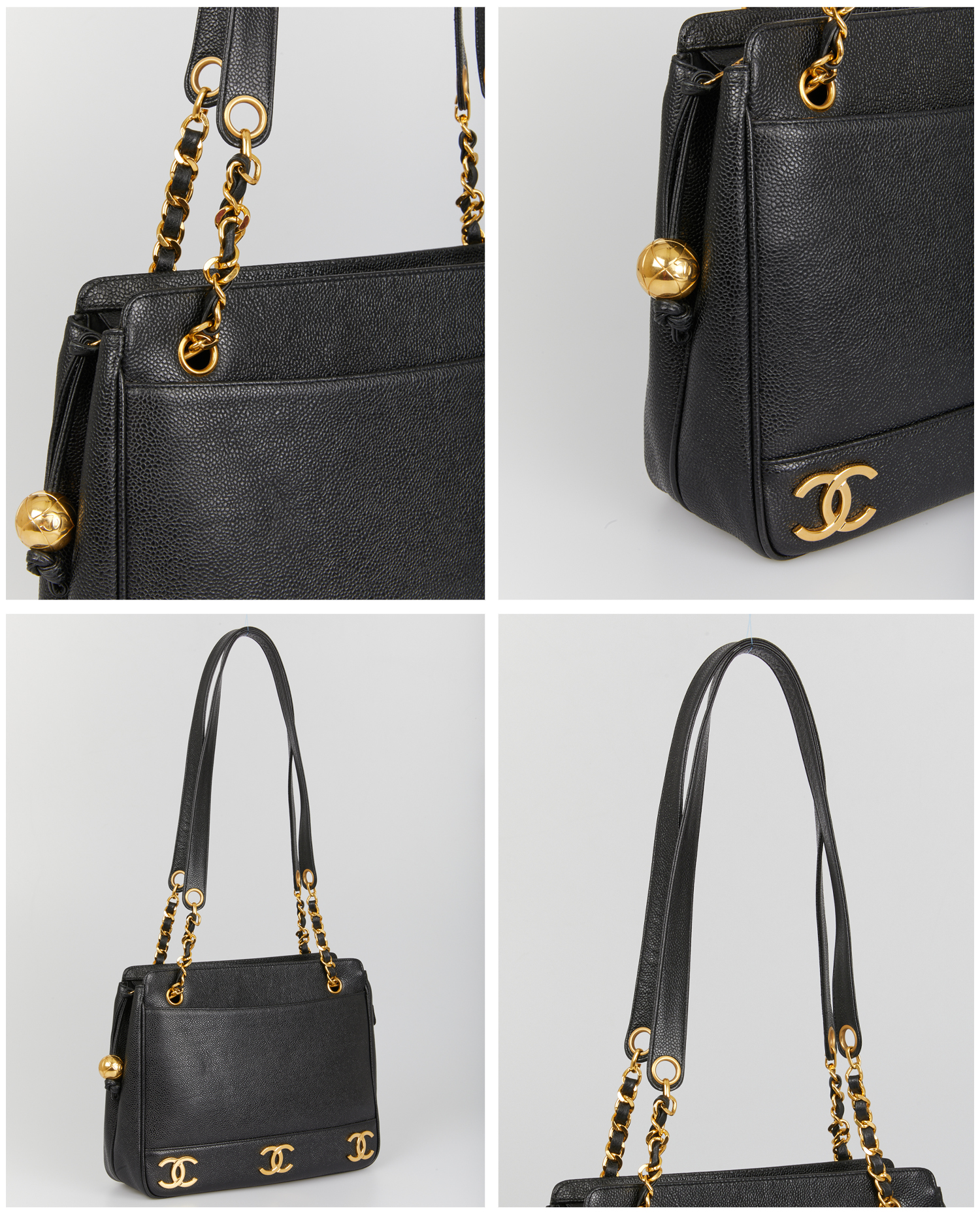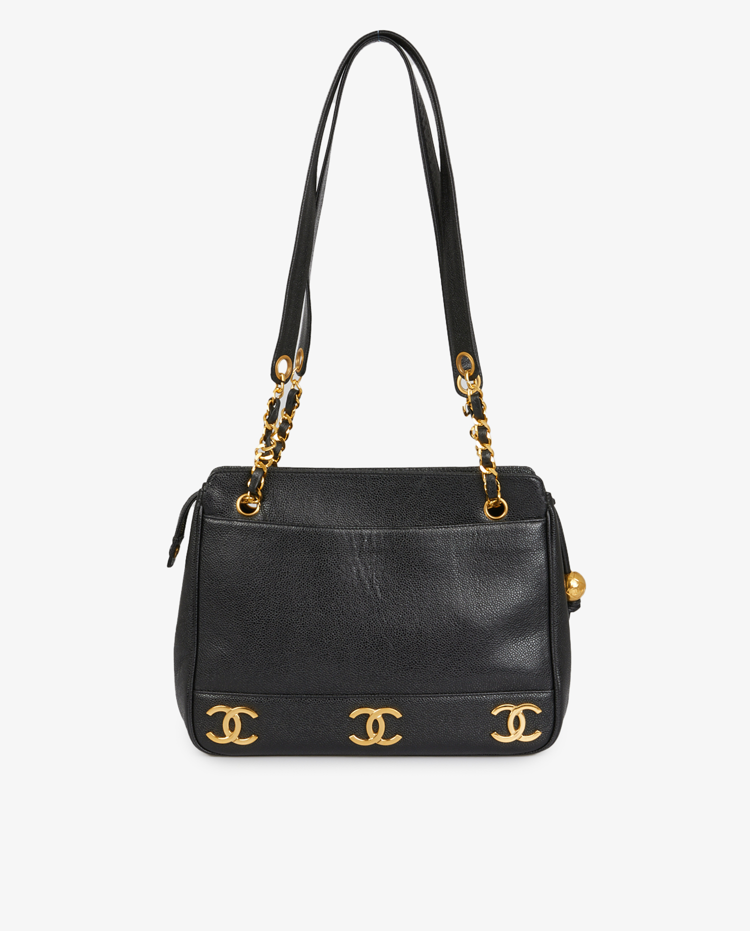 Vintage black grained leather Chanel tote bag. Zipper closure. Carried on the shoulder. In very good condition.