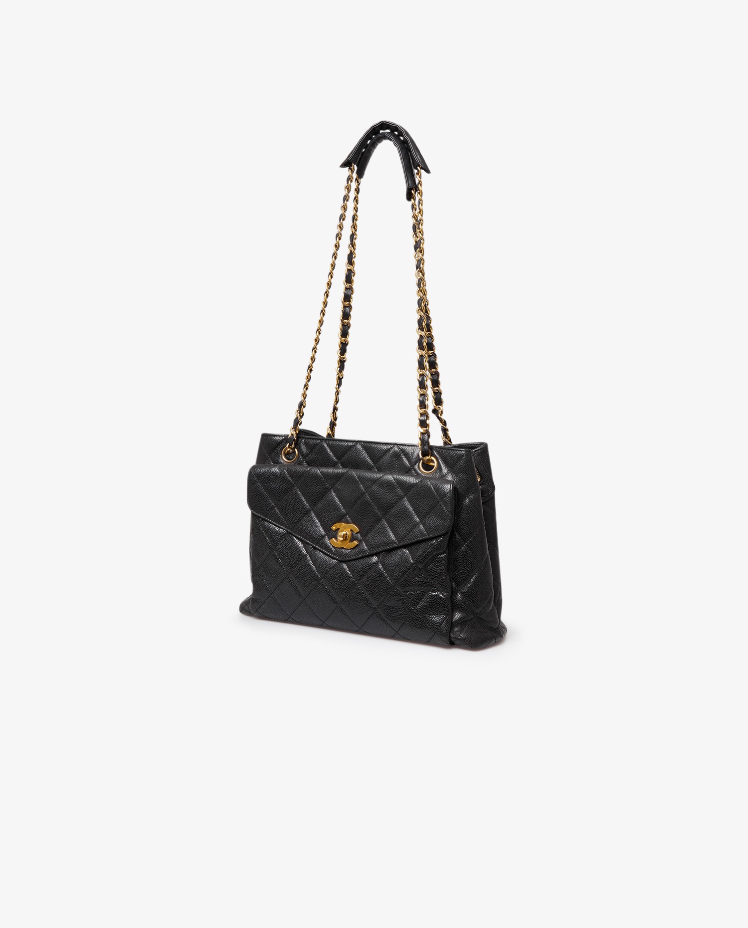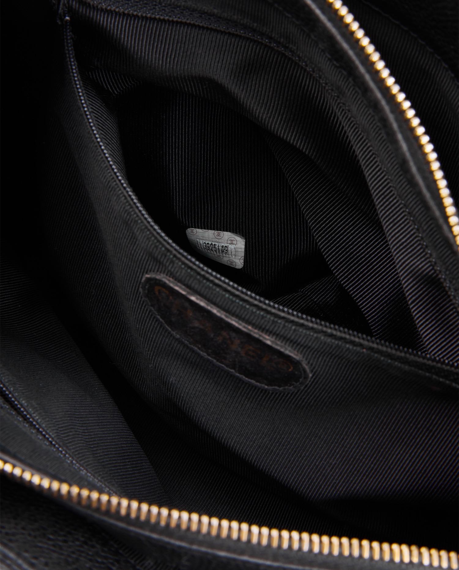 Chanel black grained leather bag. Carried on the shoulder. Ideal for all your everyday accessories. Black canvas interior with 3 storage compartments, 1 of which is zipped. It is in very good condition. Some minor wear and tear.