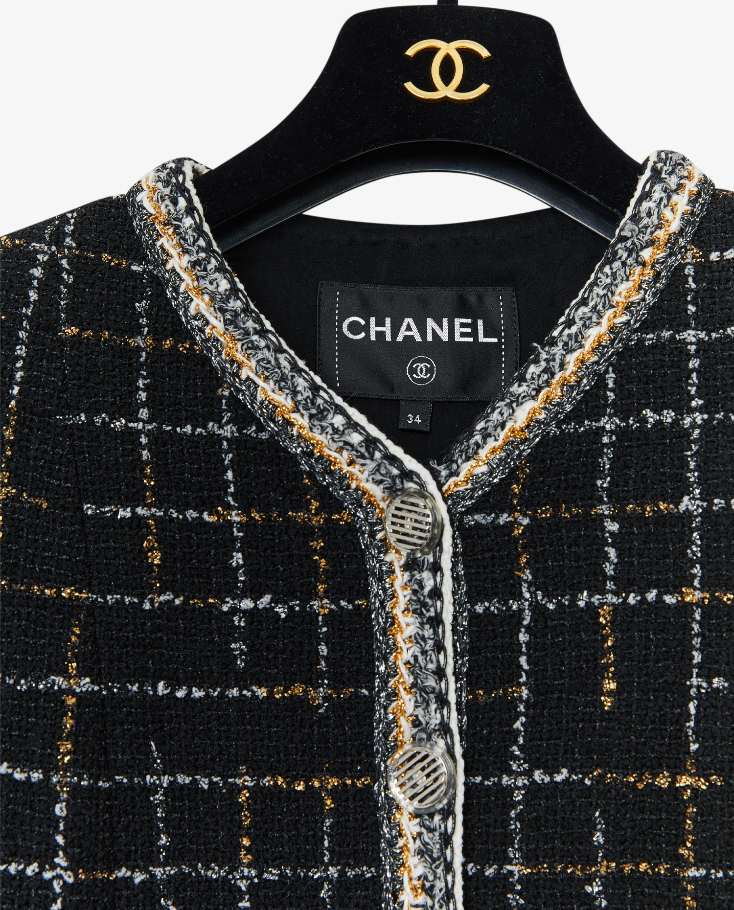 Chanel black tweed jacket with silver and gold threads. Intimate technology” collection, Ready-to-wear Spring/Summer 2017. Black silk lining. In very good condition.