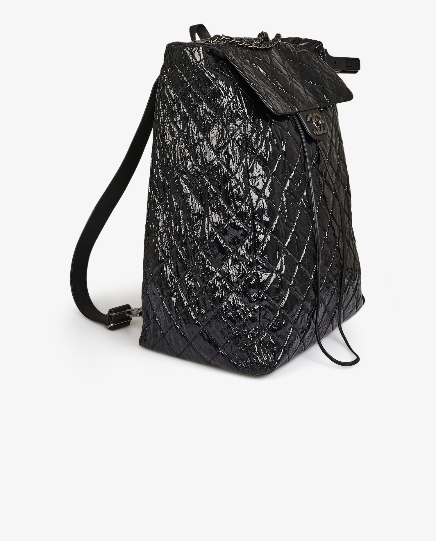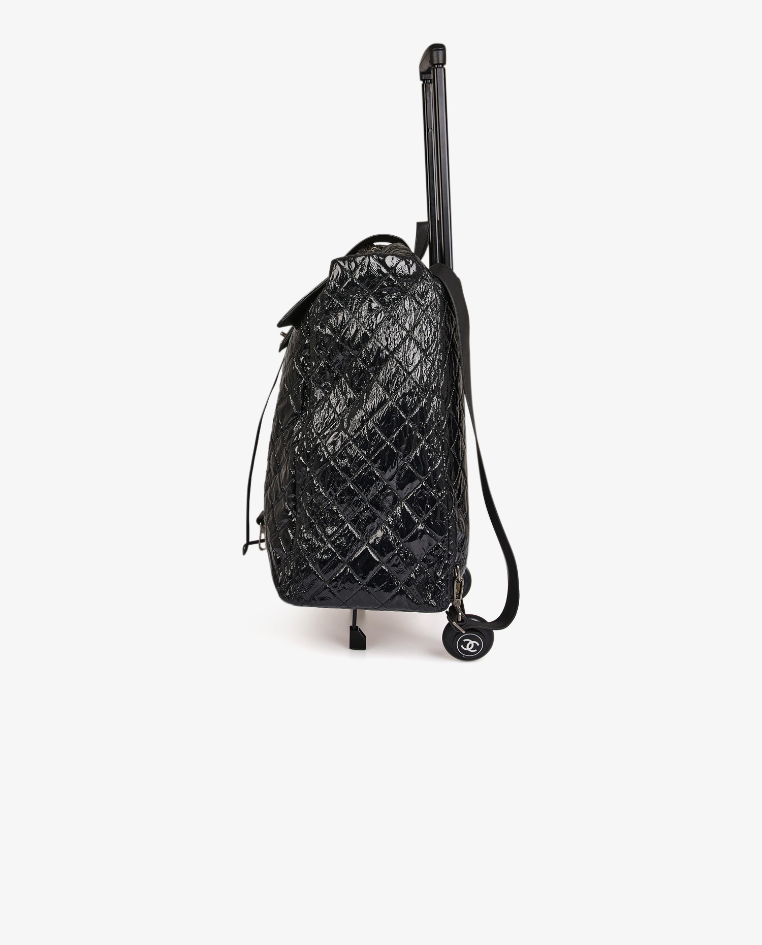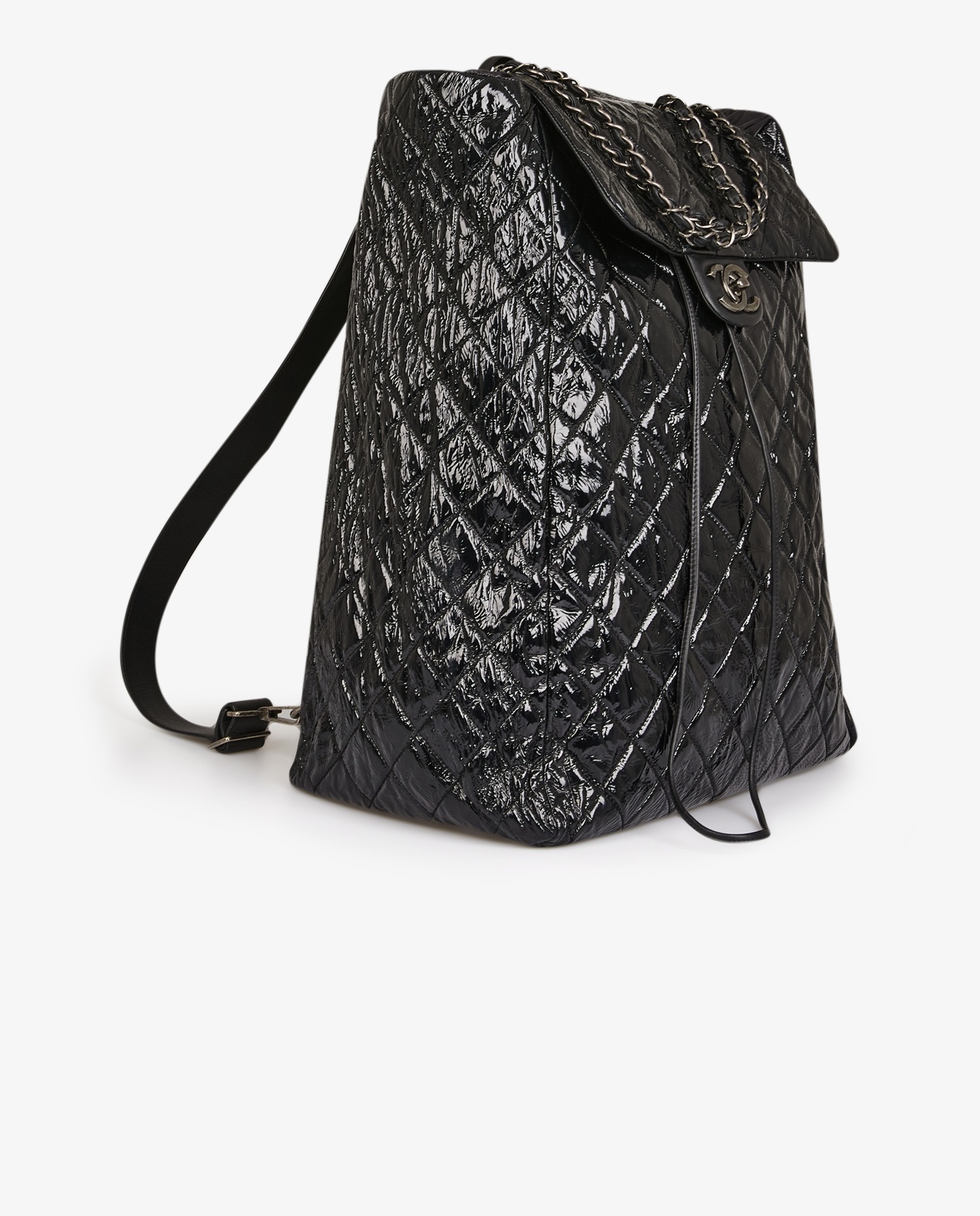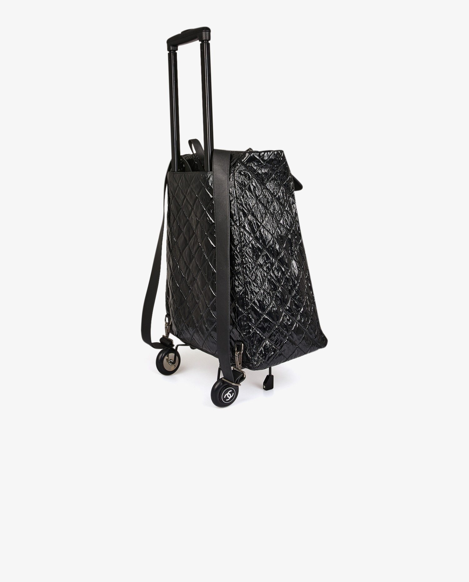 Collector! Chanel suitcase in black patent leather. The bag can also be worn as a backpack. In excellent condition.