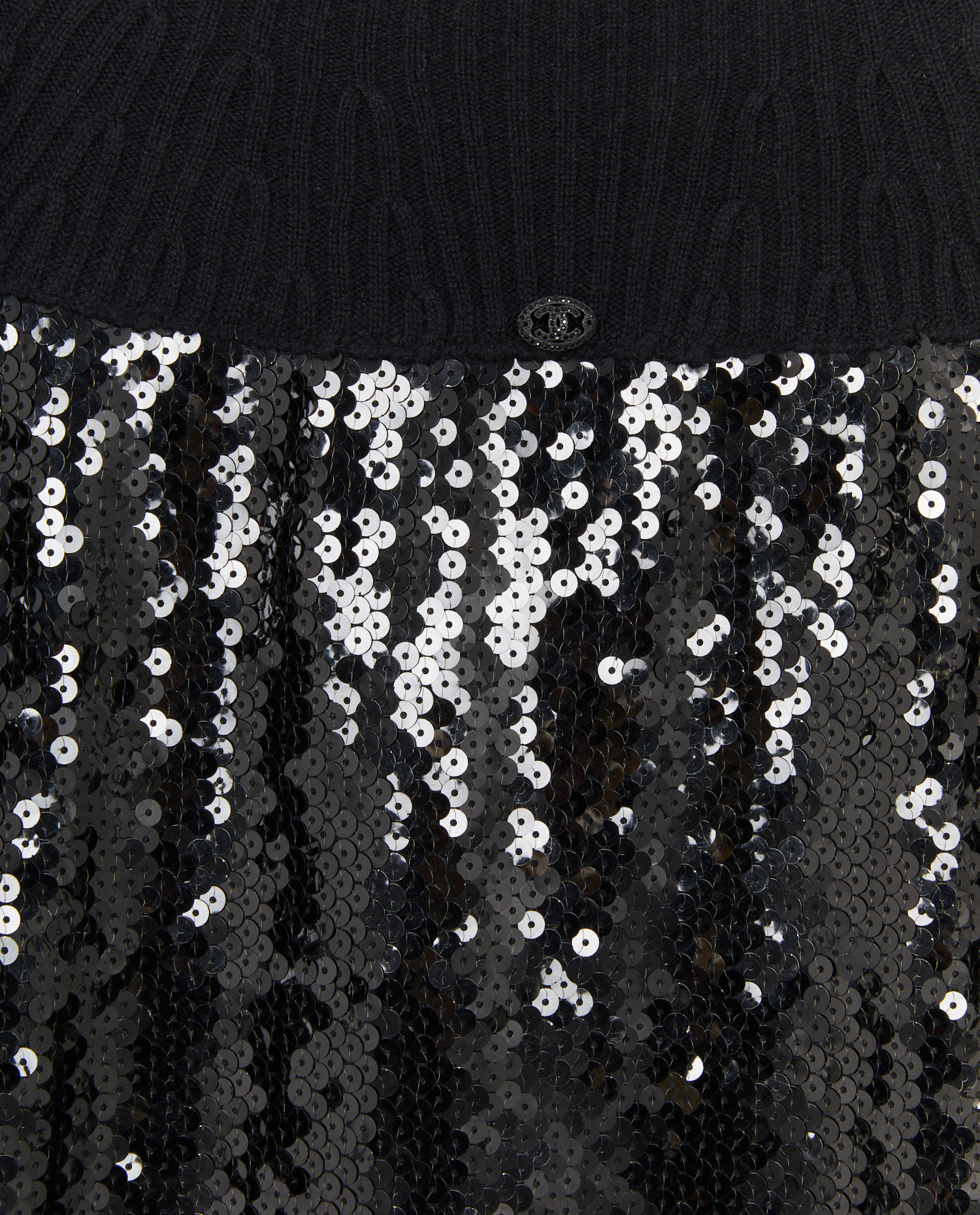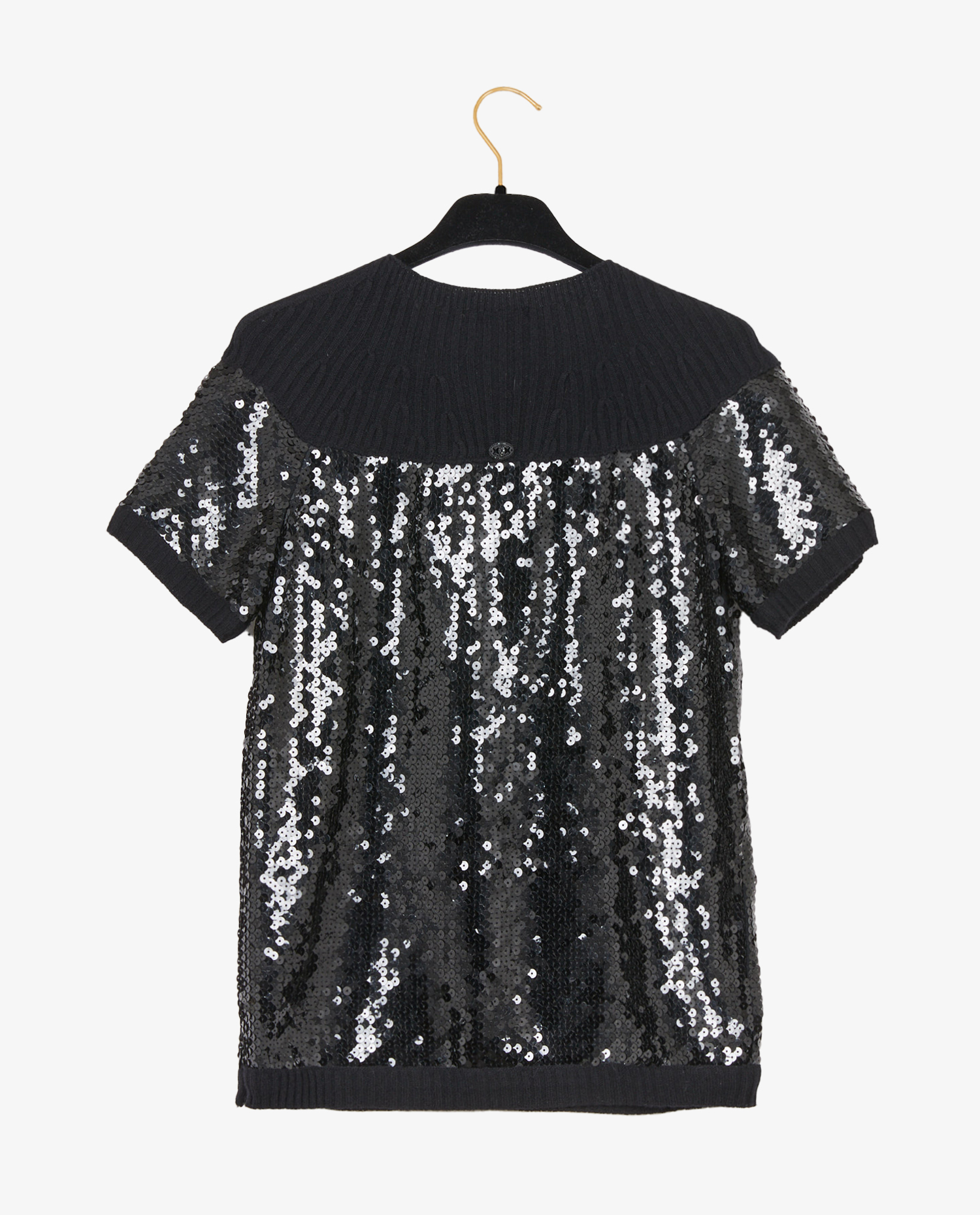 Chanel top with black sequins. Round collar. Size 34. In very good condition.