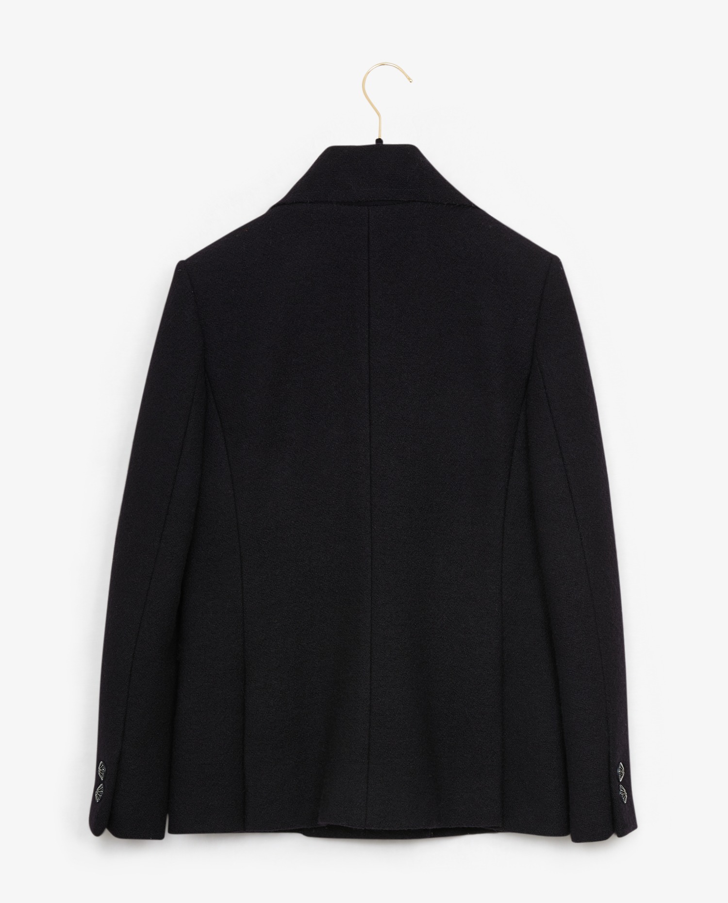 Chanel black tweed double-breasted jacket. Size 34. Black silk lining. Two front patch pockets. In very good condition.