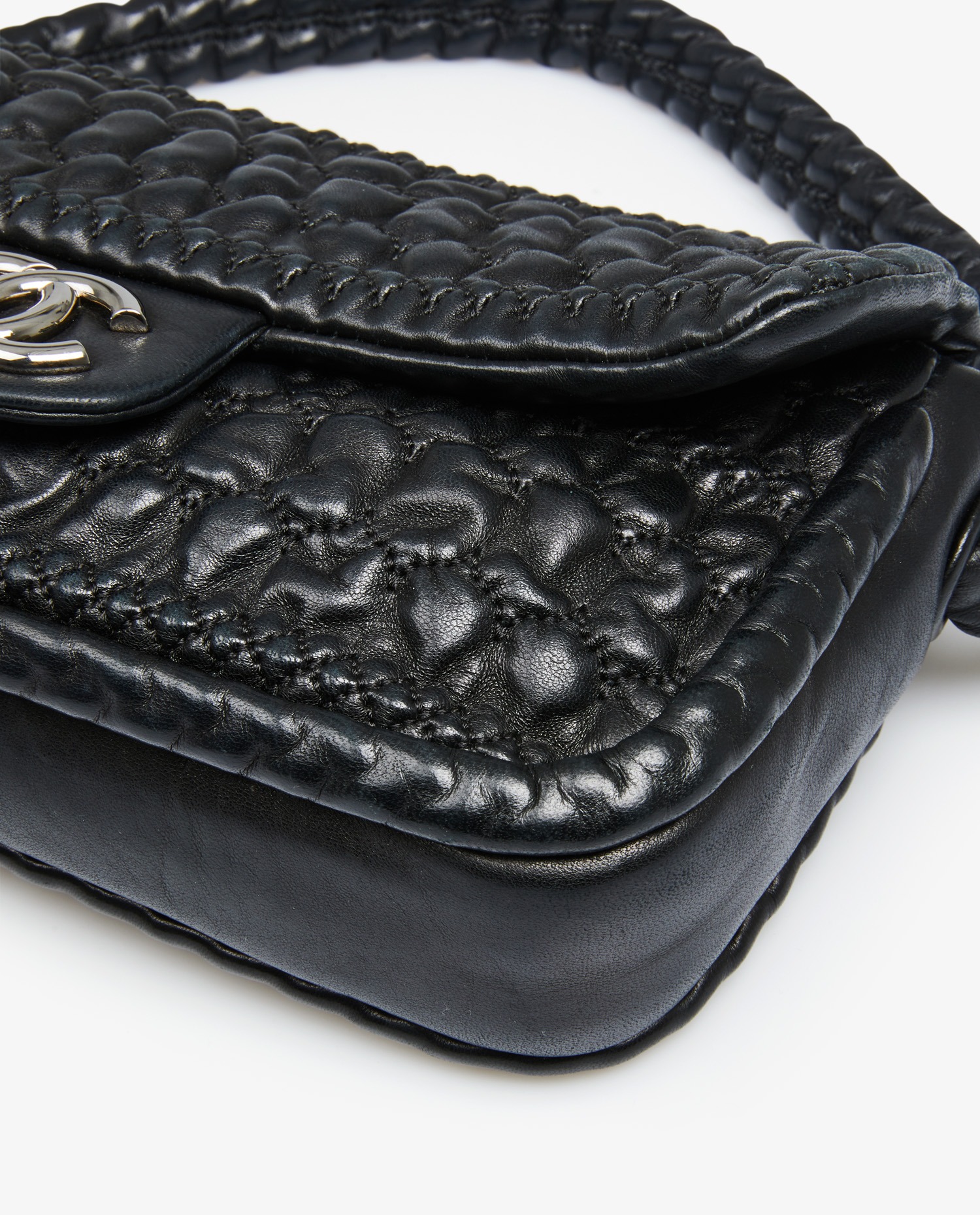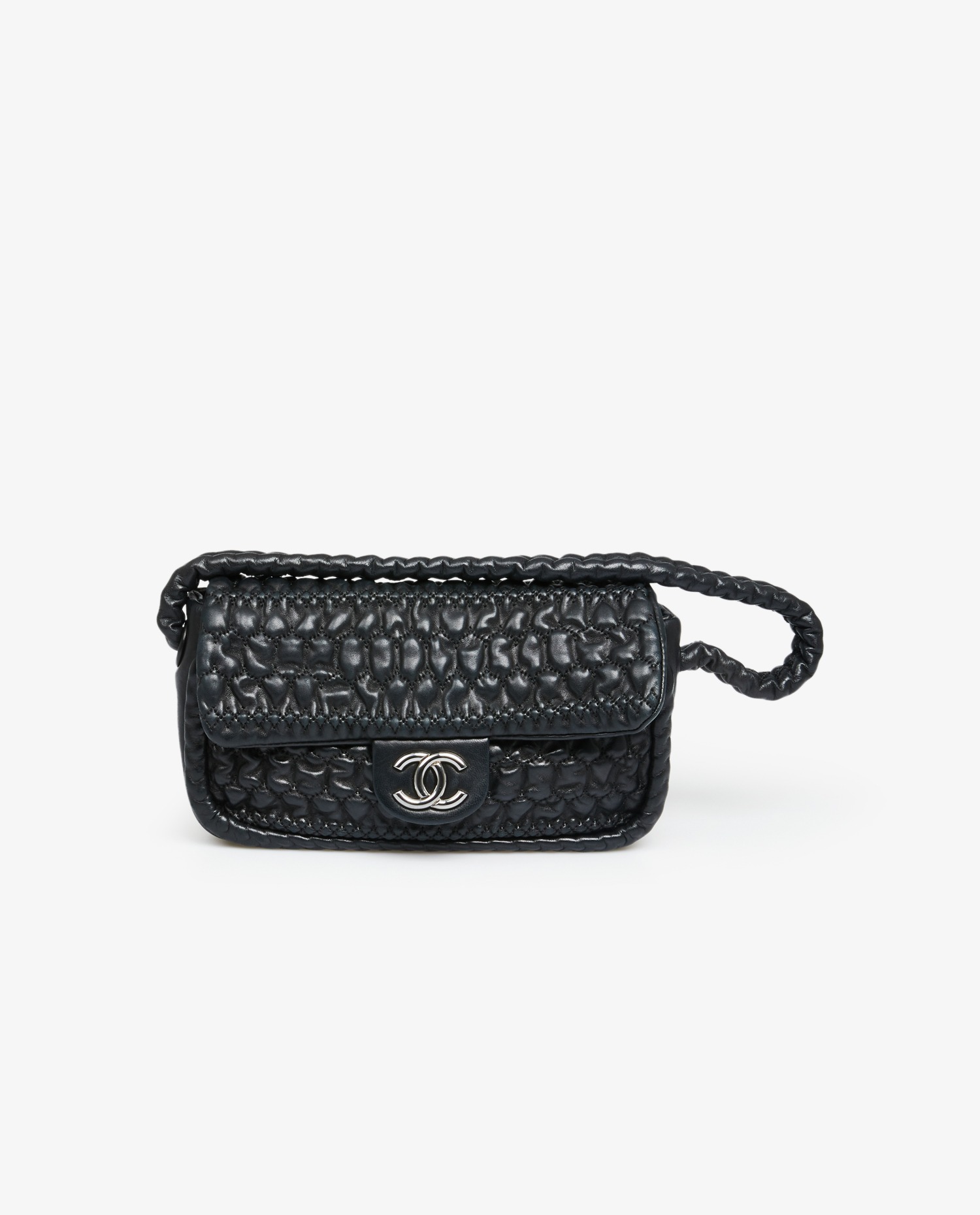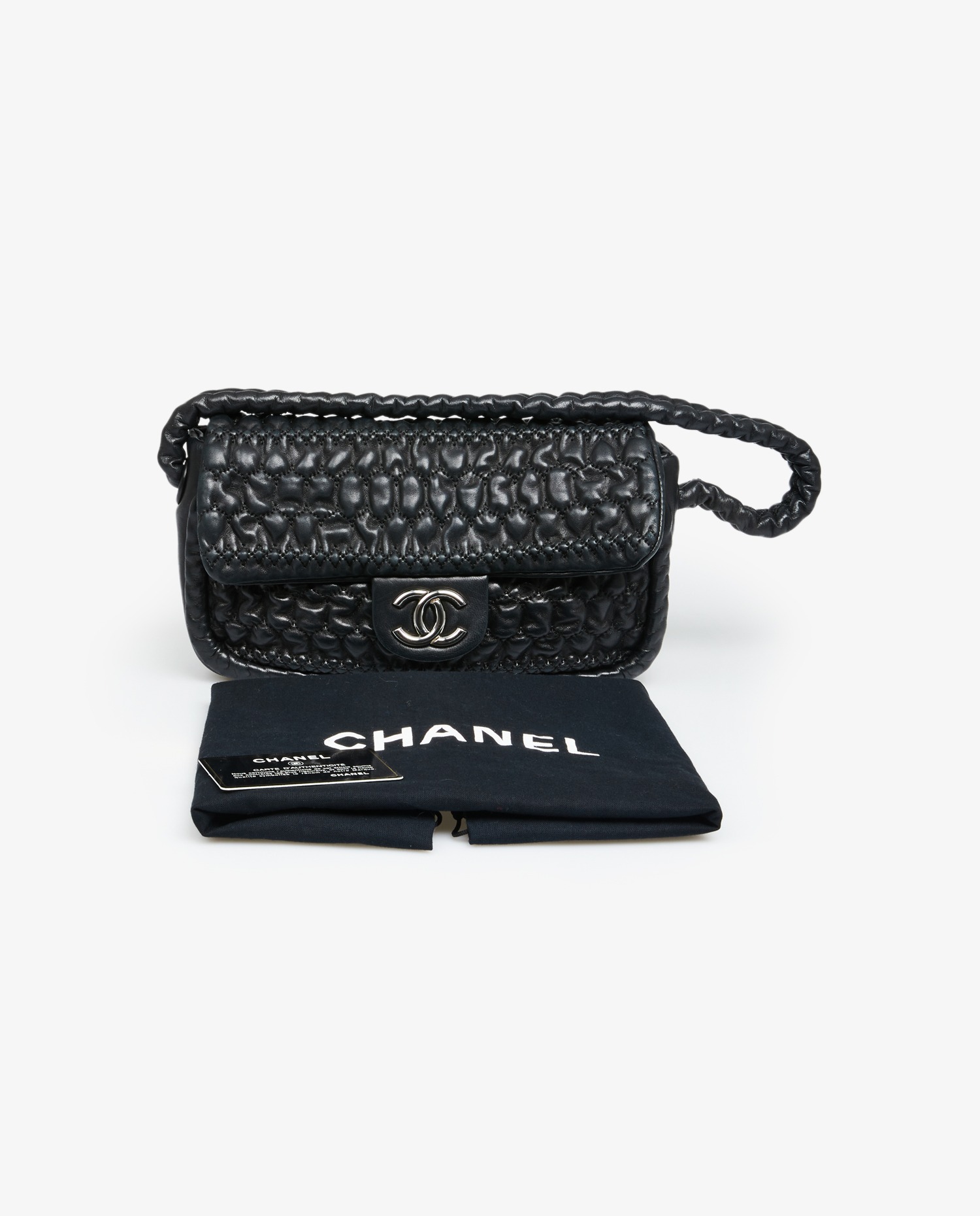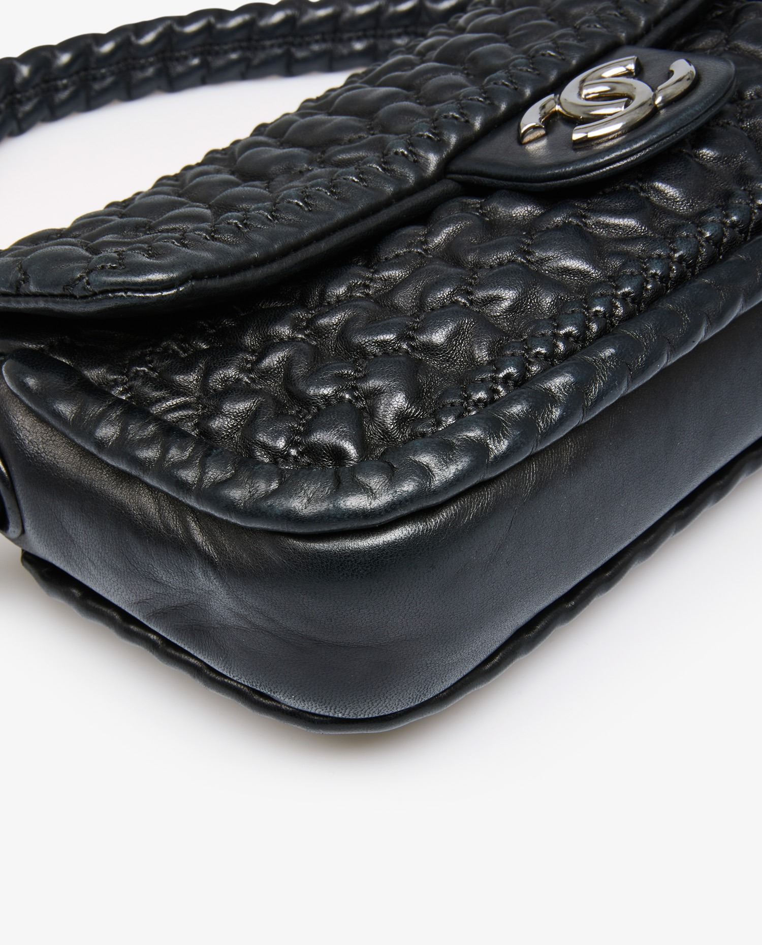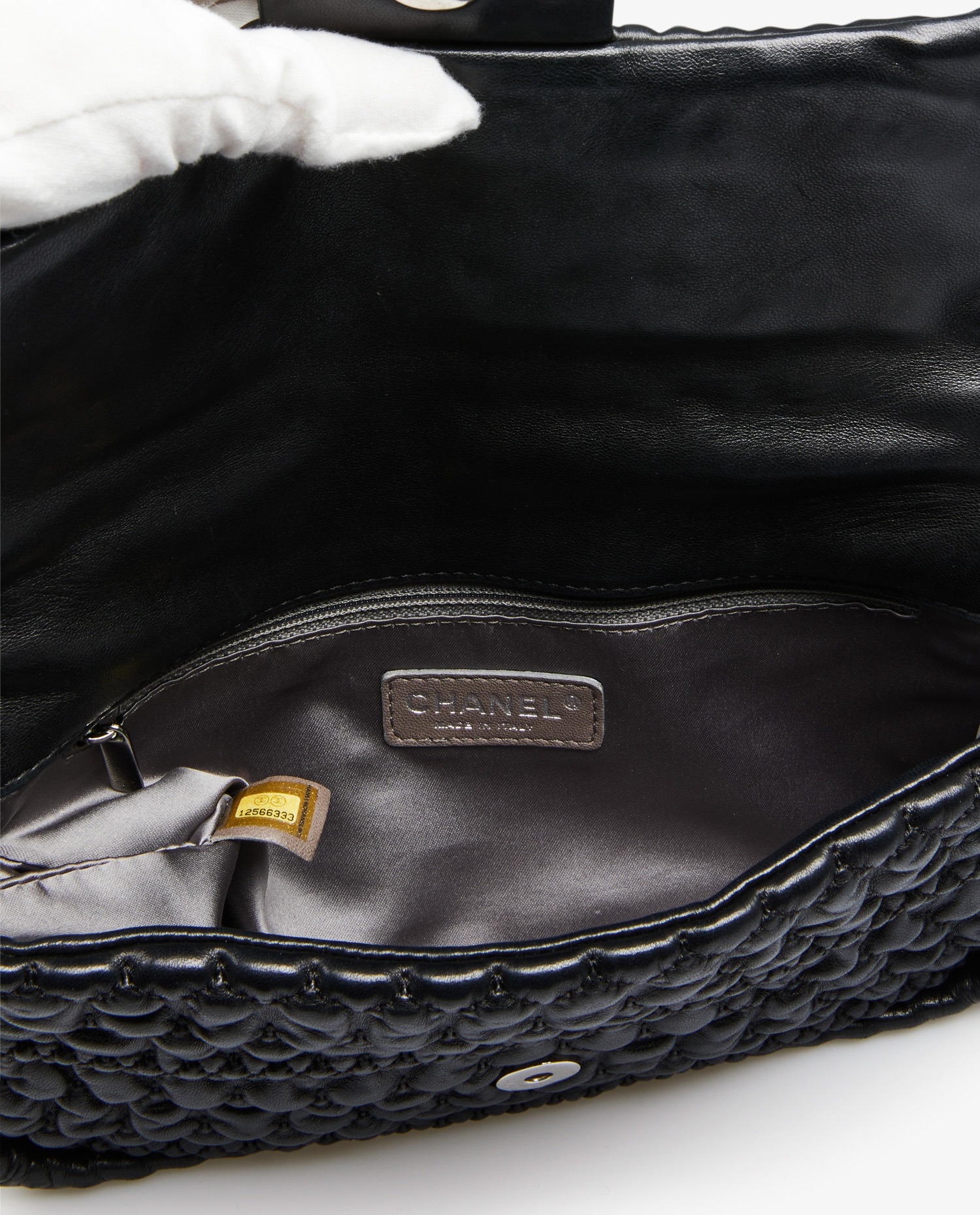 Chanel bag in black twisted lambskin. Snap closure. Carried on the shoulder with a 56cm handle. The interior is in grey satin. In very good condition.