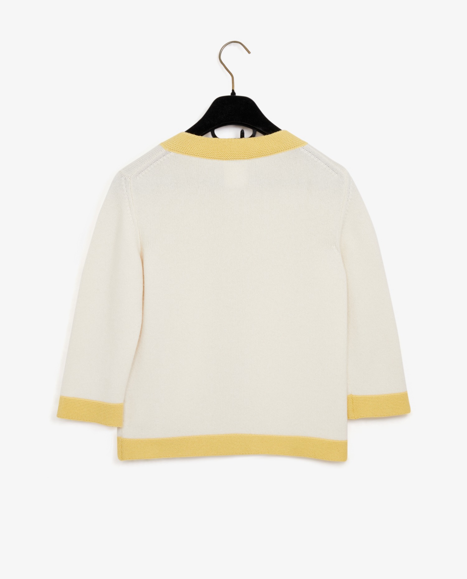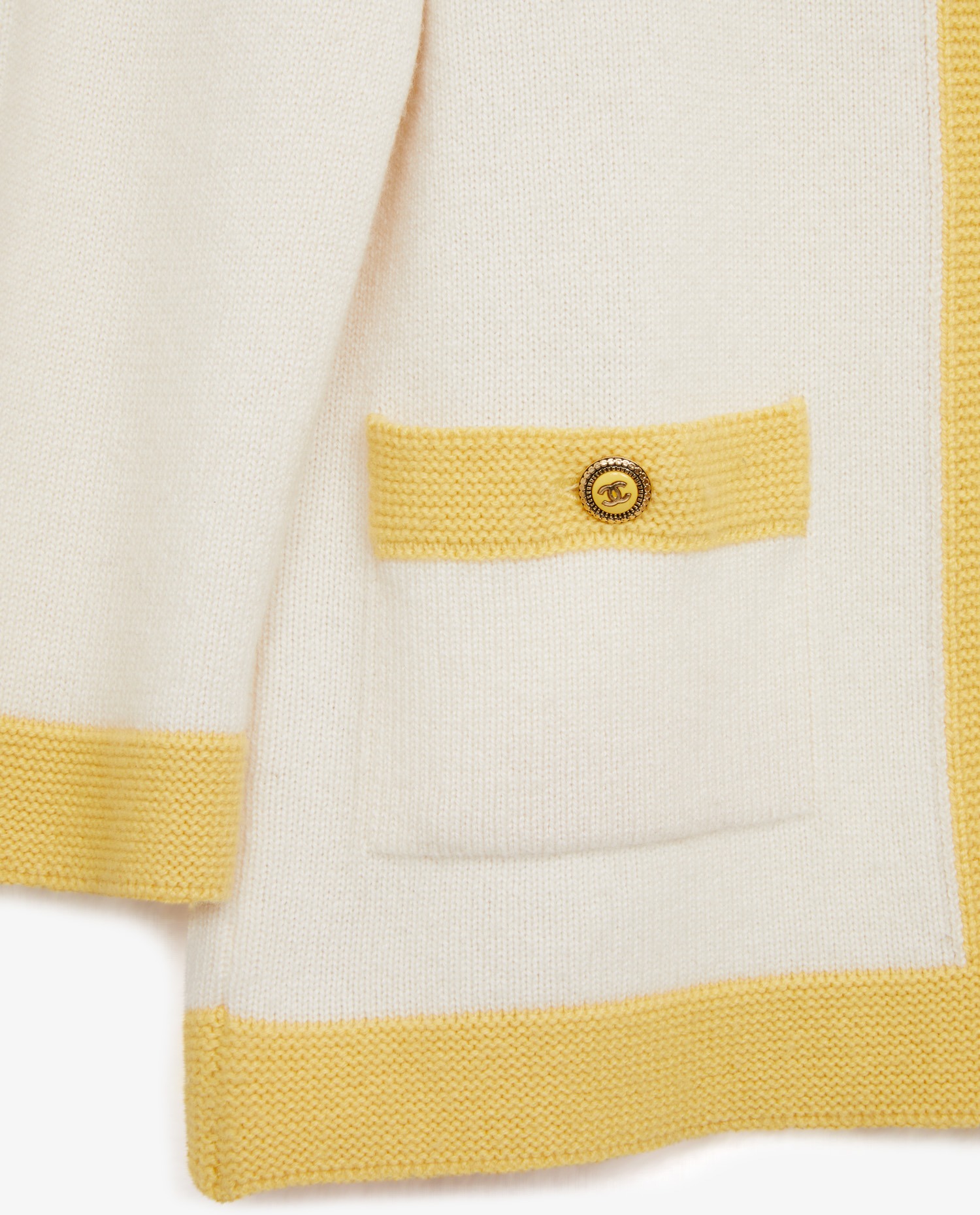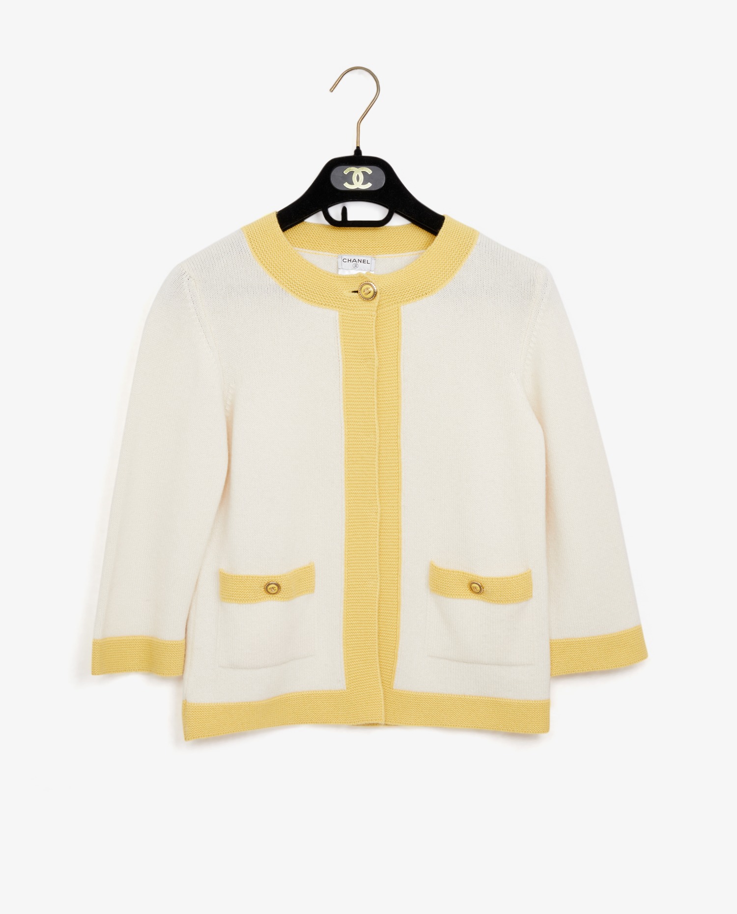 Chanel cardigan in white and yellow cashmere. Size 34. Spring-summer 2007 collection. In very good condition.
