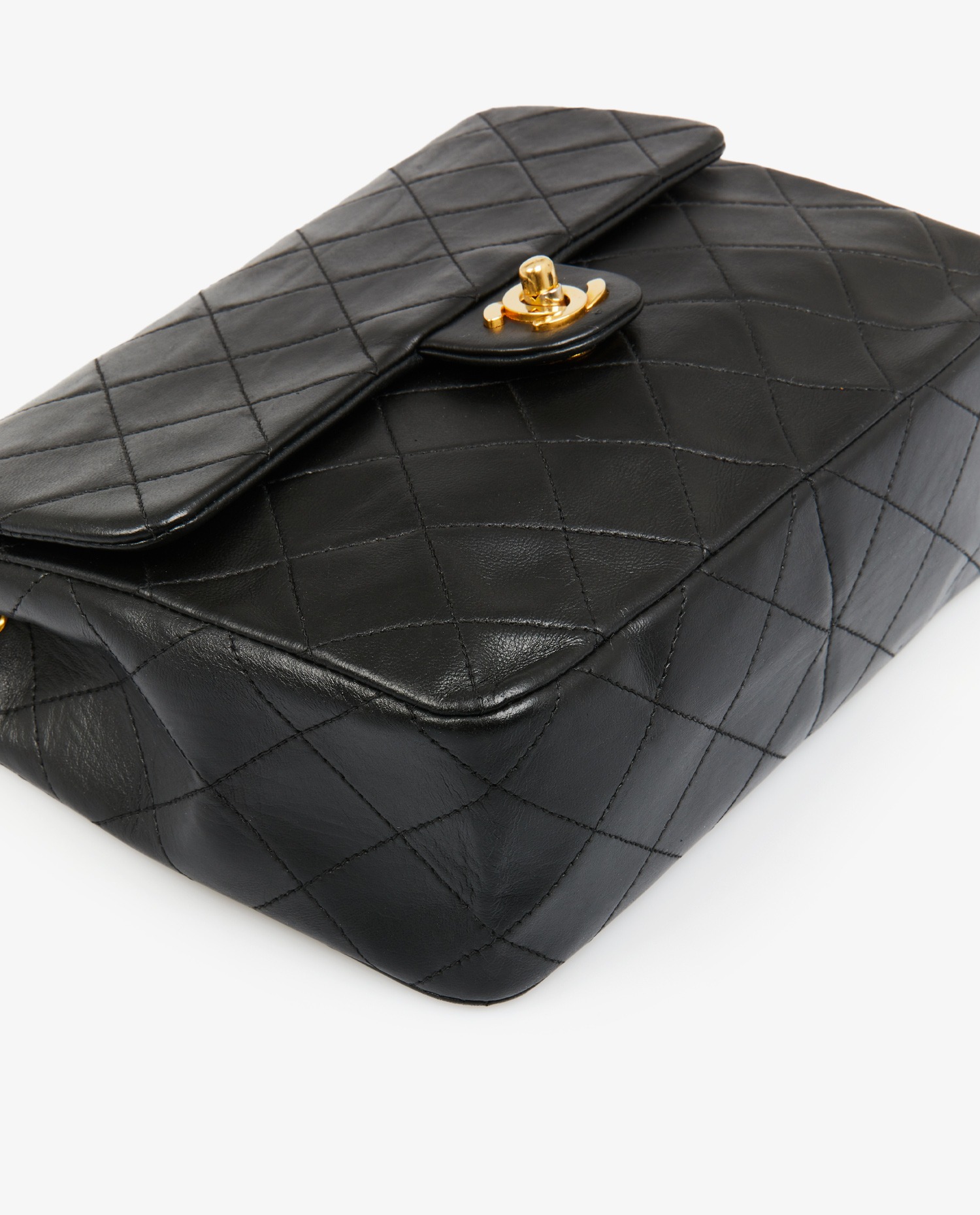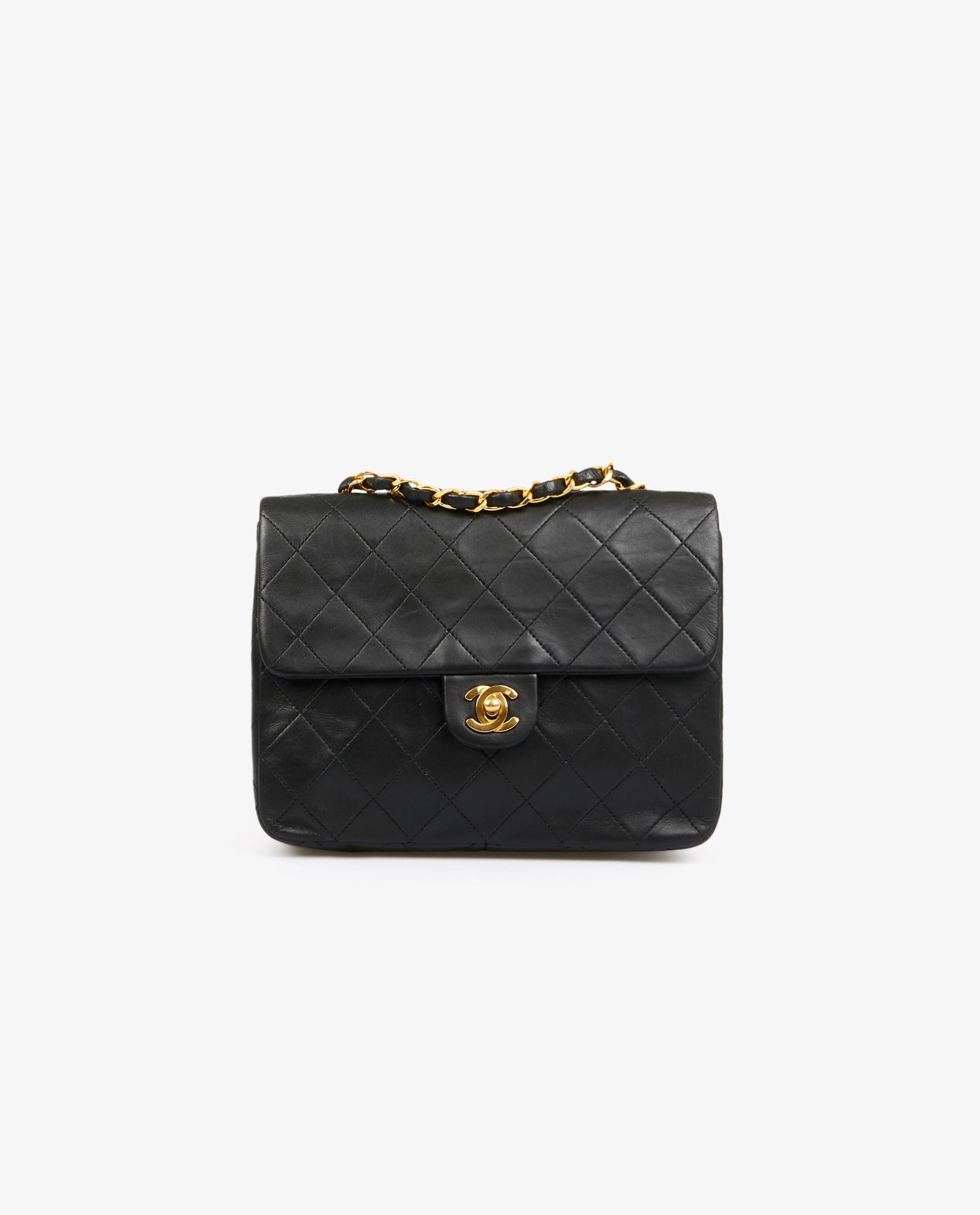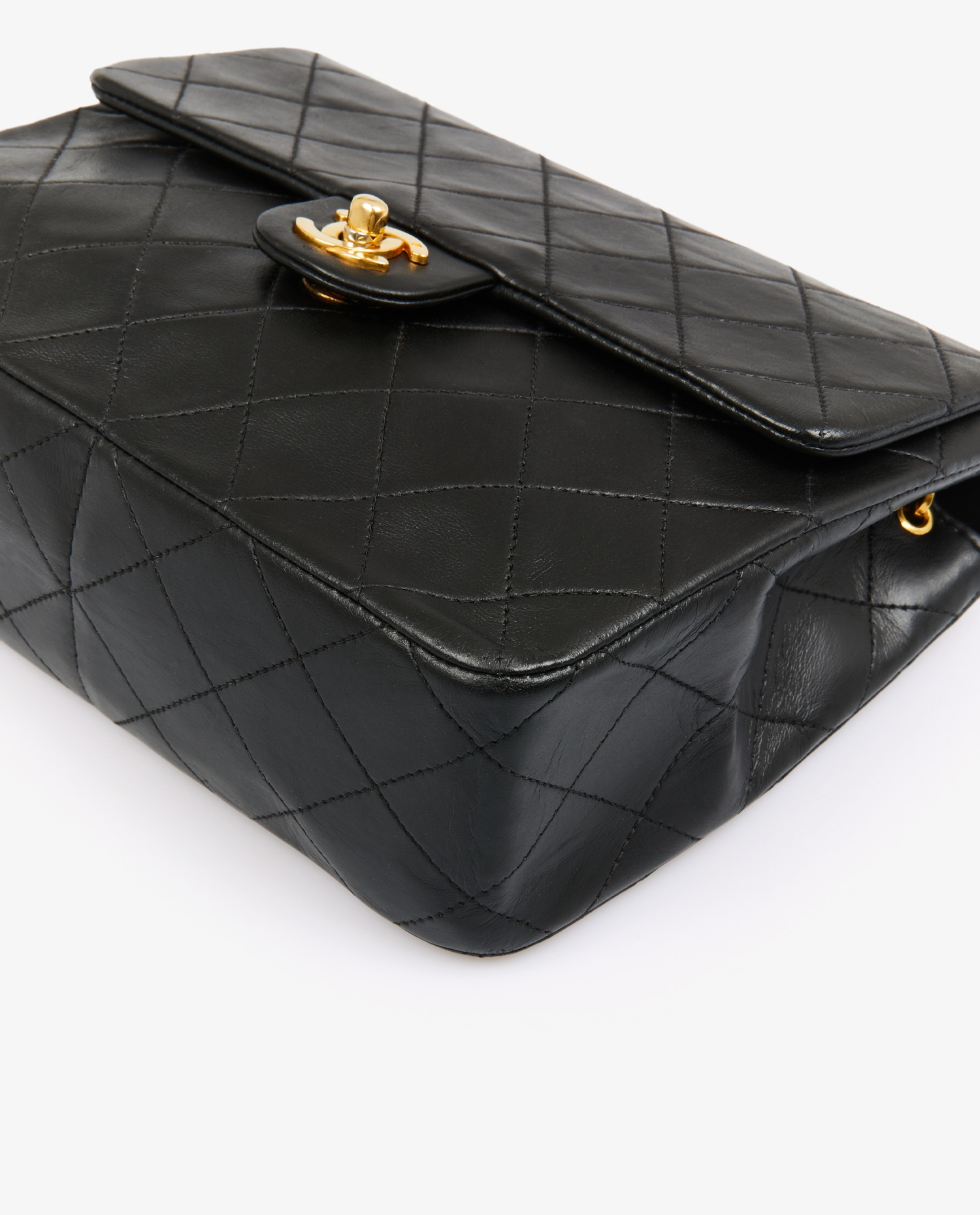 Chanel 20cm Classic bag in black quilted lambskin. Golden jewelry. CC clasp. Carried over the shoulder or across the body (112cm). In very good condition.