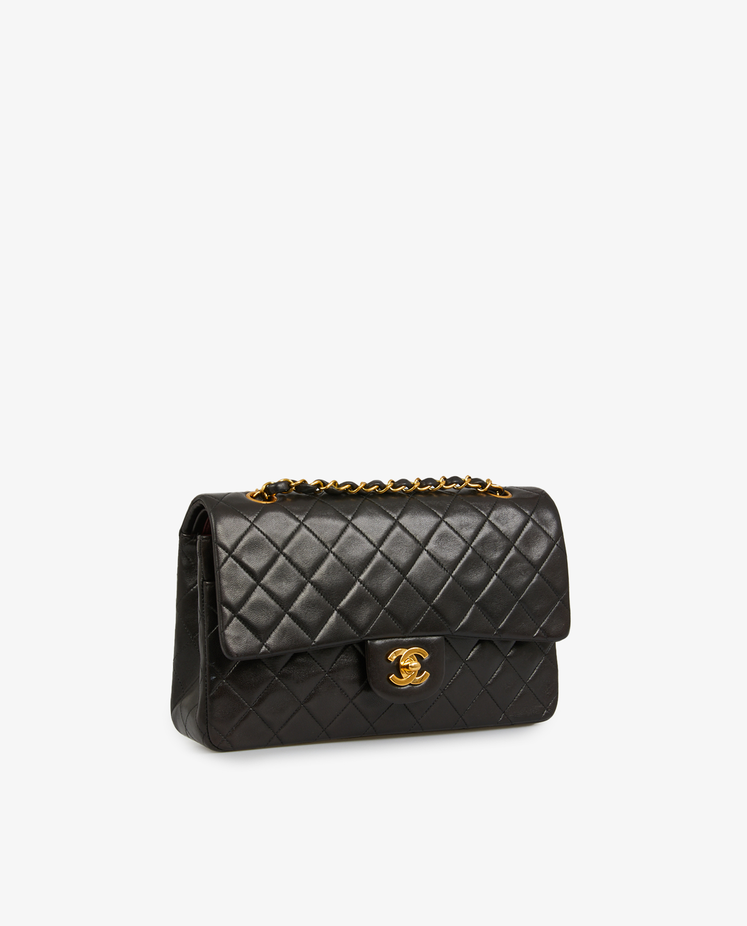 Chanel Classique medium bag in black lambskin. In very good condition.