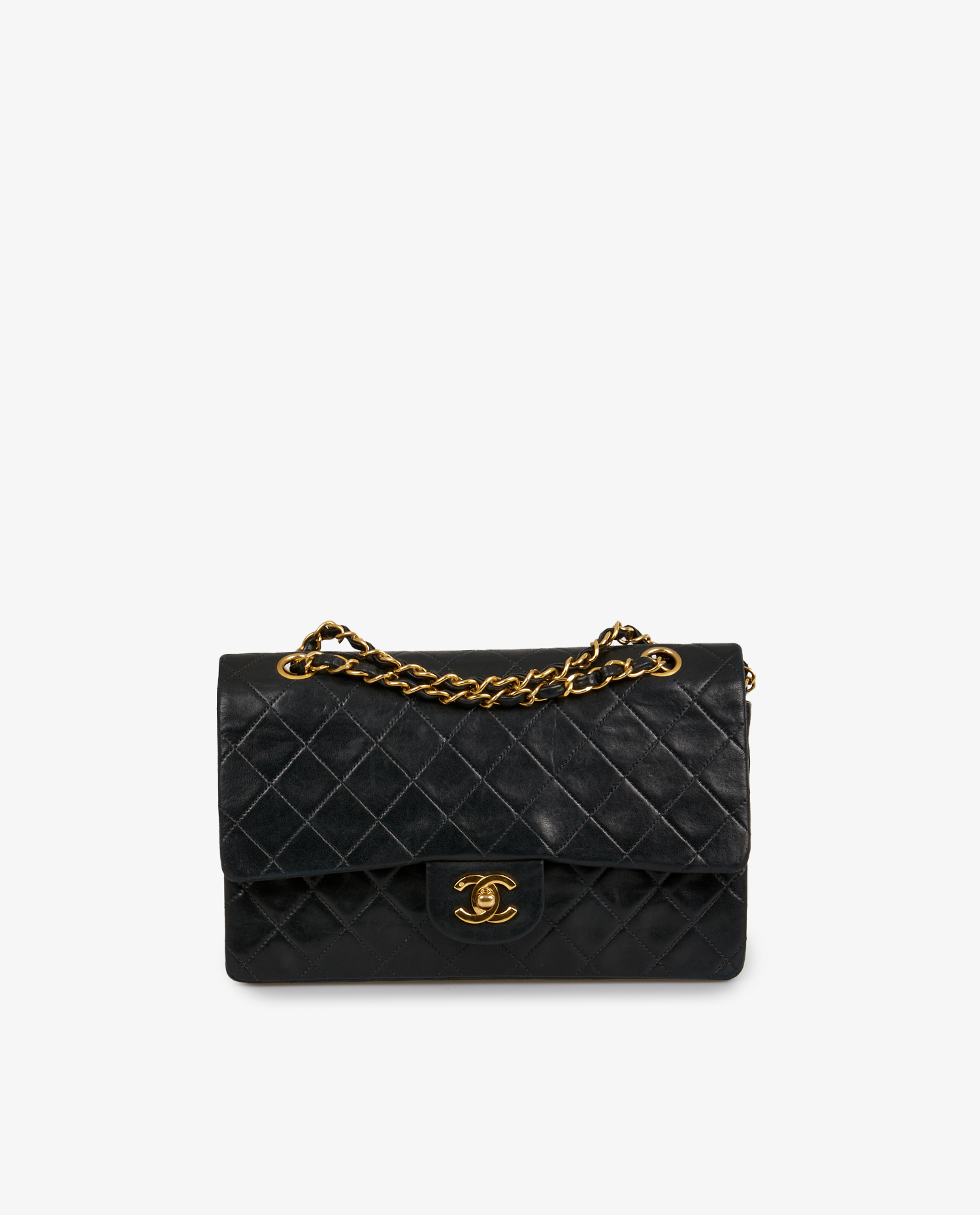 Vintage Chanel Timeless bag in black quilted lambskin. Golden jewelry. In very good condition.