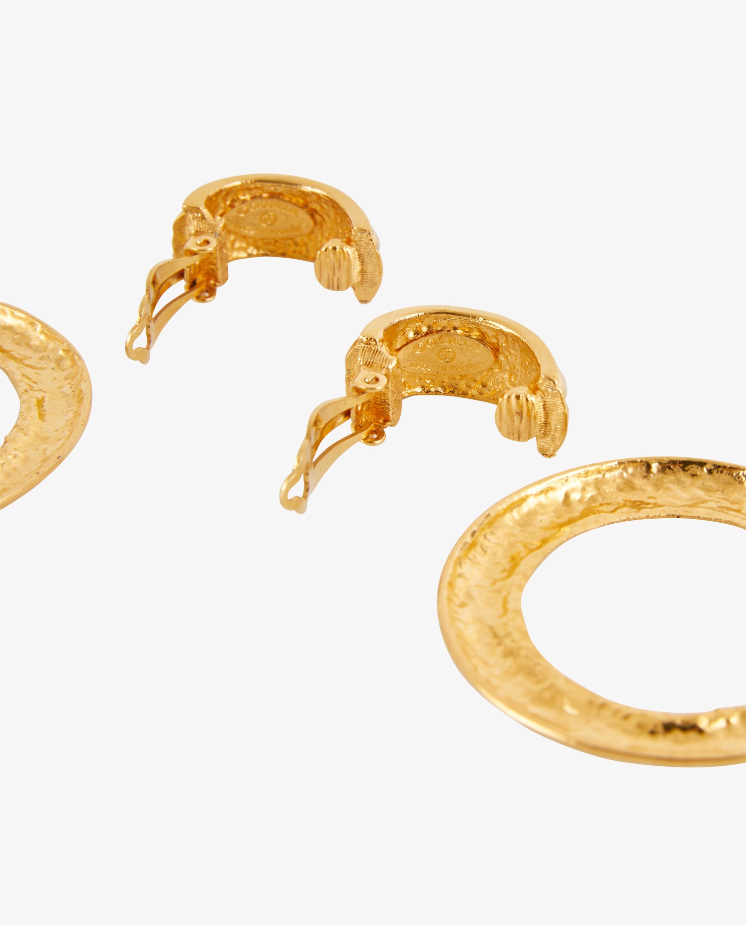Chanel gold-plated and quilted metal hoop earrings. Stamp on back of clip earrings. Made in France. In very good condition.