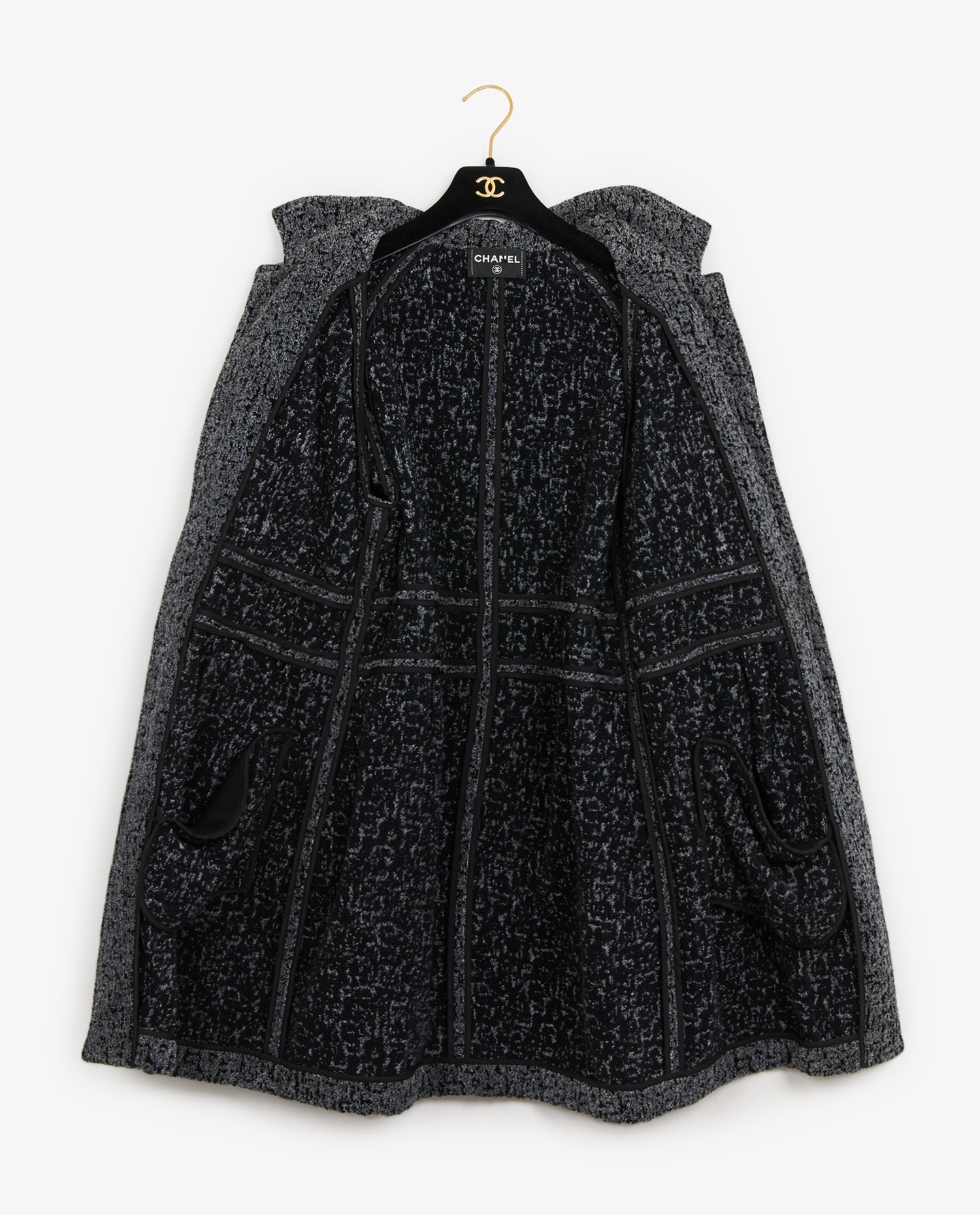Chanel coat dress in gray terry cloth. Belted to adjust waist. Size 38. In very good condition.