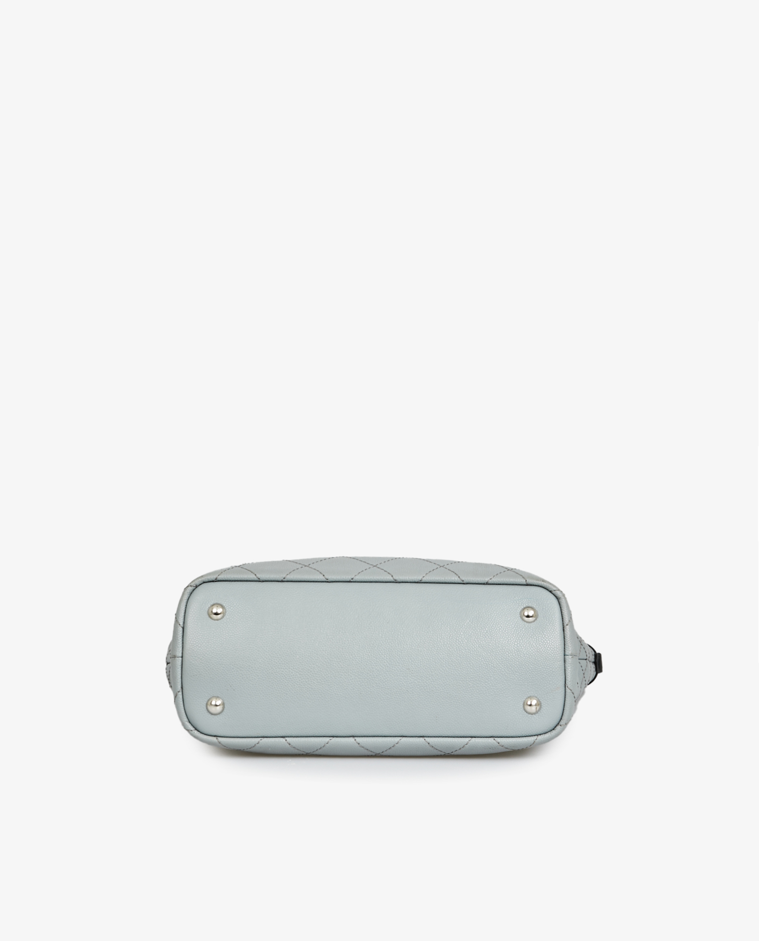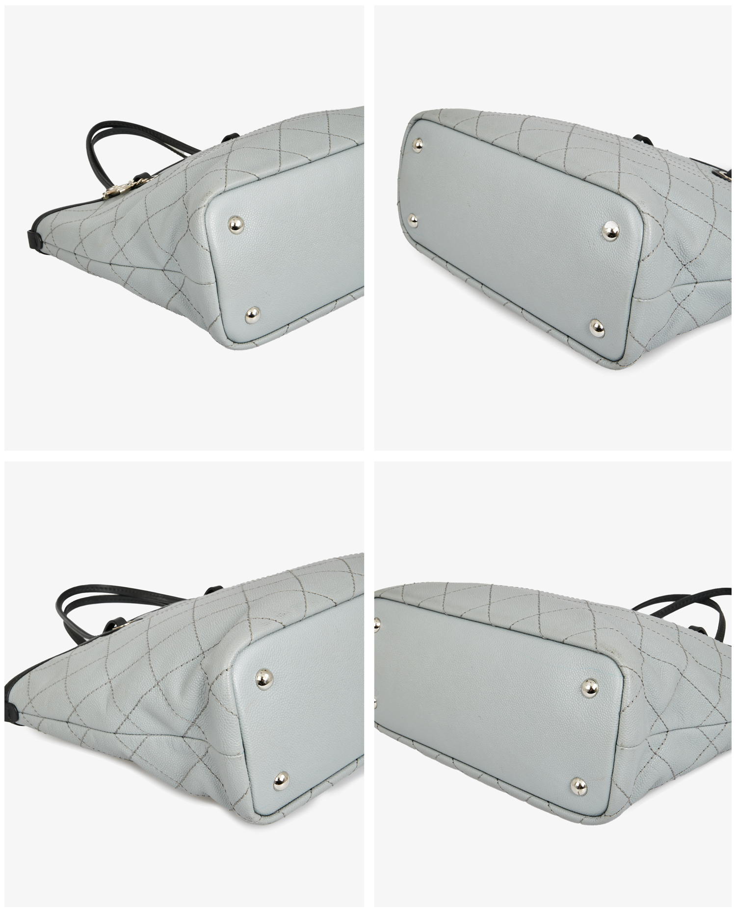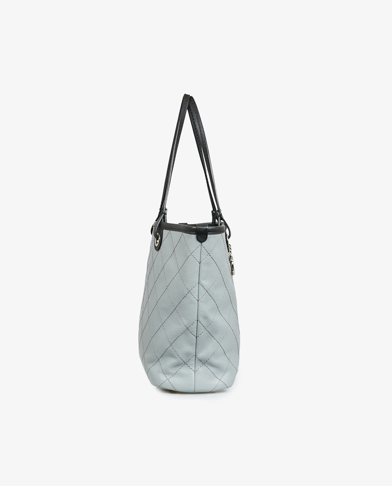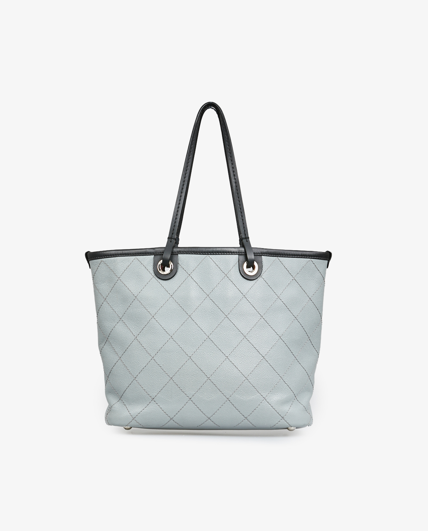 Chanel tote bag in two-tone pearl gray and black grained leather. The interior is in burgundy fabric with a large zipped pocket. Carried on the shoulder. In very good condition.