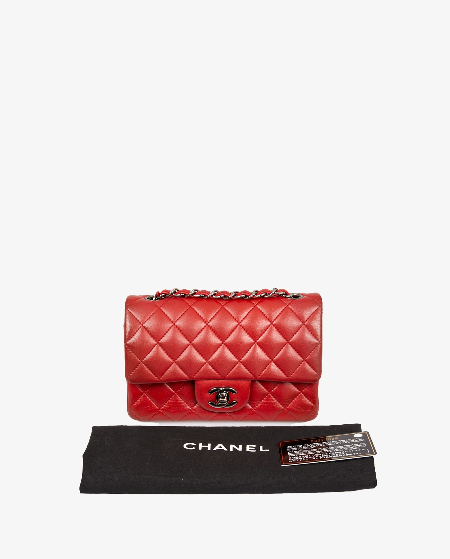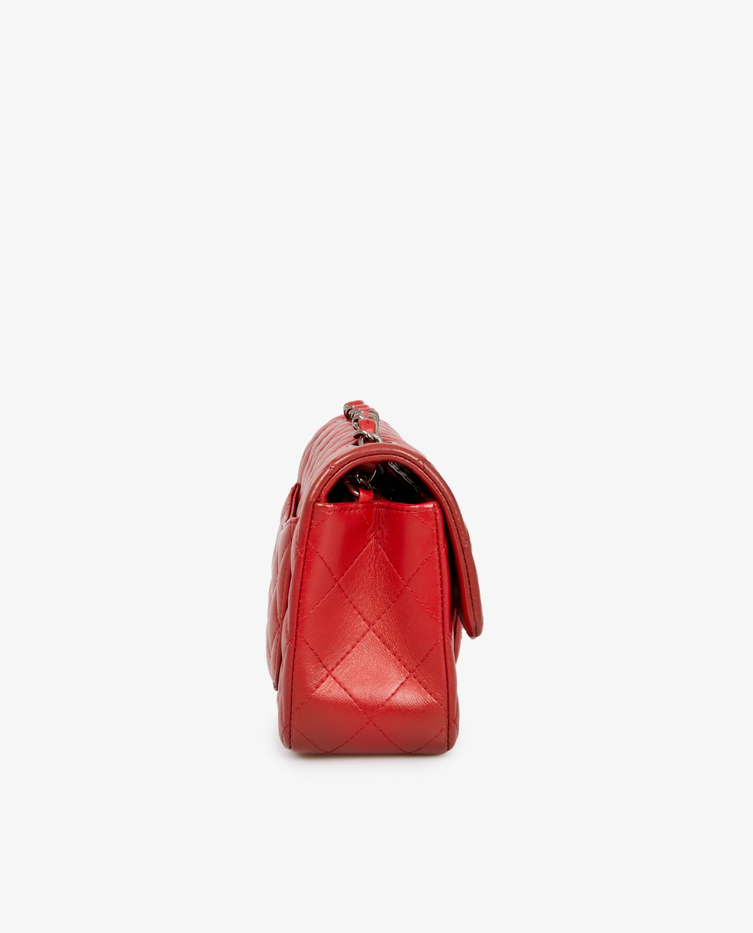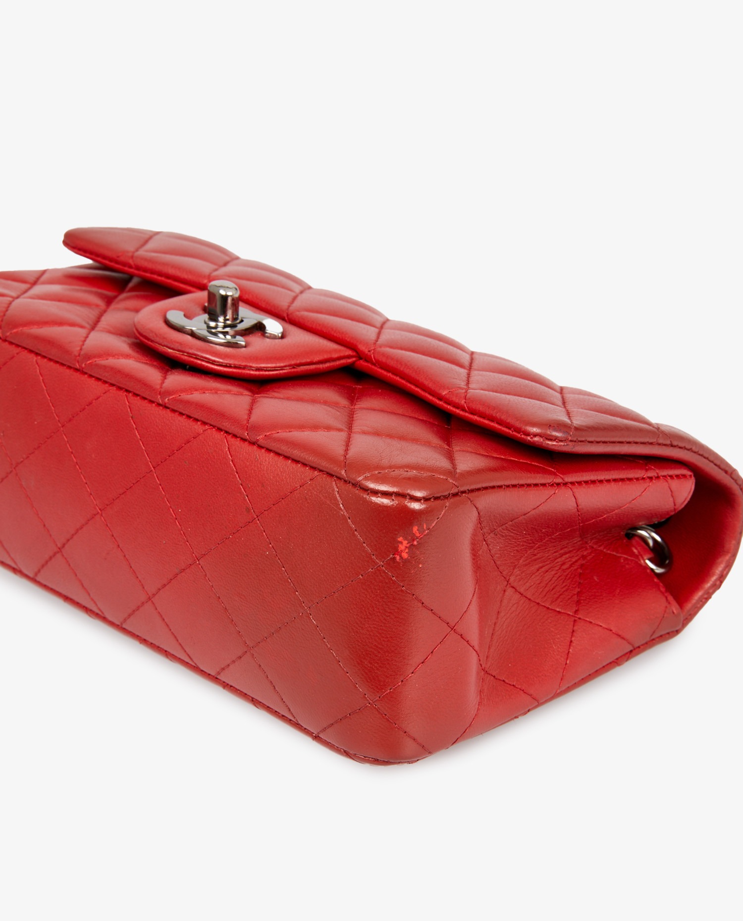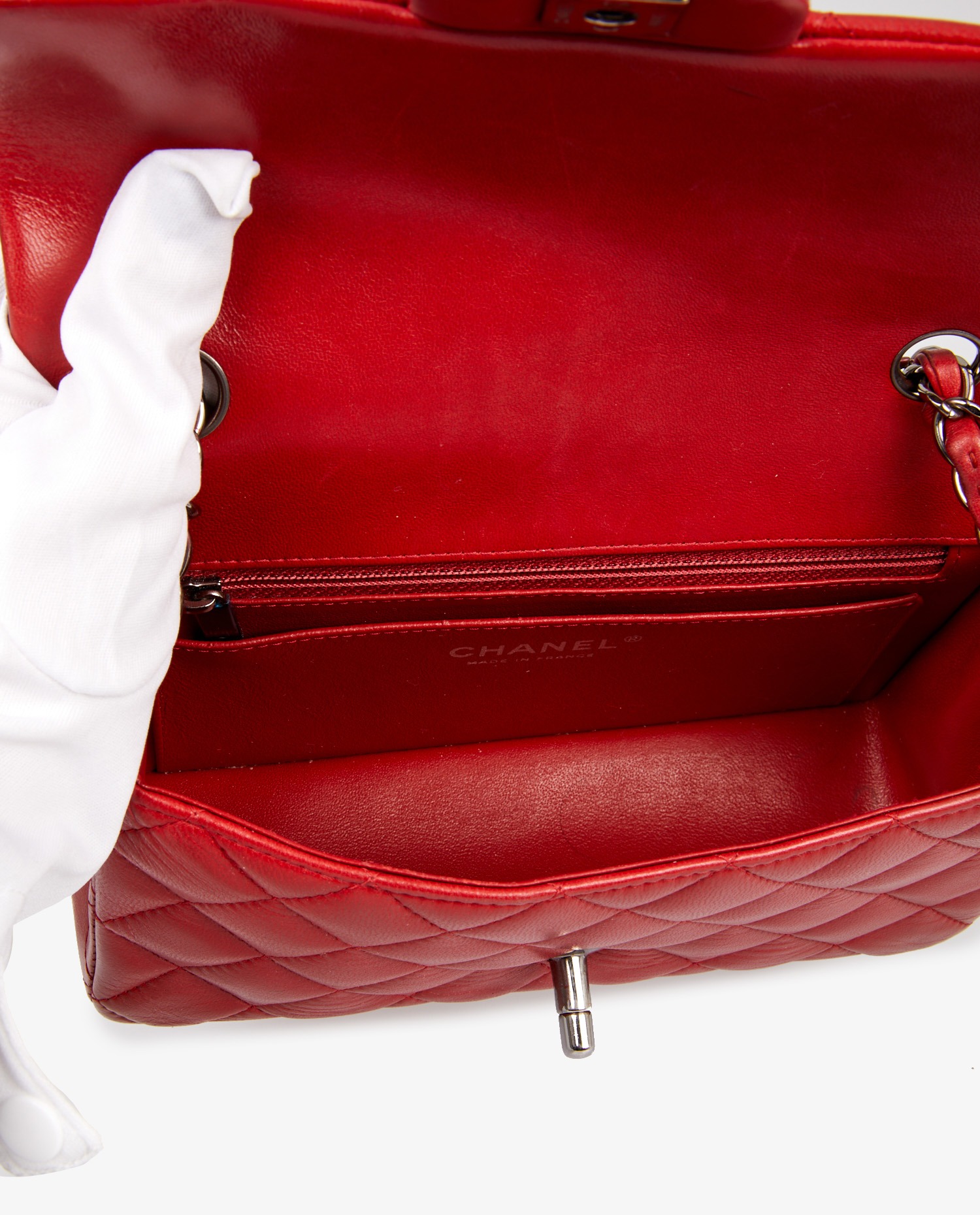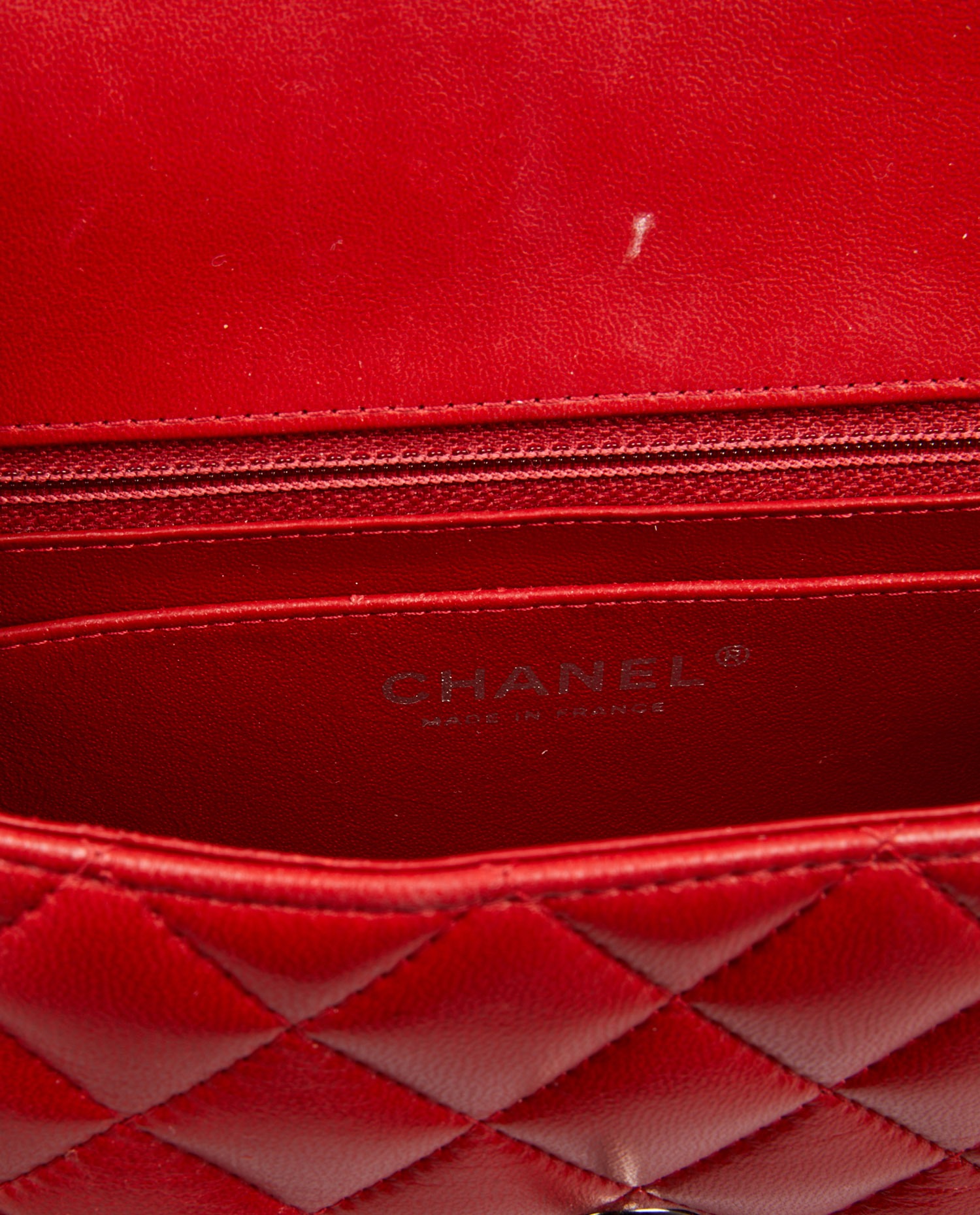 Chanel flap bag in red quilted leather. Carried on the shoulder or across the body (121cm). Ruthenium jewelry. In very good condition.