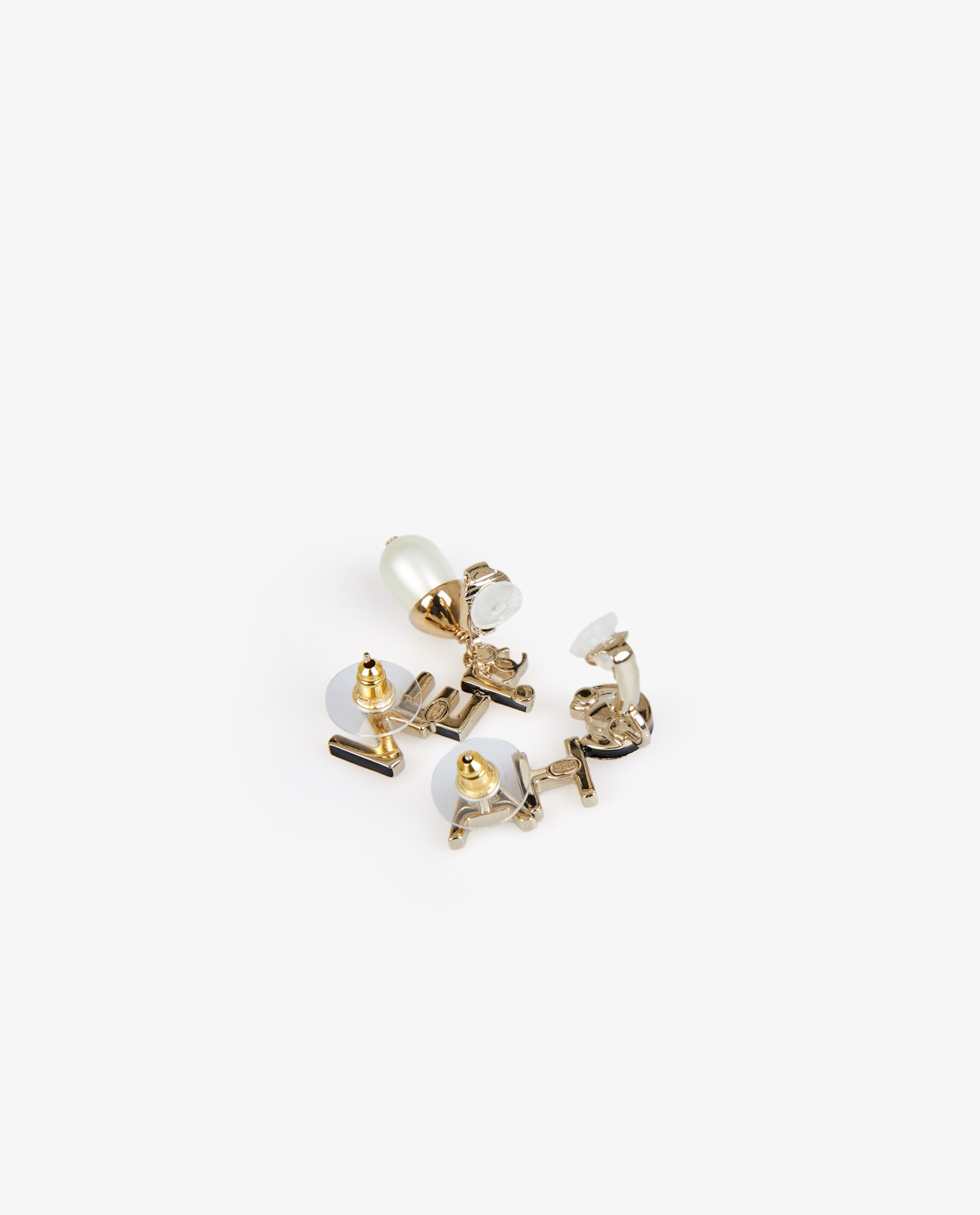 Chanel clips in gold-plated metal with a dangling pearl. Never worn.