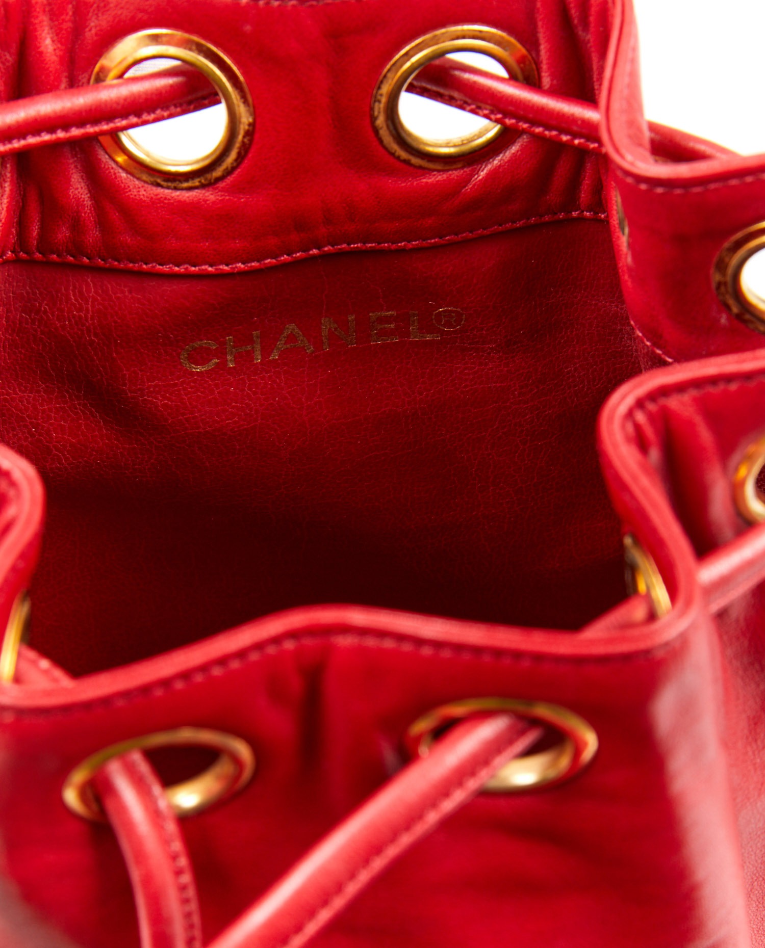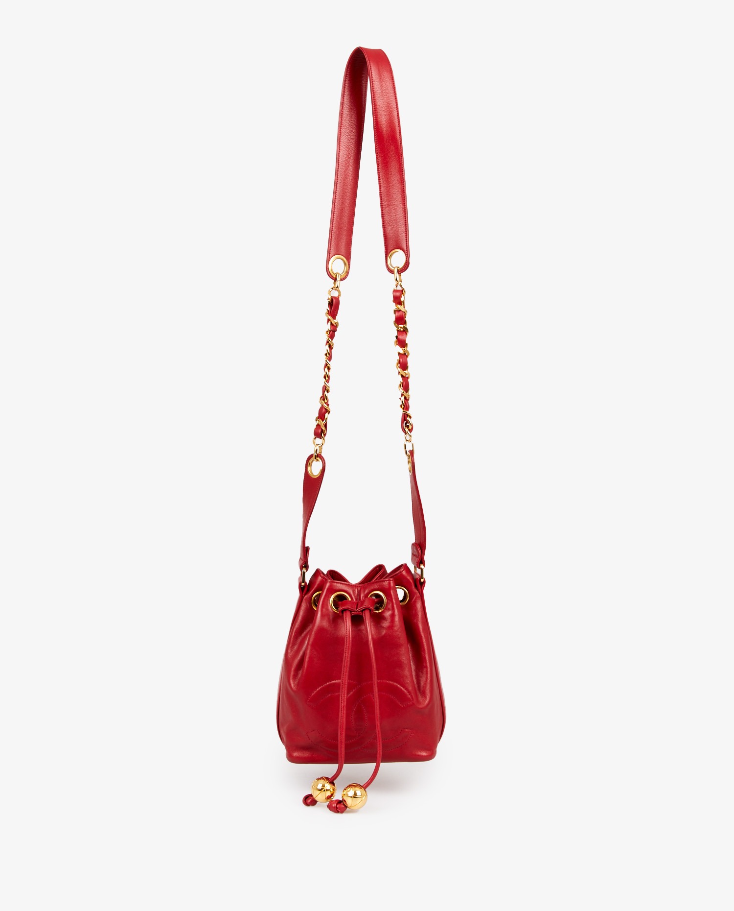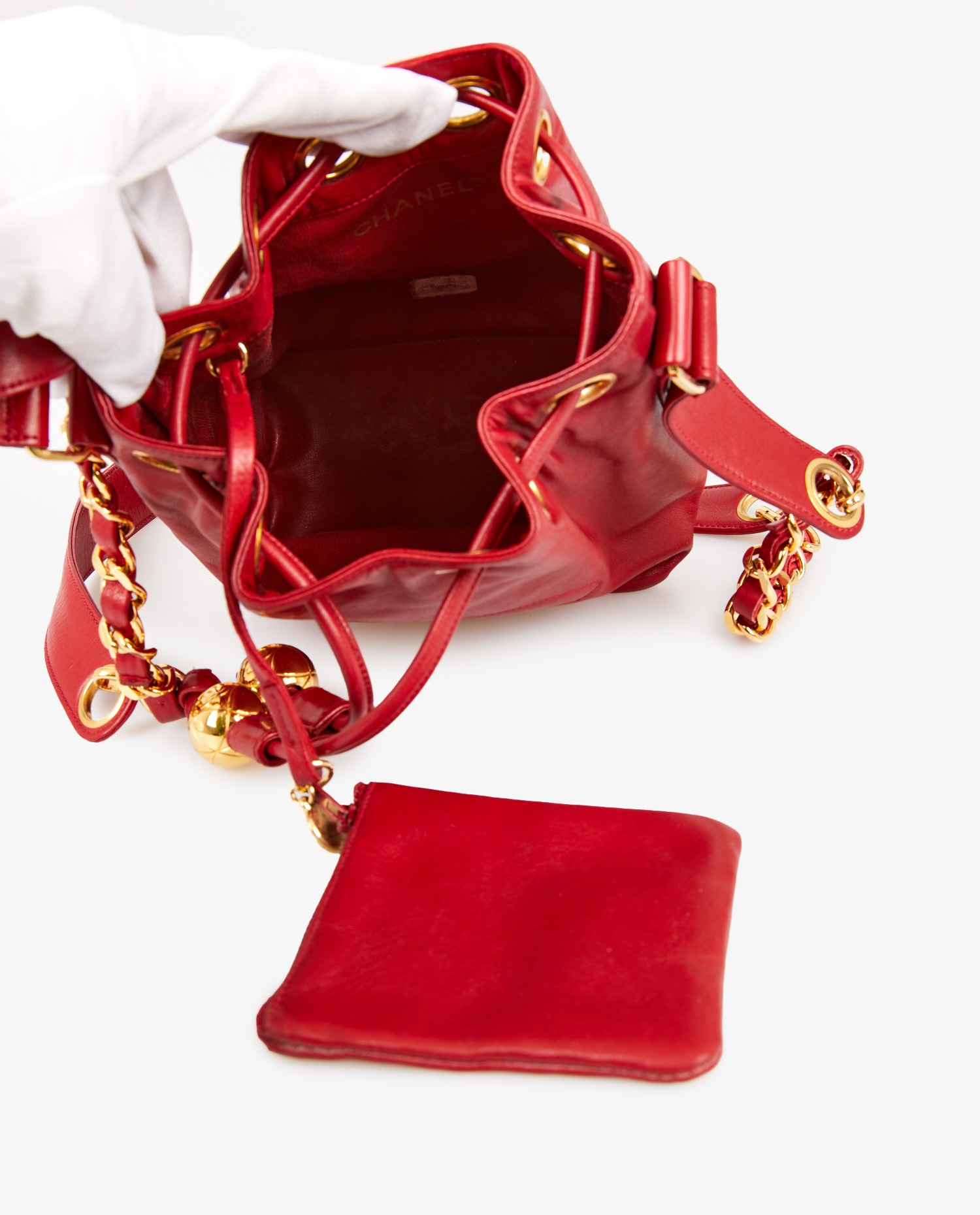 Chanel mini purse bag in vintage red lambskin. Worn on the shoulder or across the body (100cm). In very good condition.