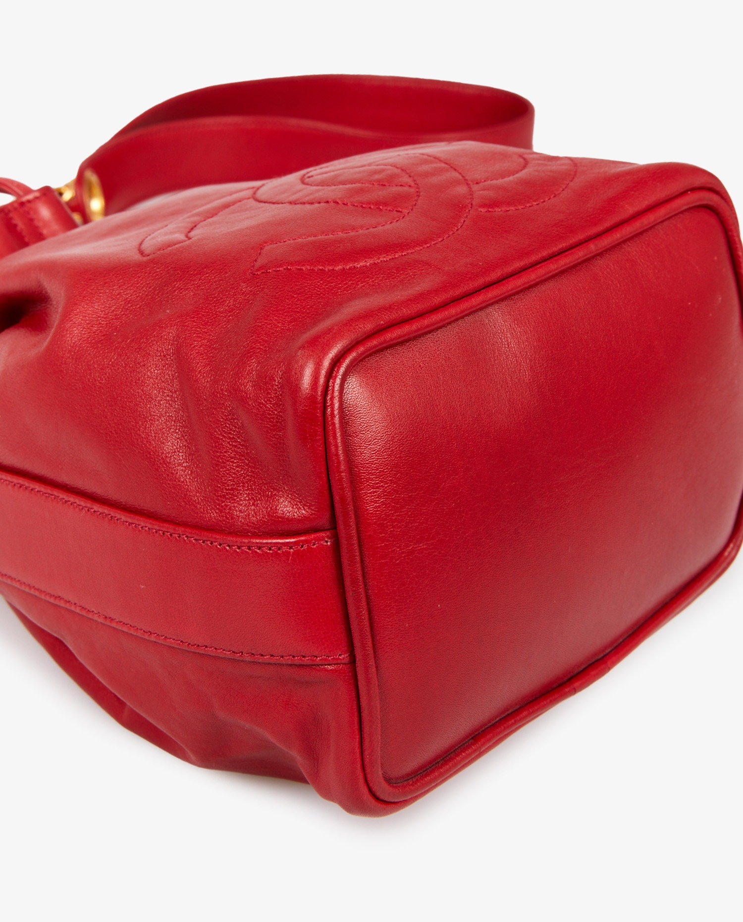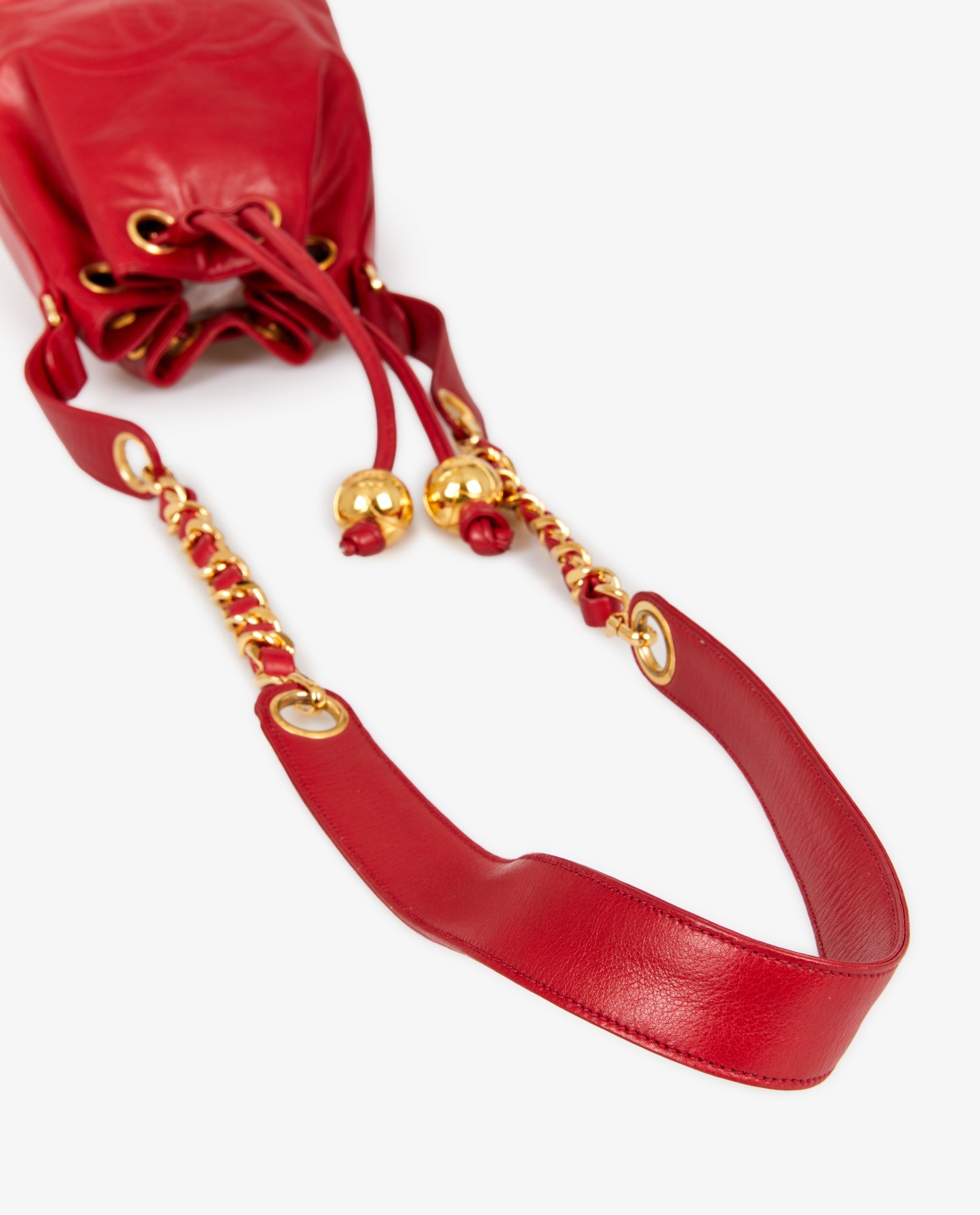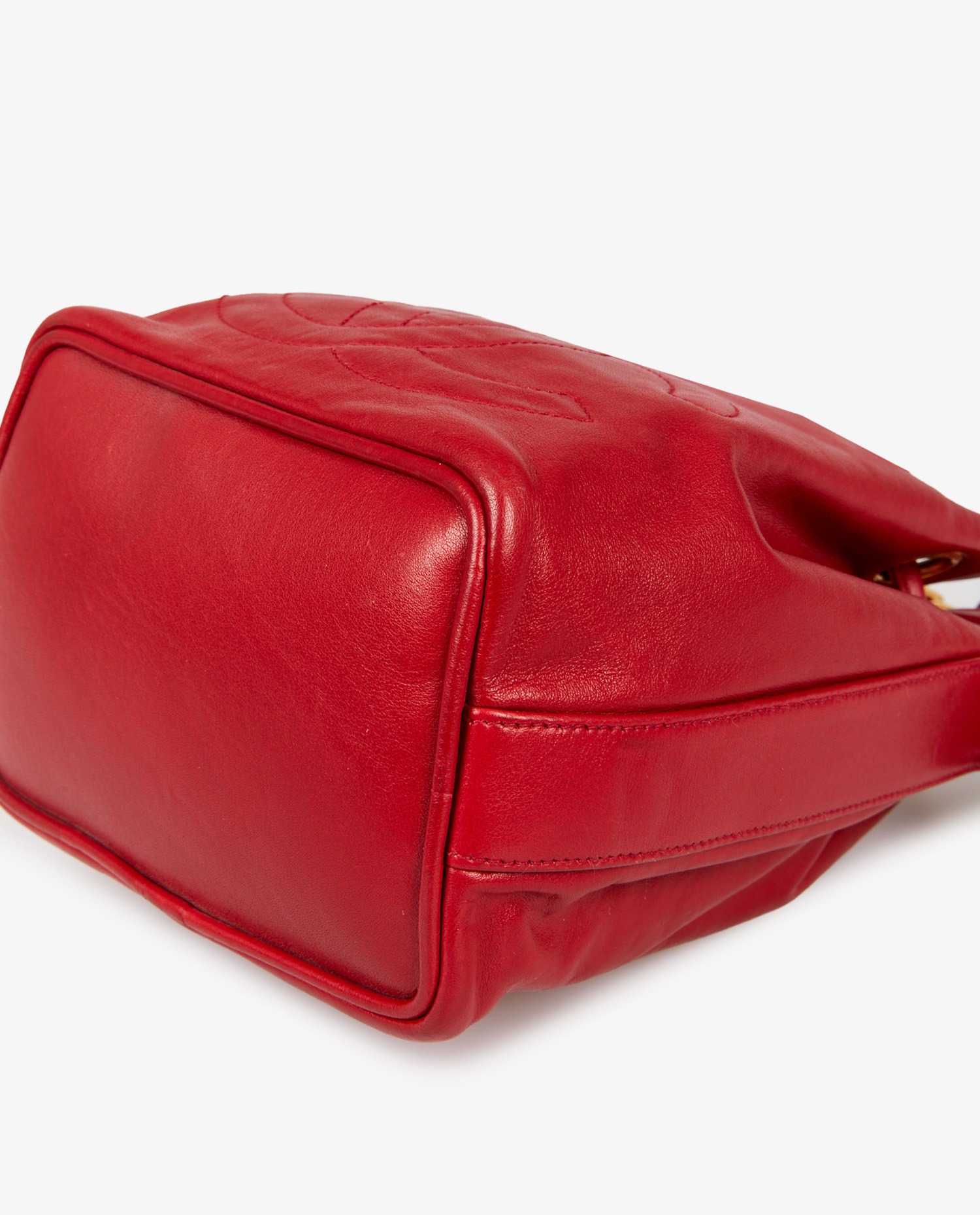 Chanel mini purse bag in vintage red lambskin. Worn on the shoulder or across the body (100cm). In very good condition.