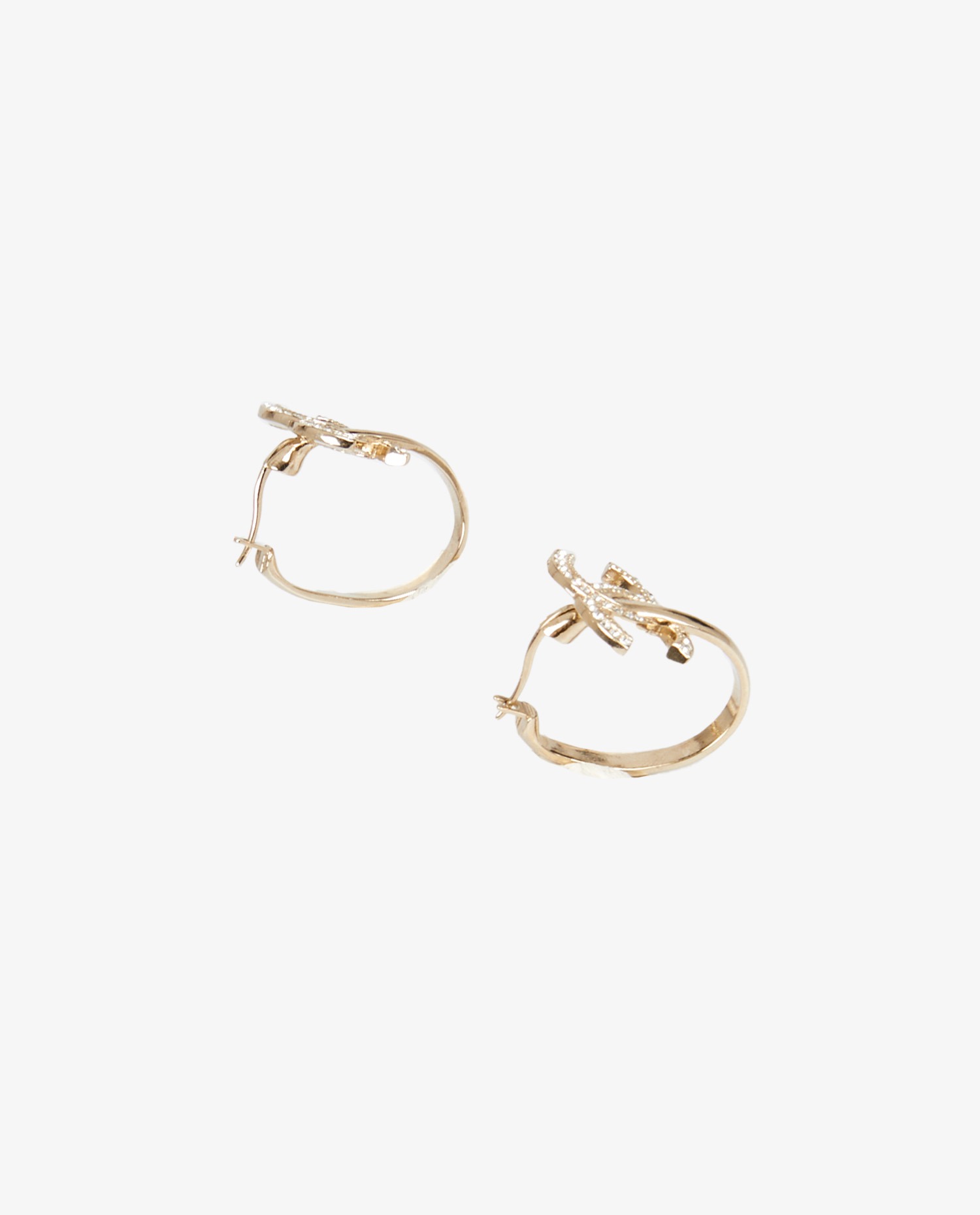 Chanel rhinestone and gold metal hoop earrings. Never worn.