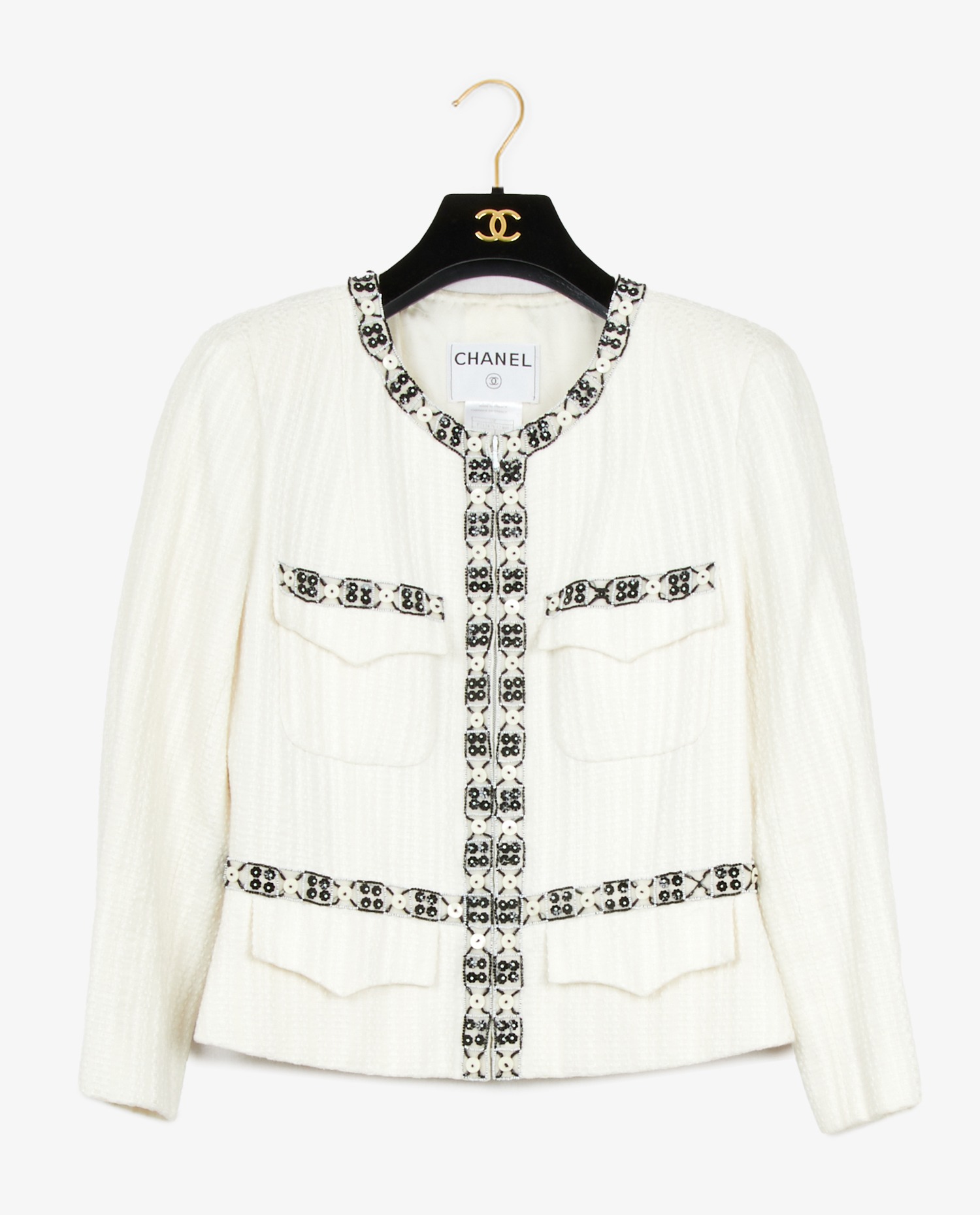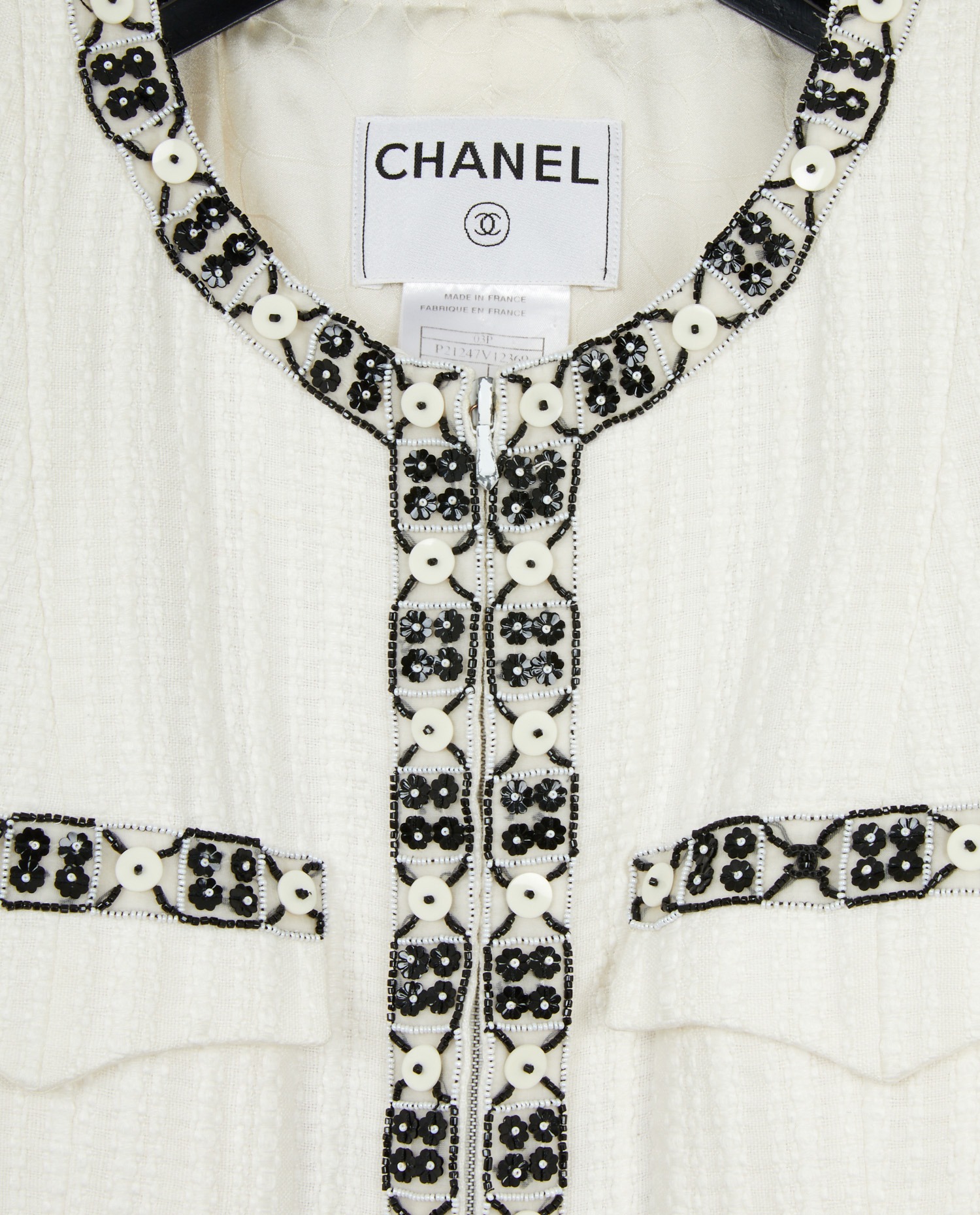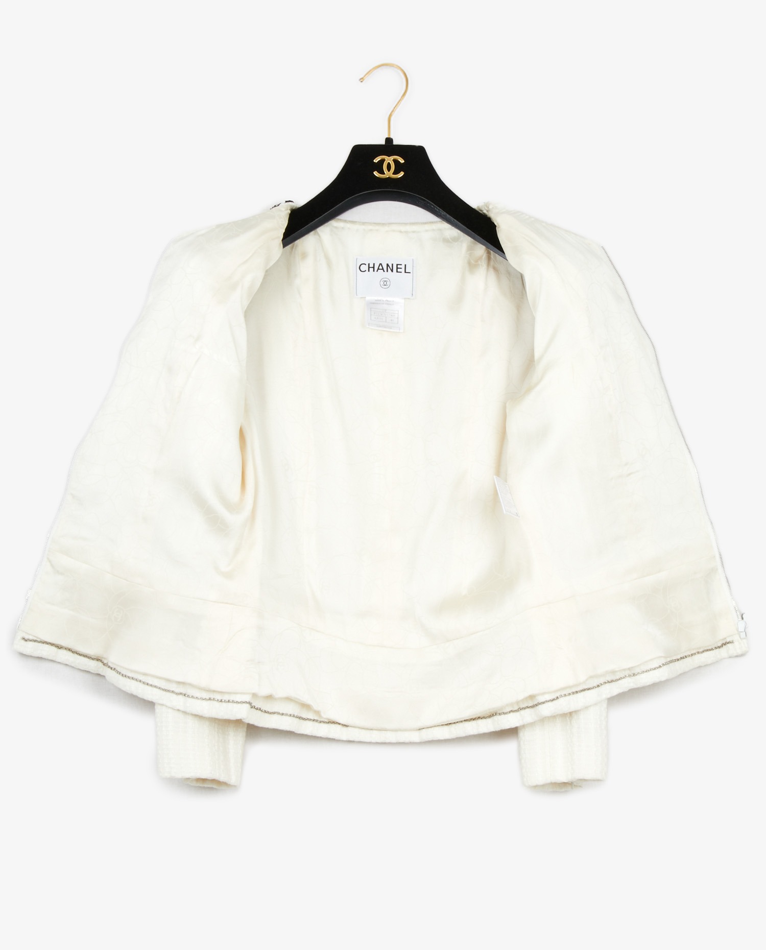 Chanel jacket in white cotton. Zipper closure. Silk lining. Size 40. In very good condition.