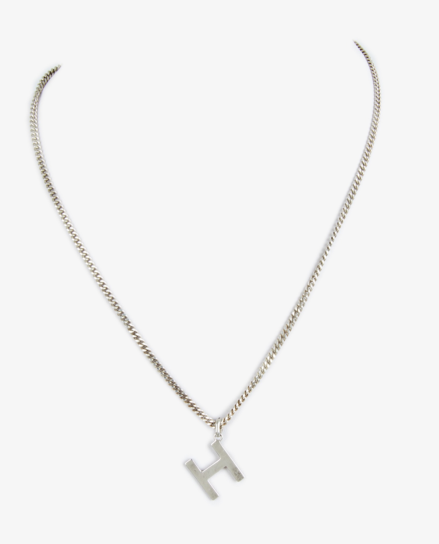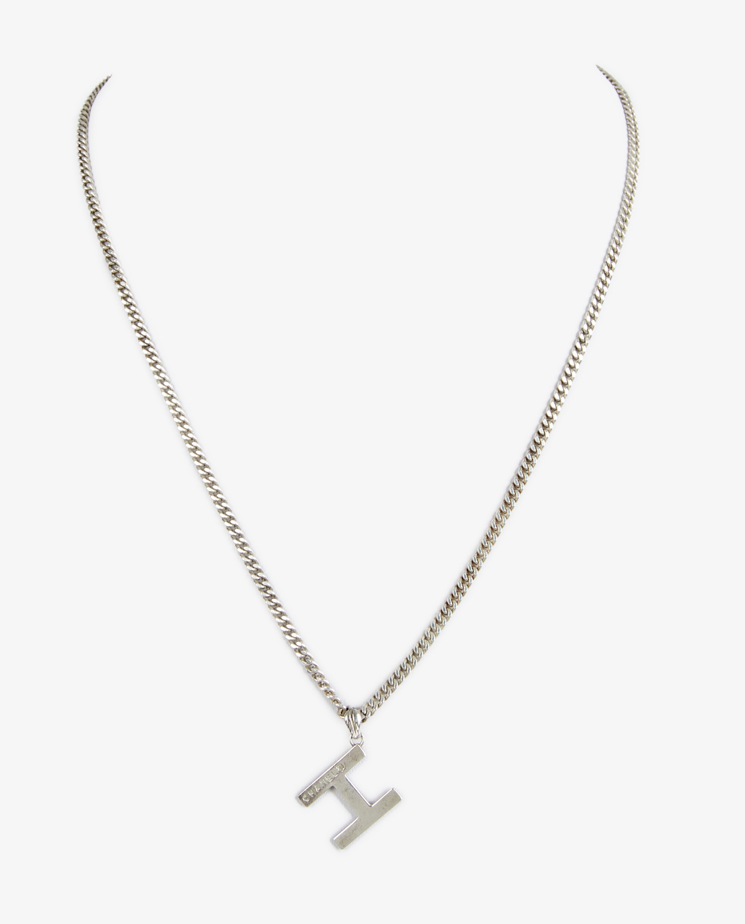 Chanel necklace in silver metal. Pendant with the letter H. In very good condition.