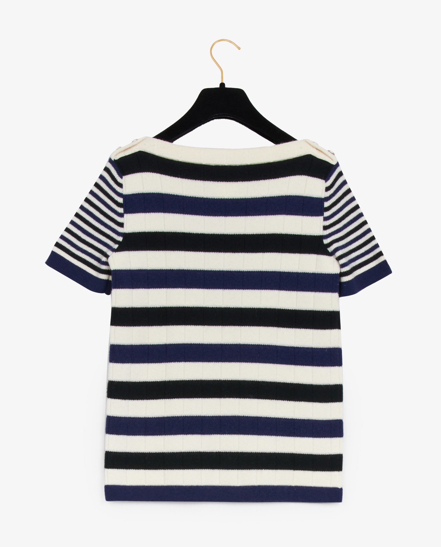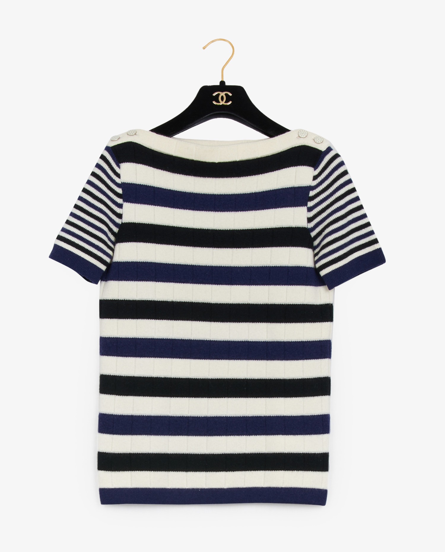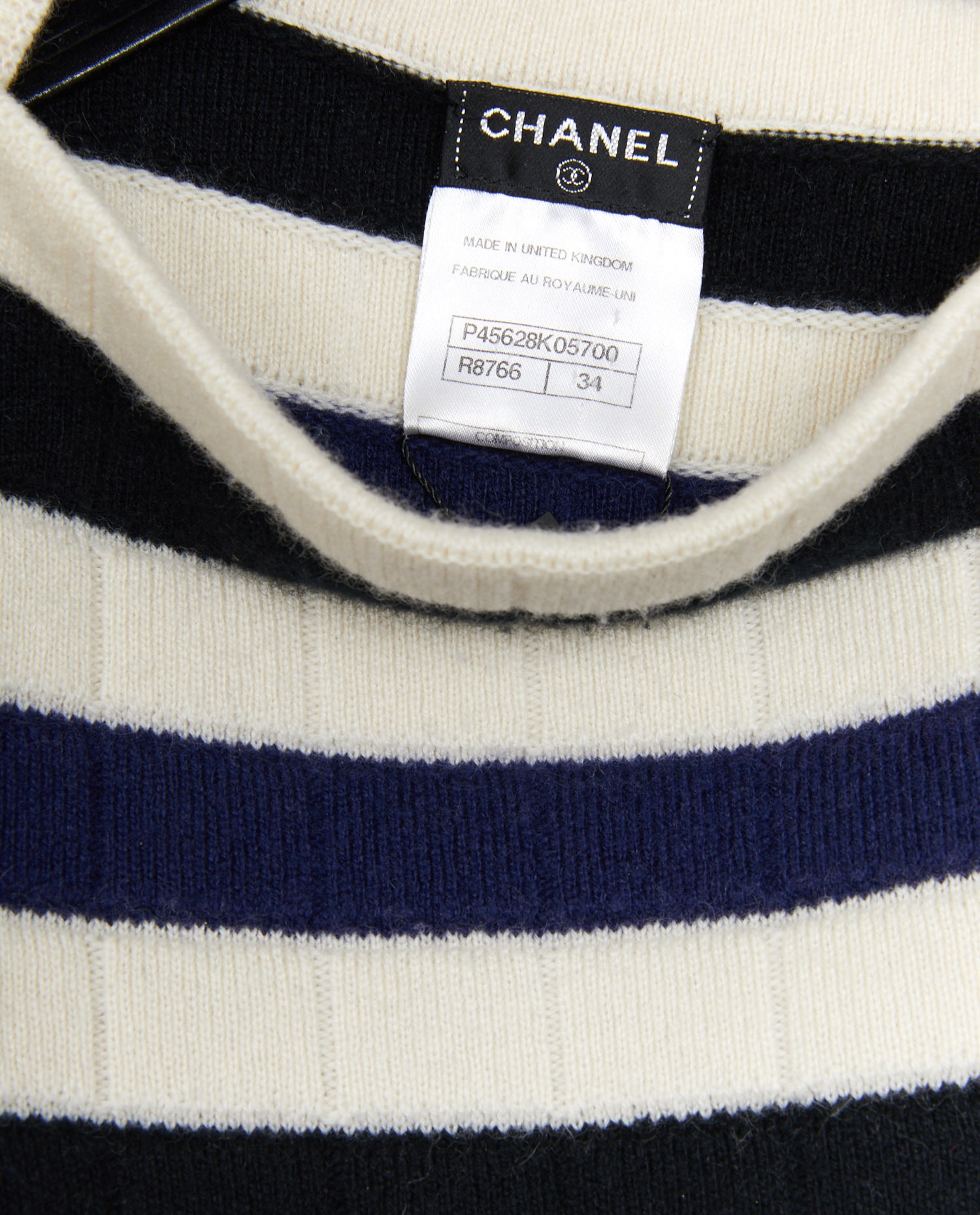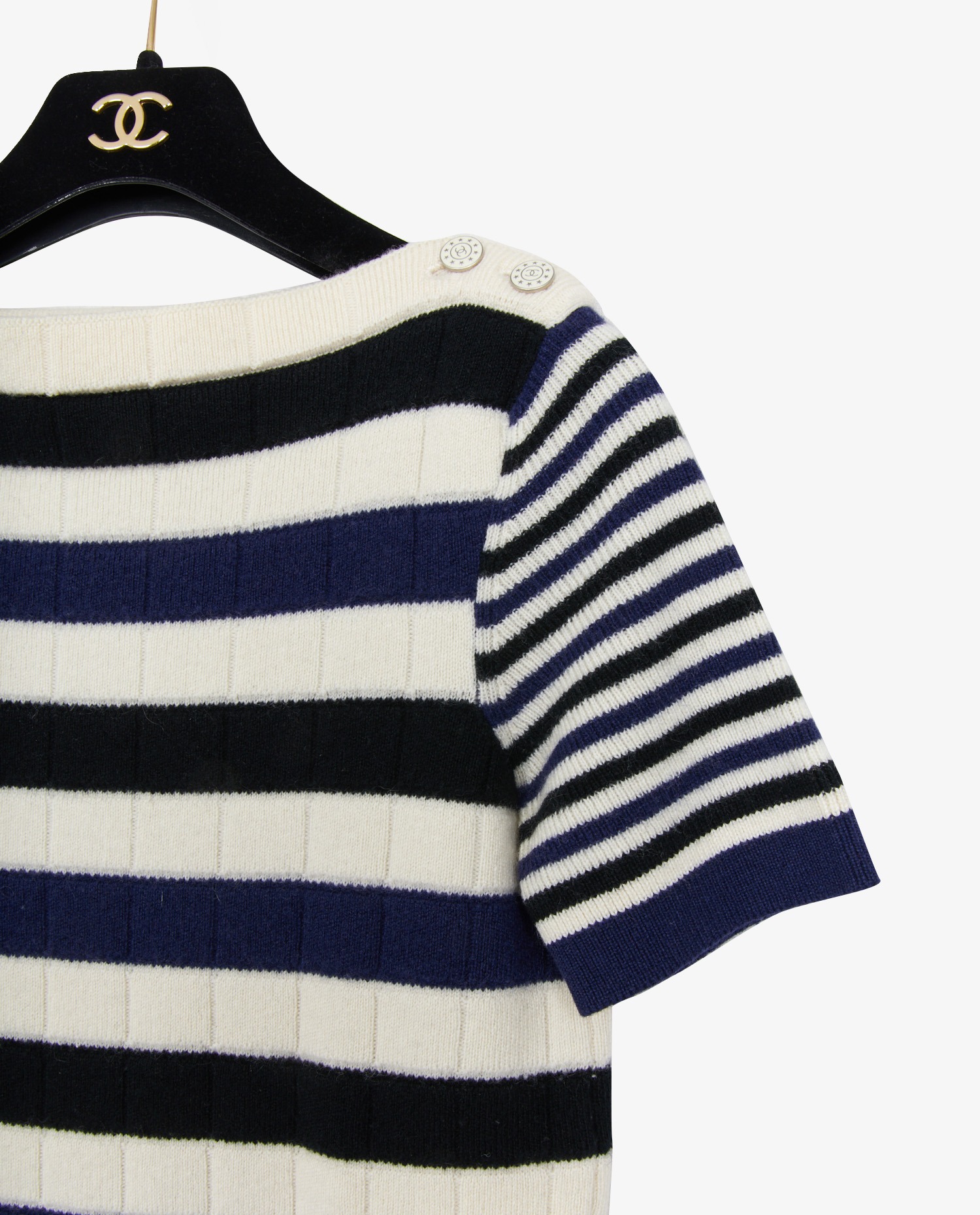 Chanel tricolor cashmere top with stripes. Size 34. In very good condition.