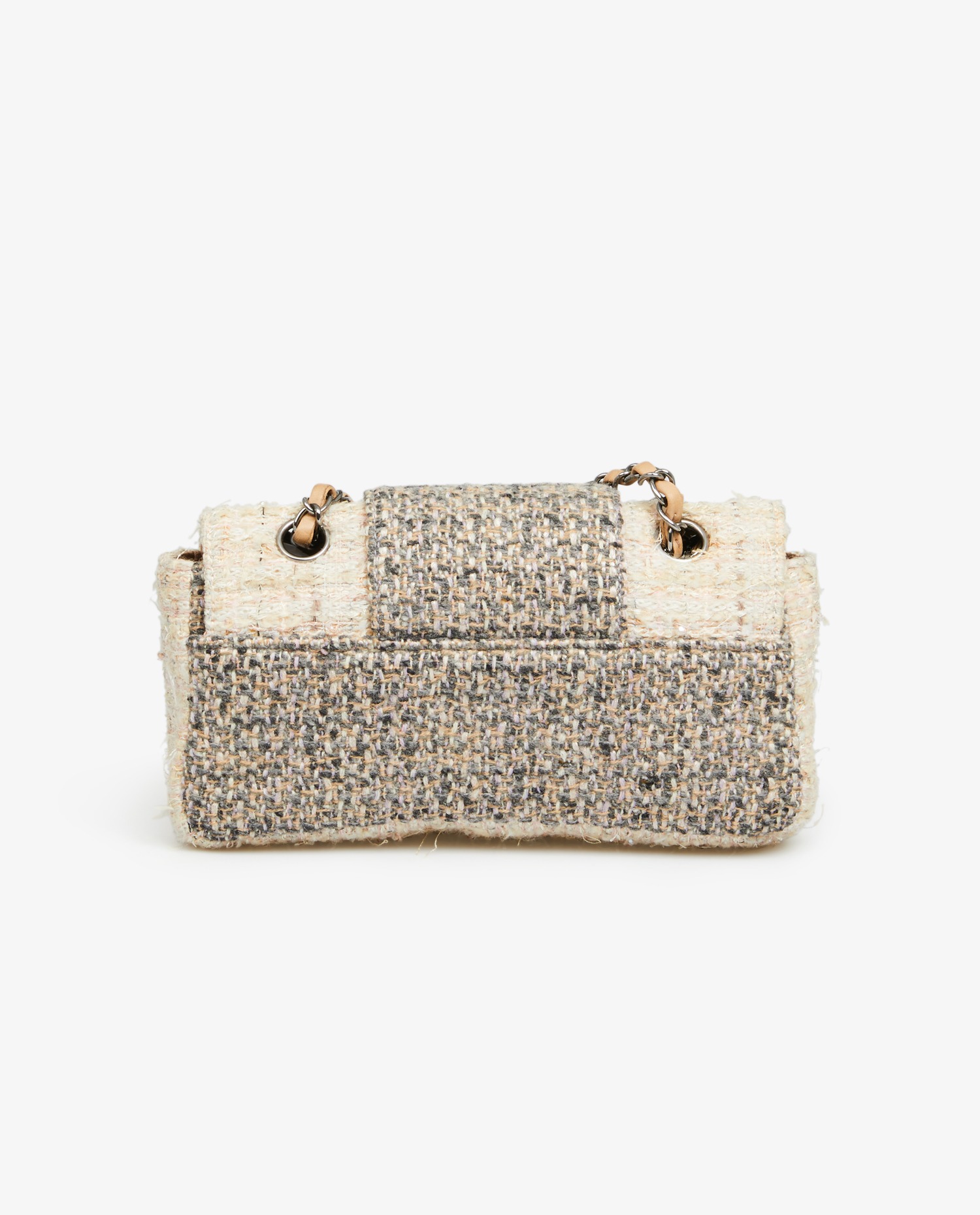 Chanel Classique bag in beige tweed. Carried on the shoulder or crossbody. The shoulder strap measures 95cm. The interior is in monogrammed fabric. In very good condition.