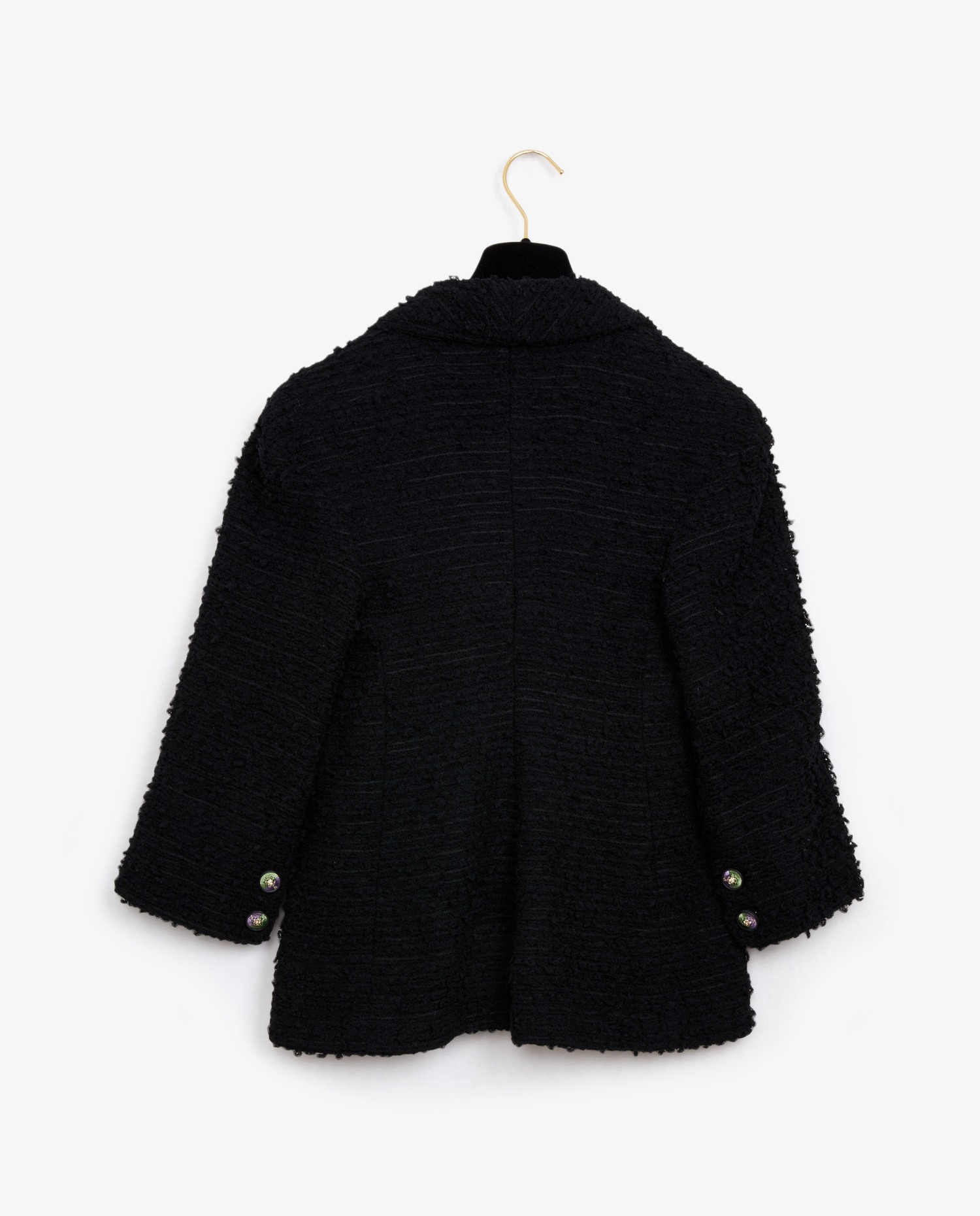 Chanel black double-breasted tweed jacket. Silk lining. Size 36. 3/4 sleeves. In very good condition.