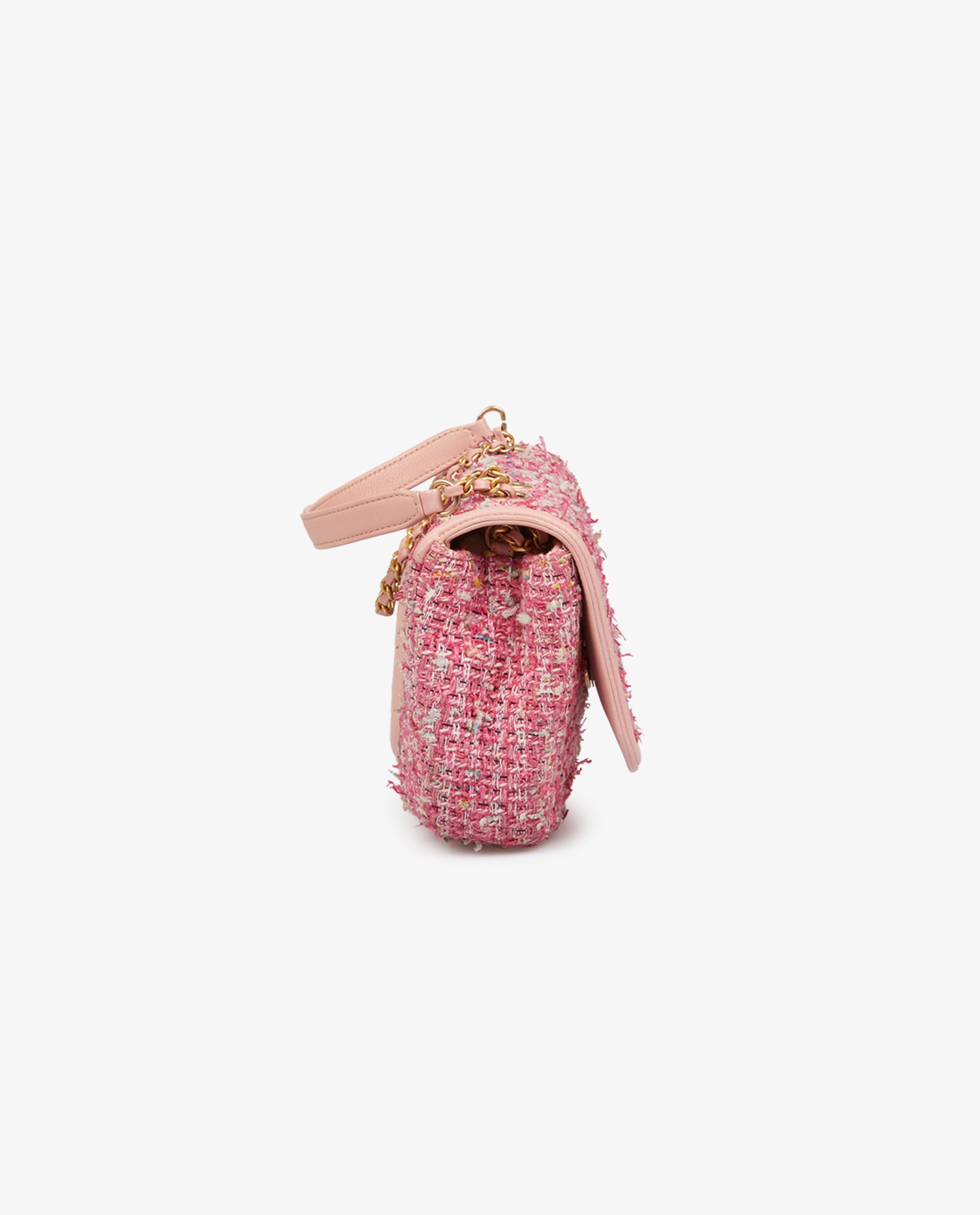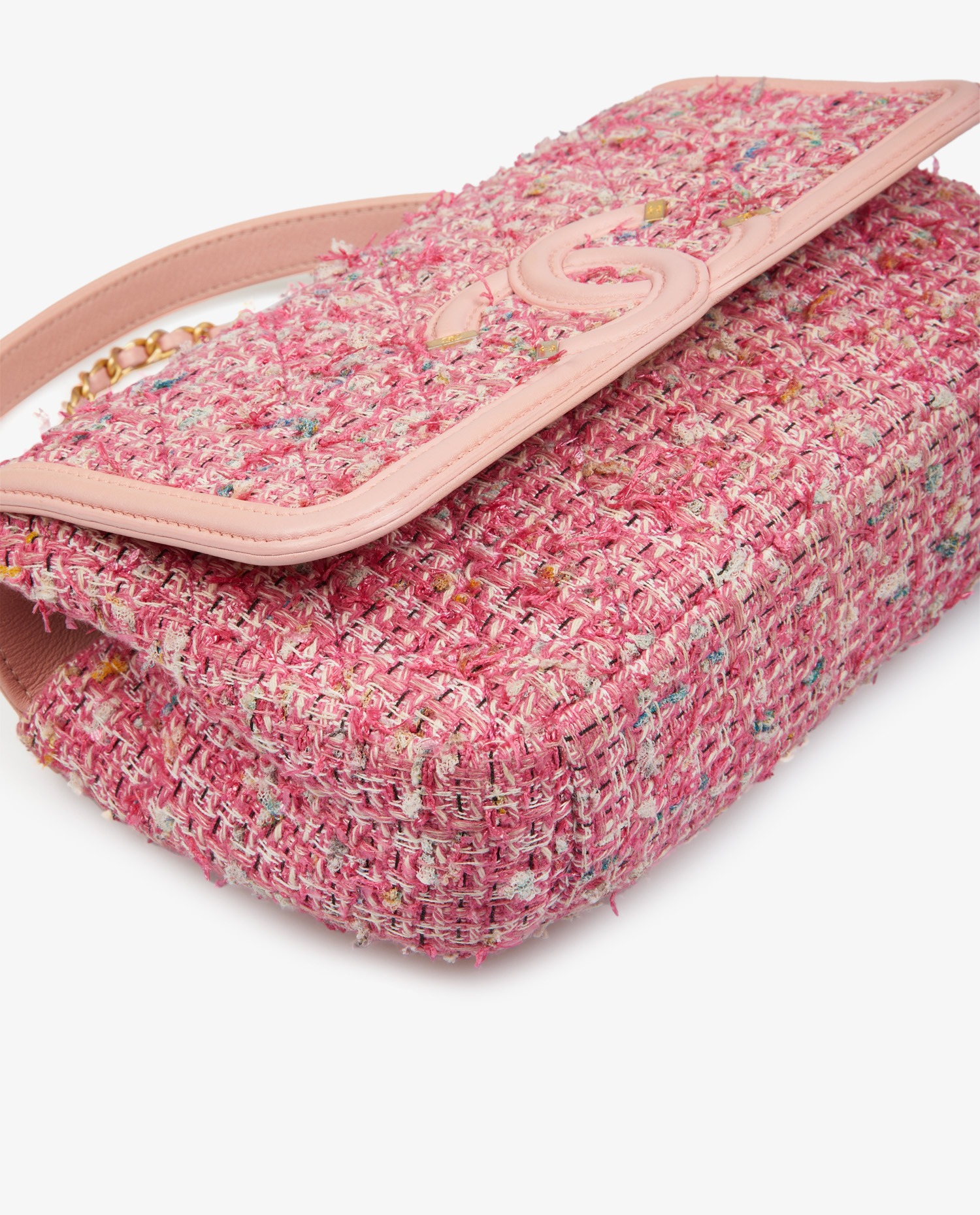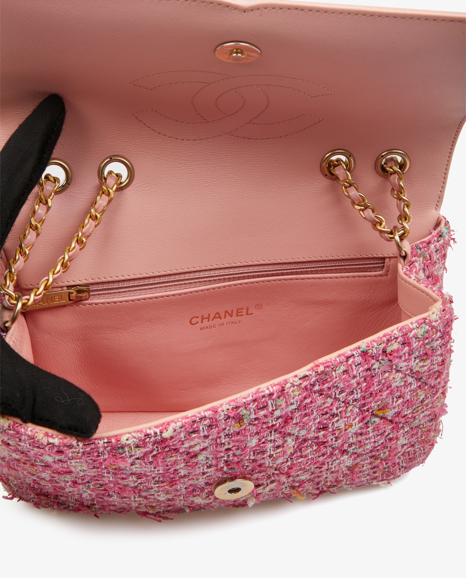 Chanel bag in pink tweed. Snap closure. Carried on the shoulder or across the body (124cm). The interior is in pink leather. In very good condition.