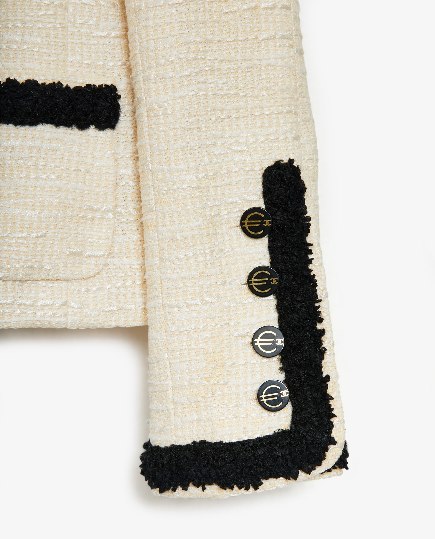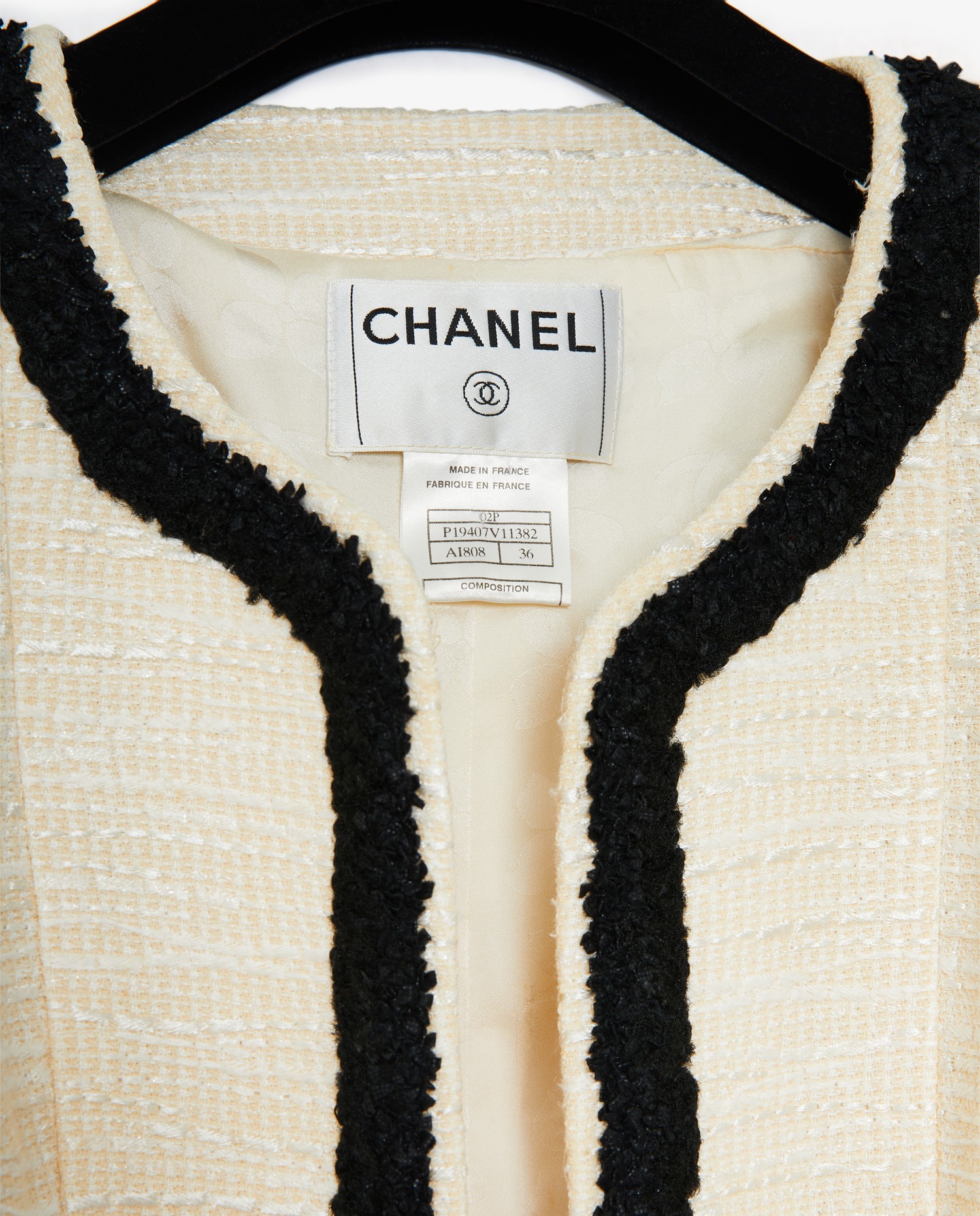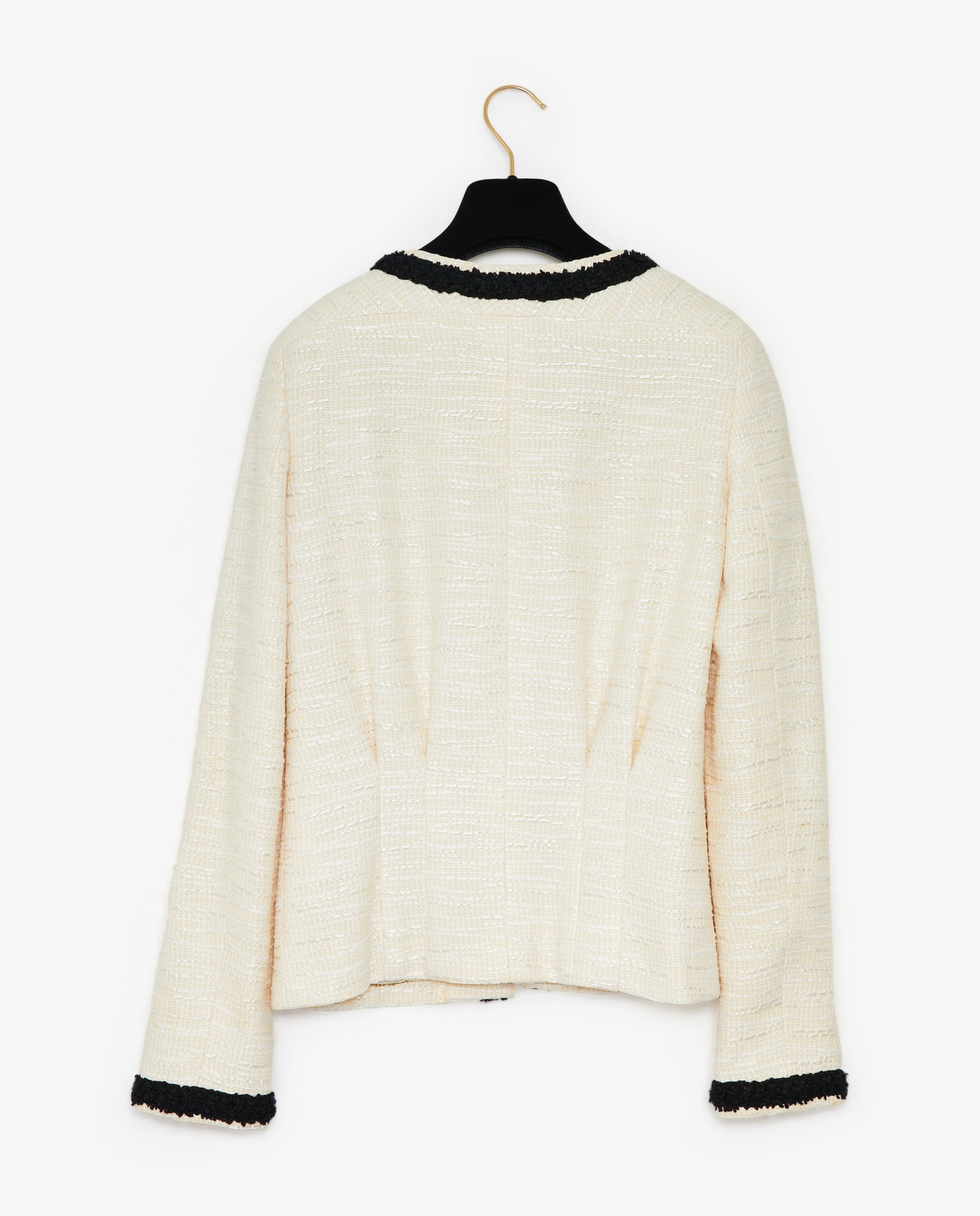 Chanel jacket in two-tone tweed. Two front patch pockets. Size 36. In very good condition.