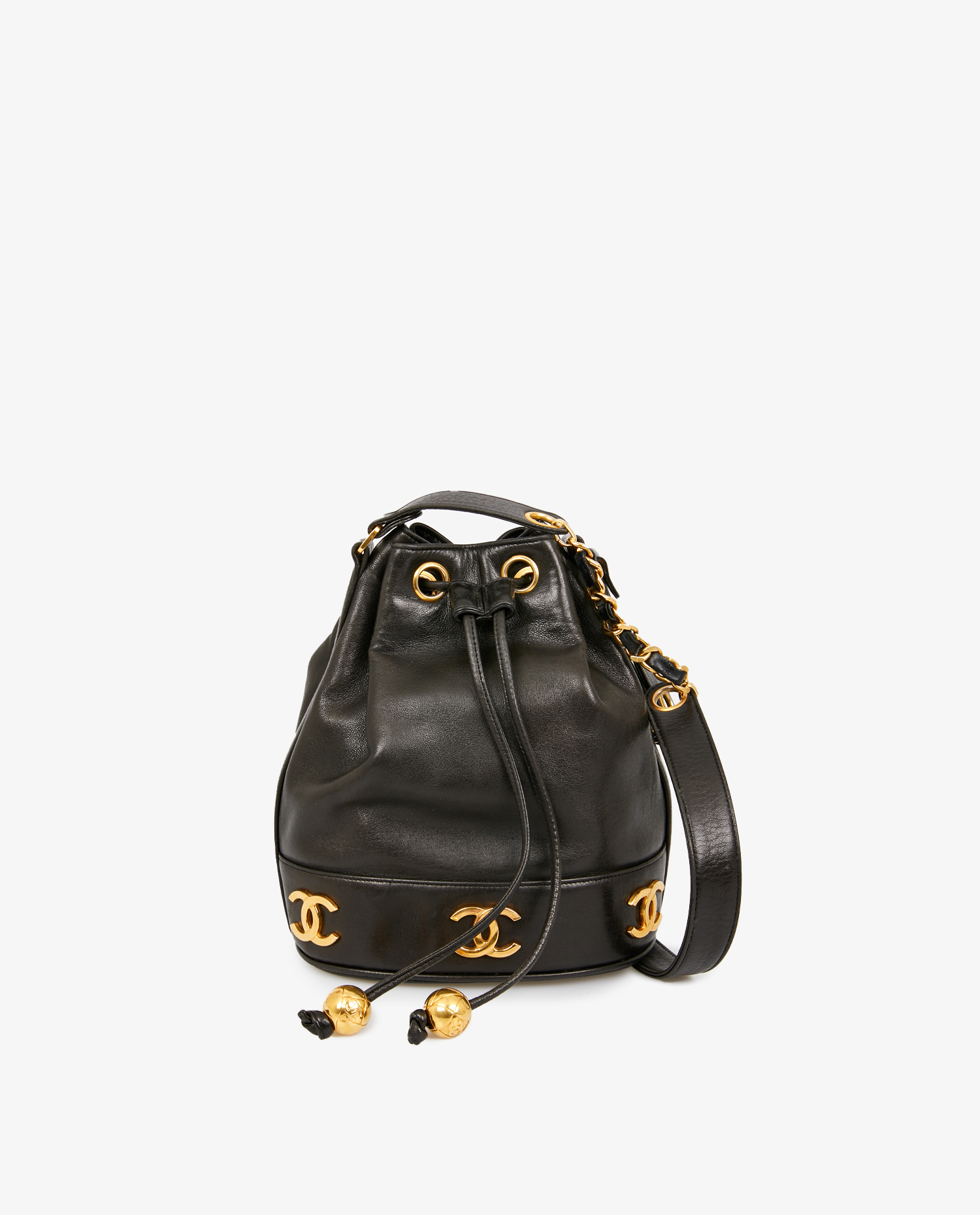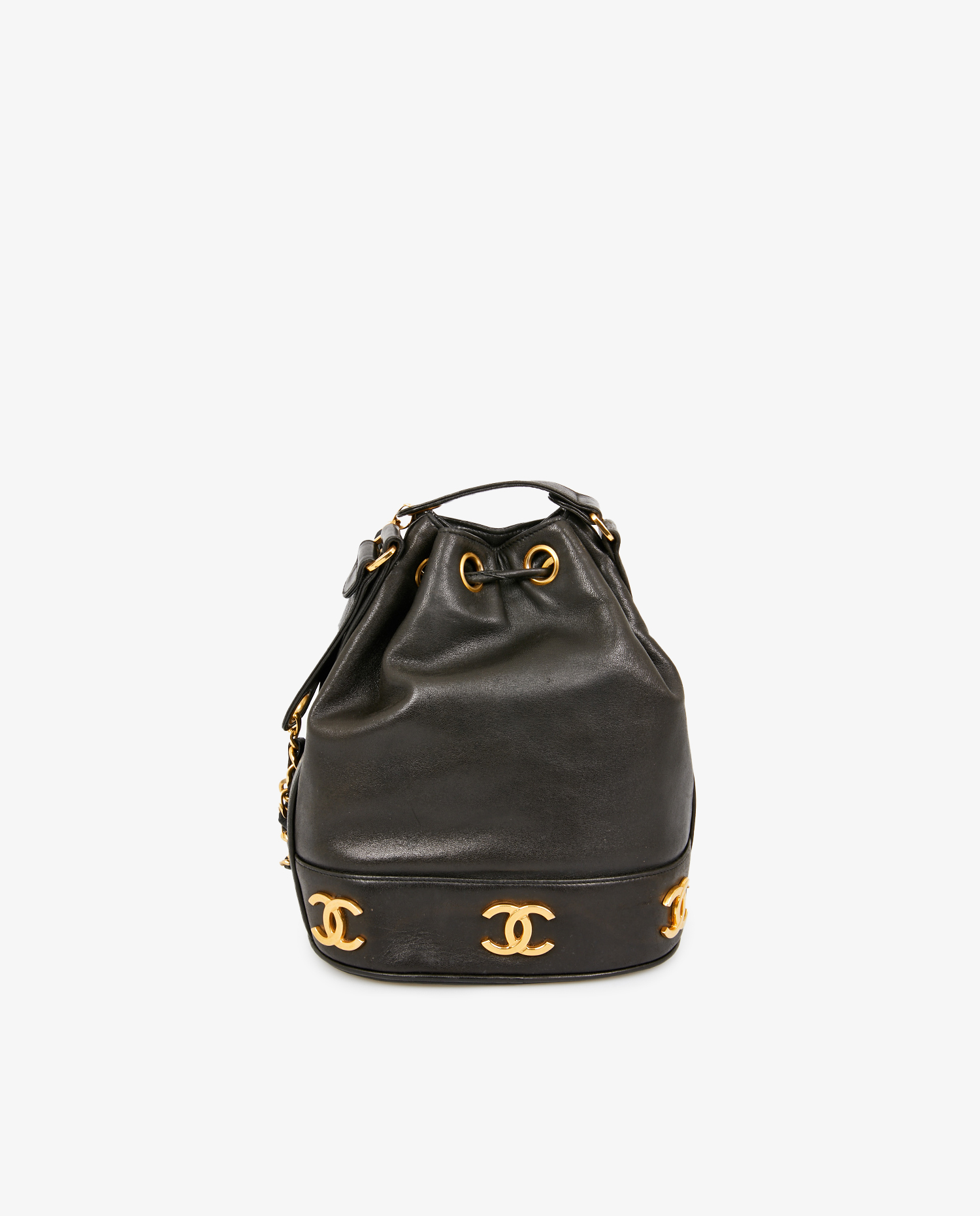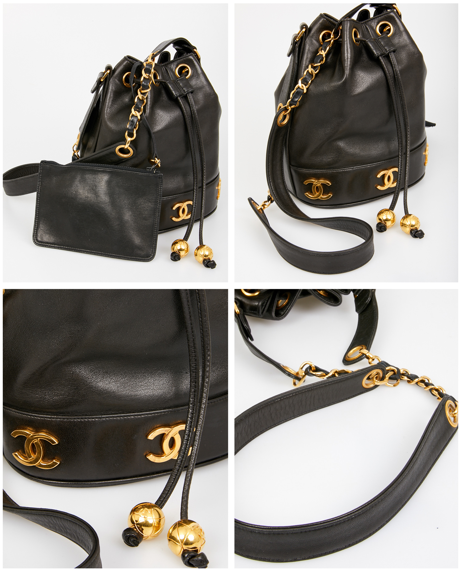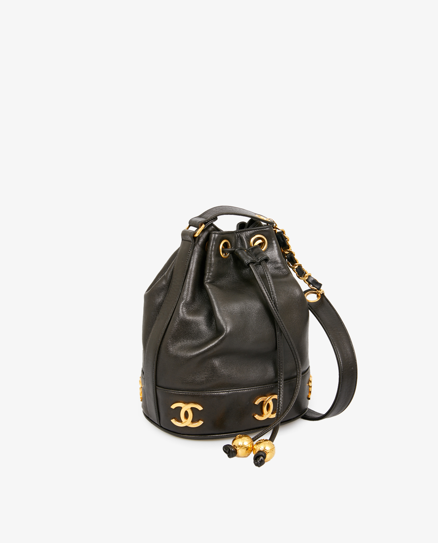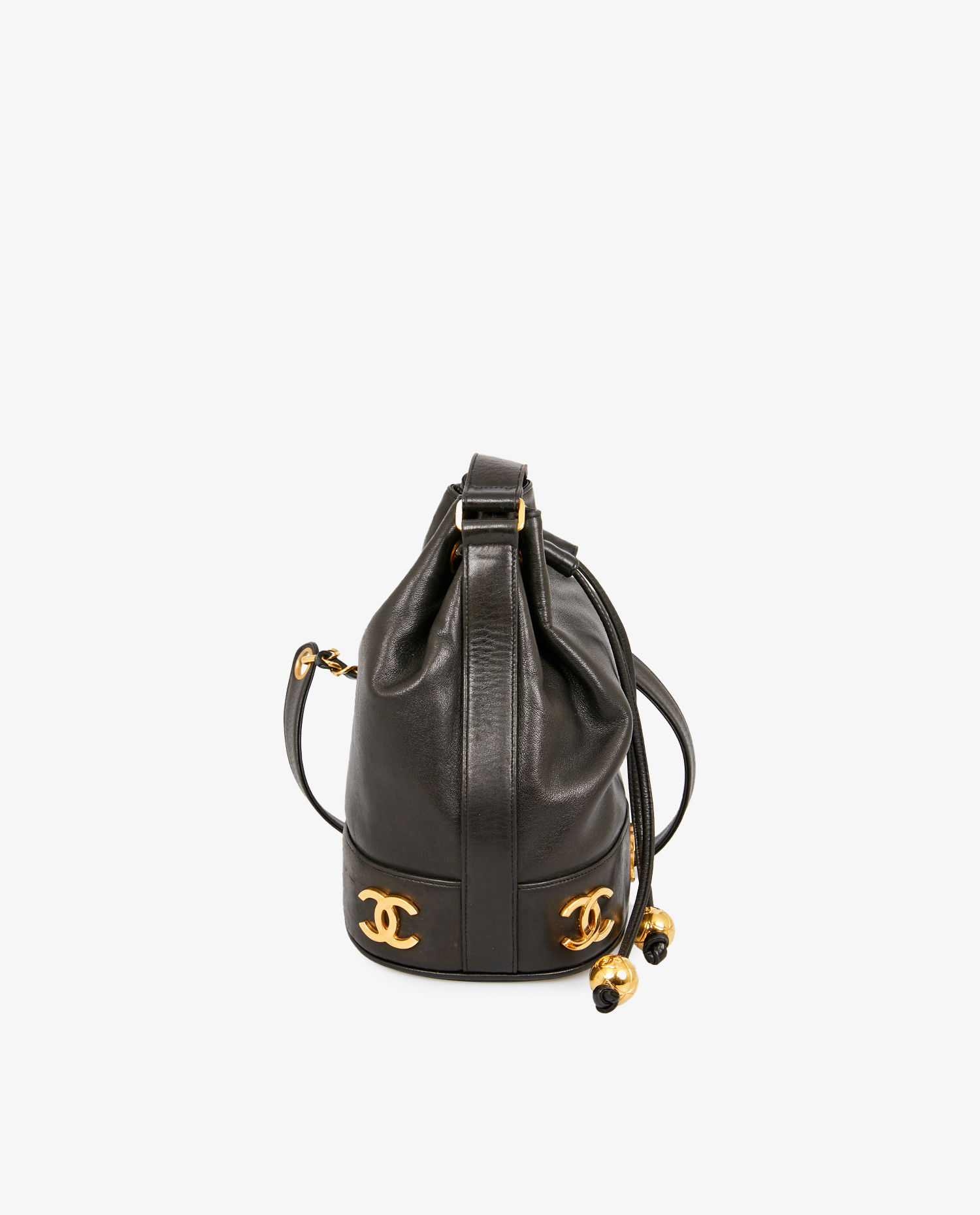 Vintage Chanel bucket bag in black lambskin. In very good condition.