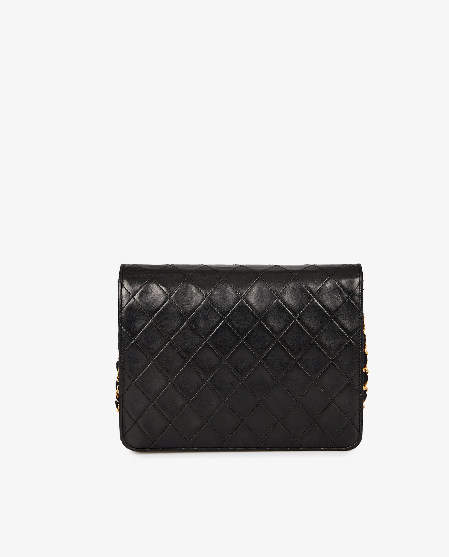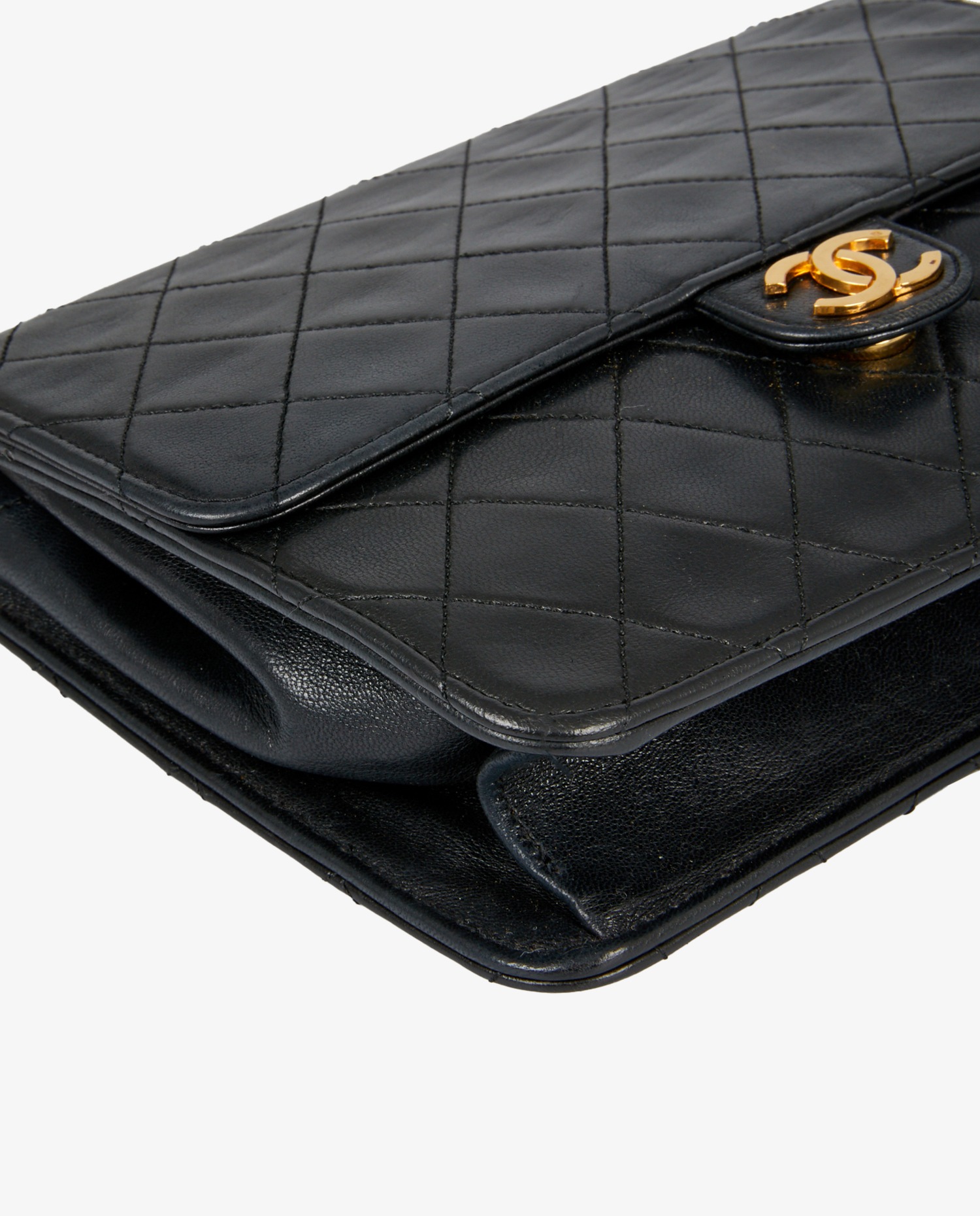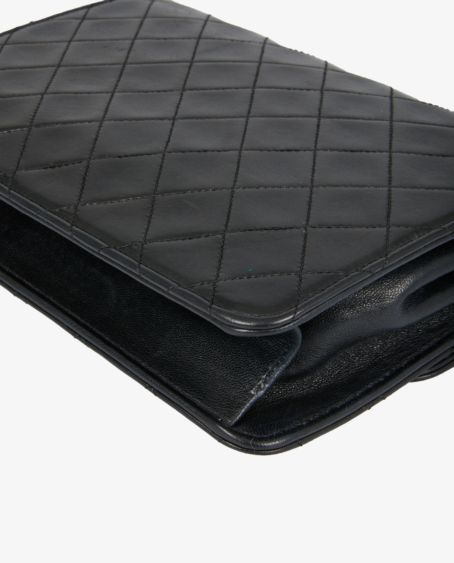 Chanel vintage quilted black leather bag. Carried on the shoulder (90cm). The interior is in burgundy leather. In very good condition.