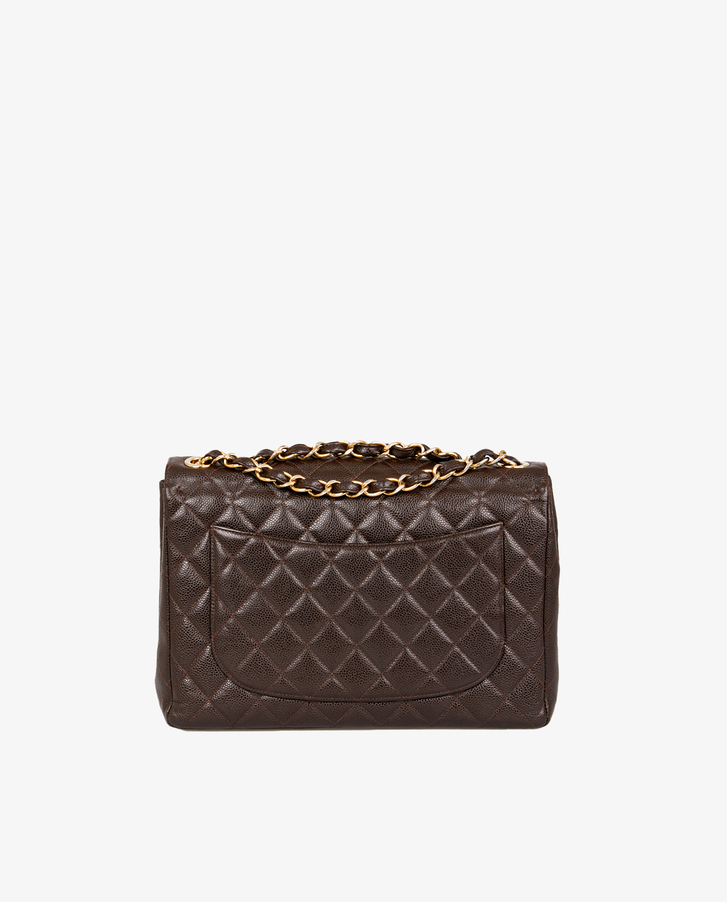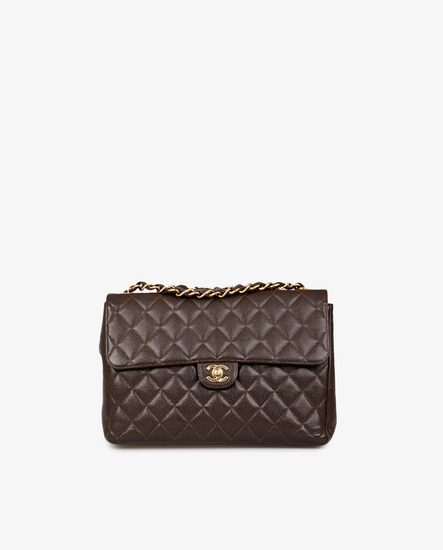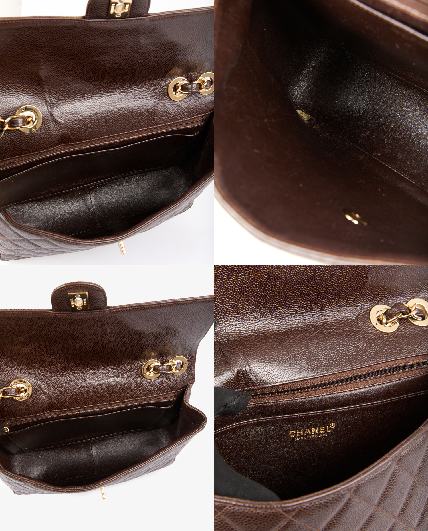 Vintage Chanel bag in brown grained leather. Carried on the shoulder or across the body (132cm). In very good condition.