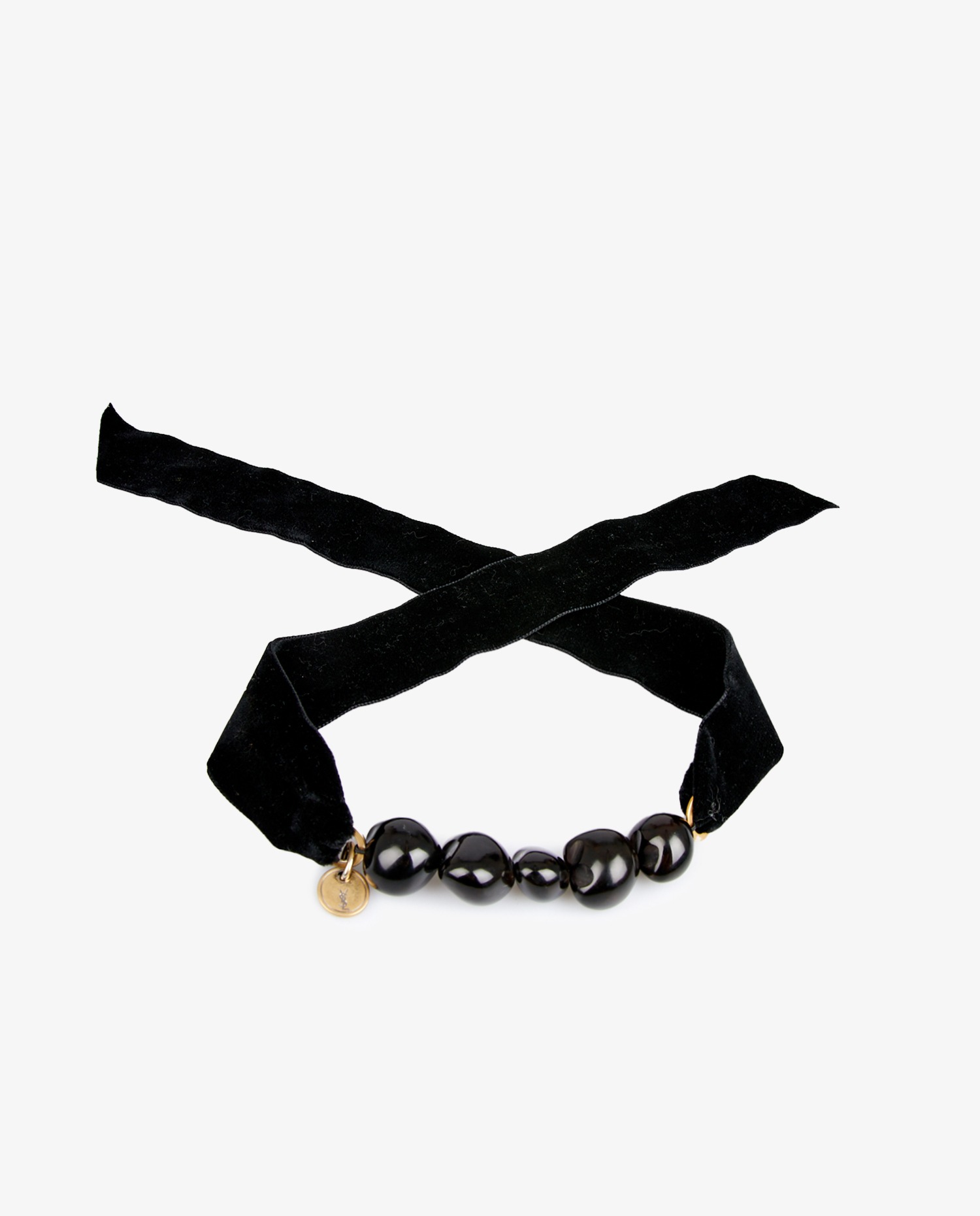Vintage Yves Saint Laurent choker with black velvet headband and plastic center balls. In very good condition.