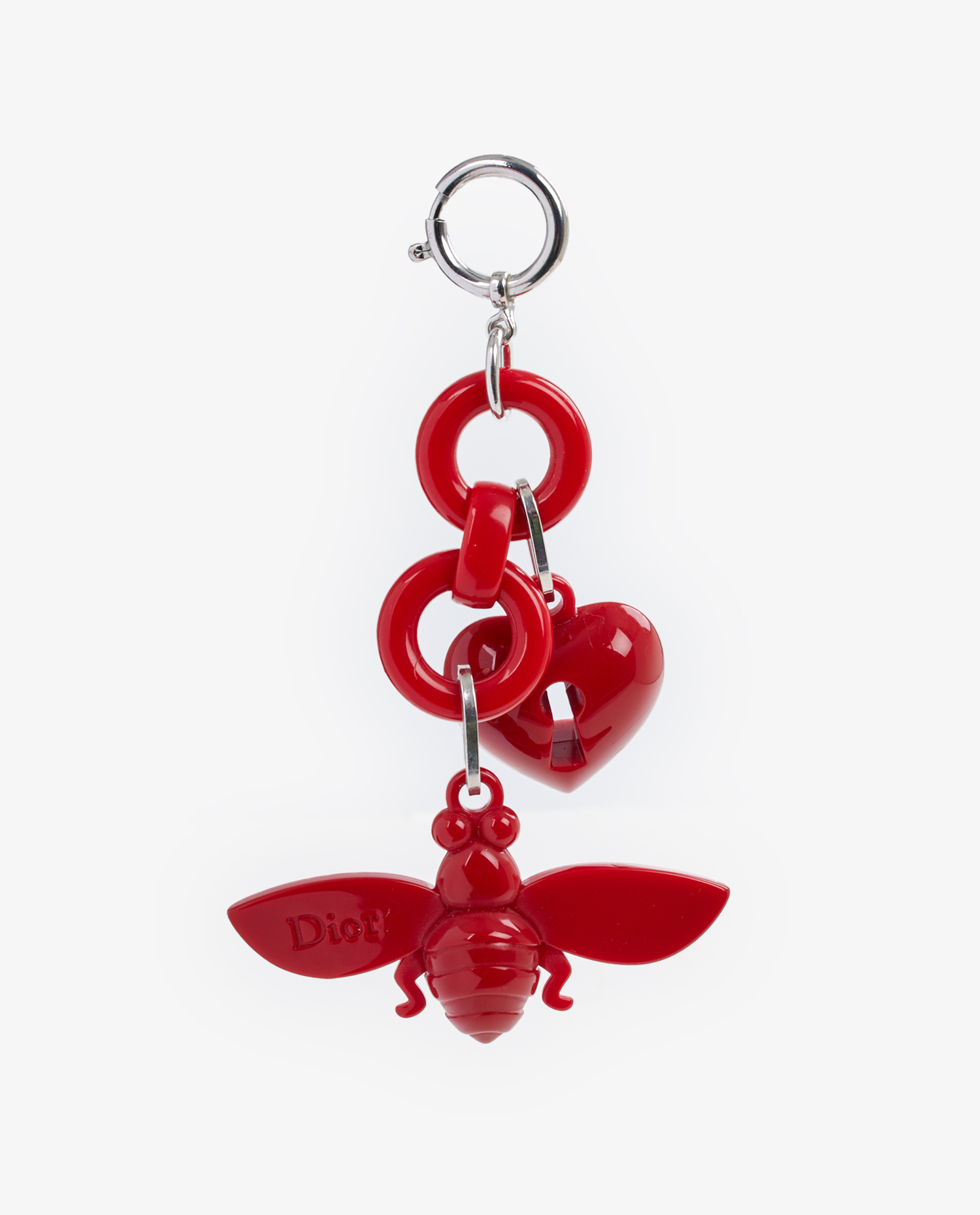 Christian Dior “bee” and “lock” red plastic key ring. In very good condition.