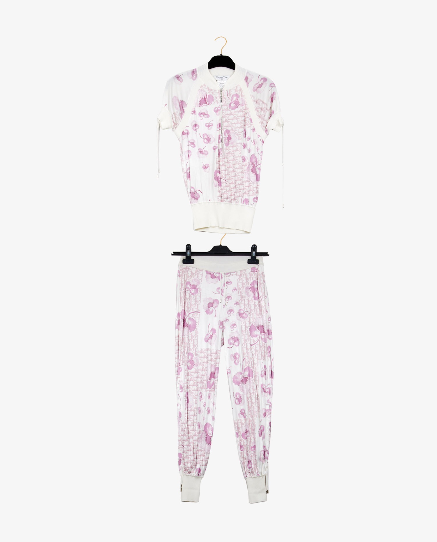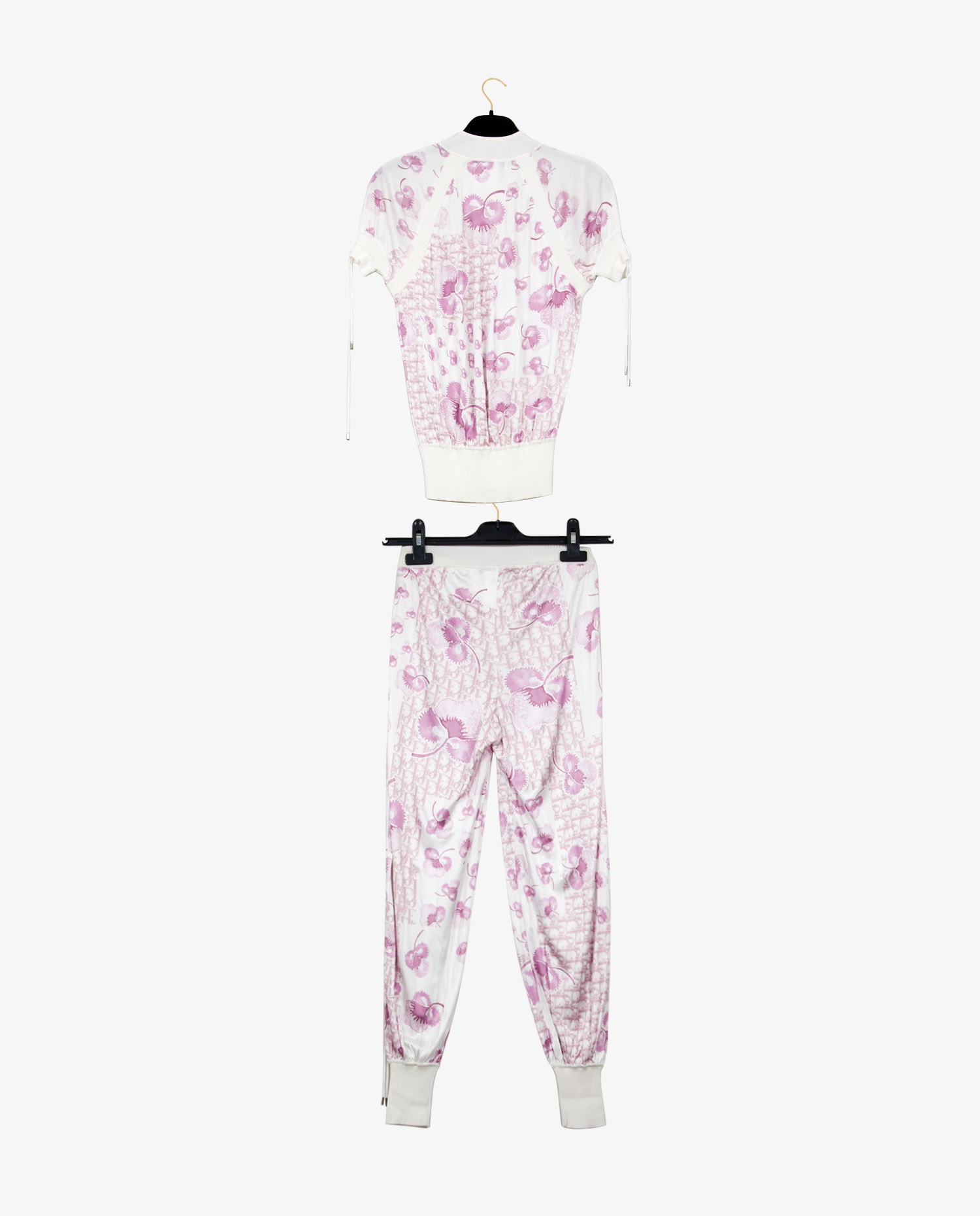 Christian Dior ensemble in pink monogrammed silk. Zipped vest and pants. In very good condition.