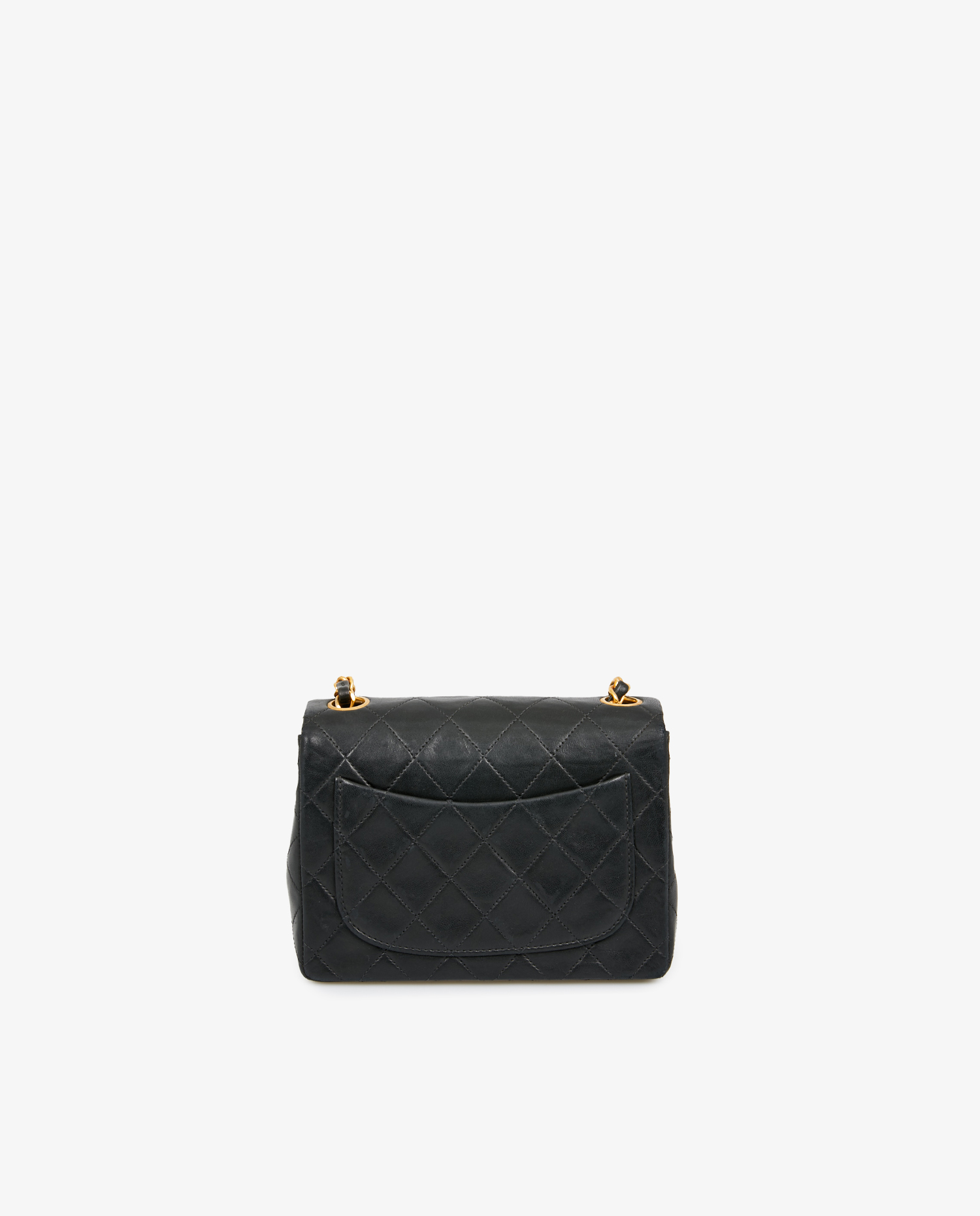 Chanel Classique mini bag in black quilted lambskin. Carried on the shoulder or across the body (112cm). The interior is in burgundy leather. The jewelry is 24K gold-plated. In very good condition.