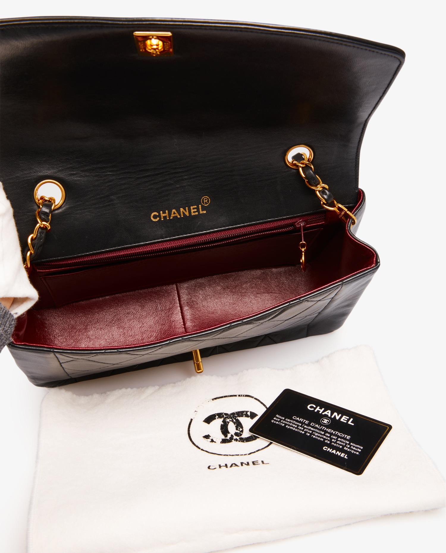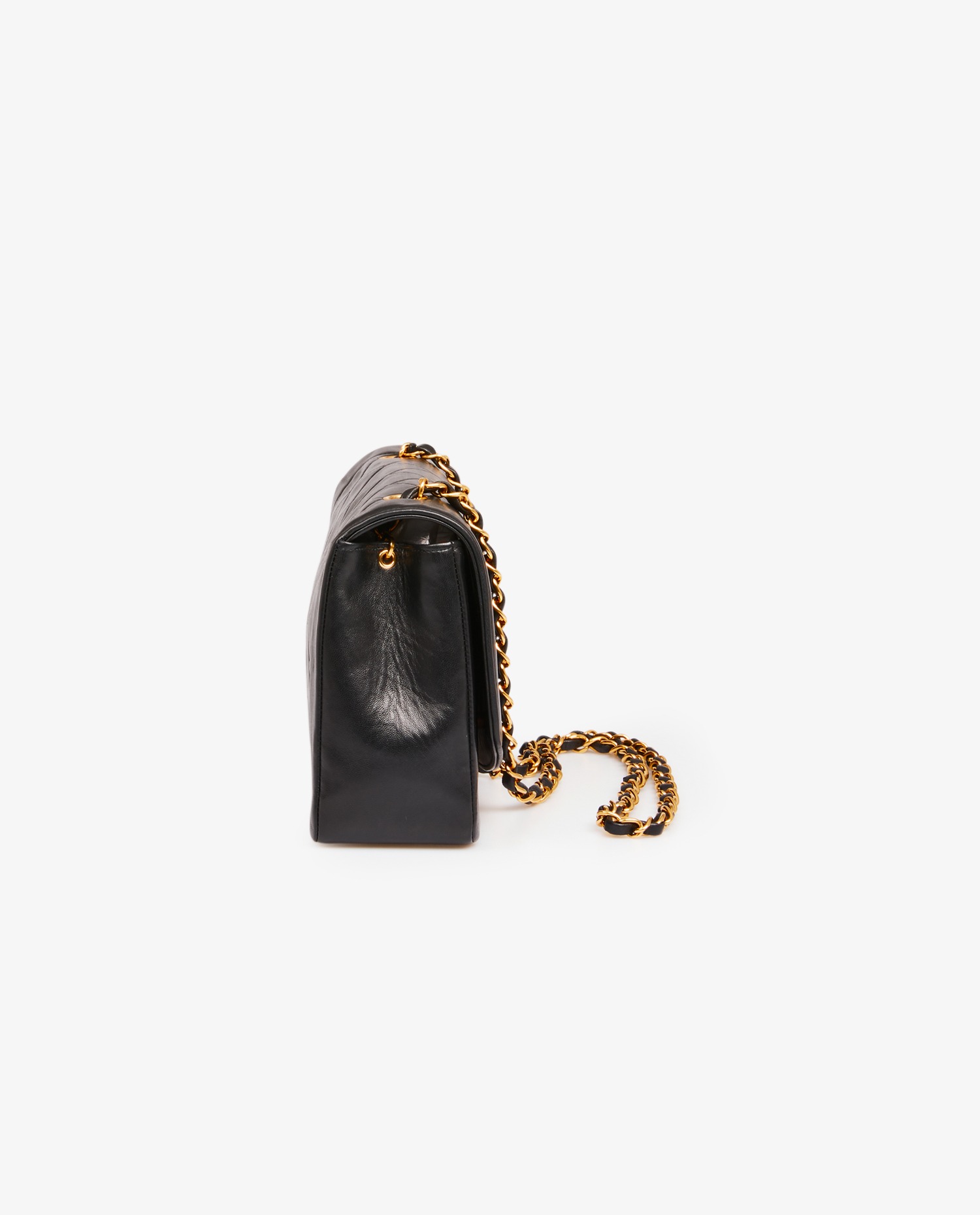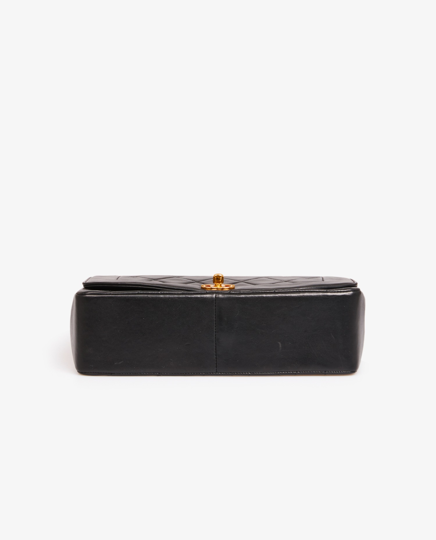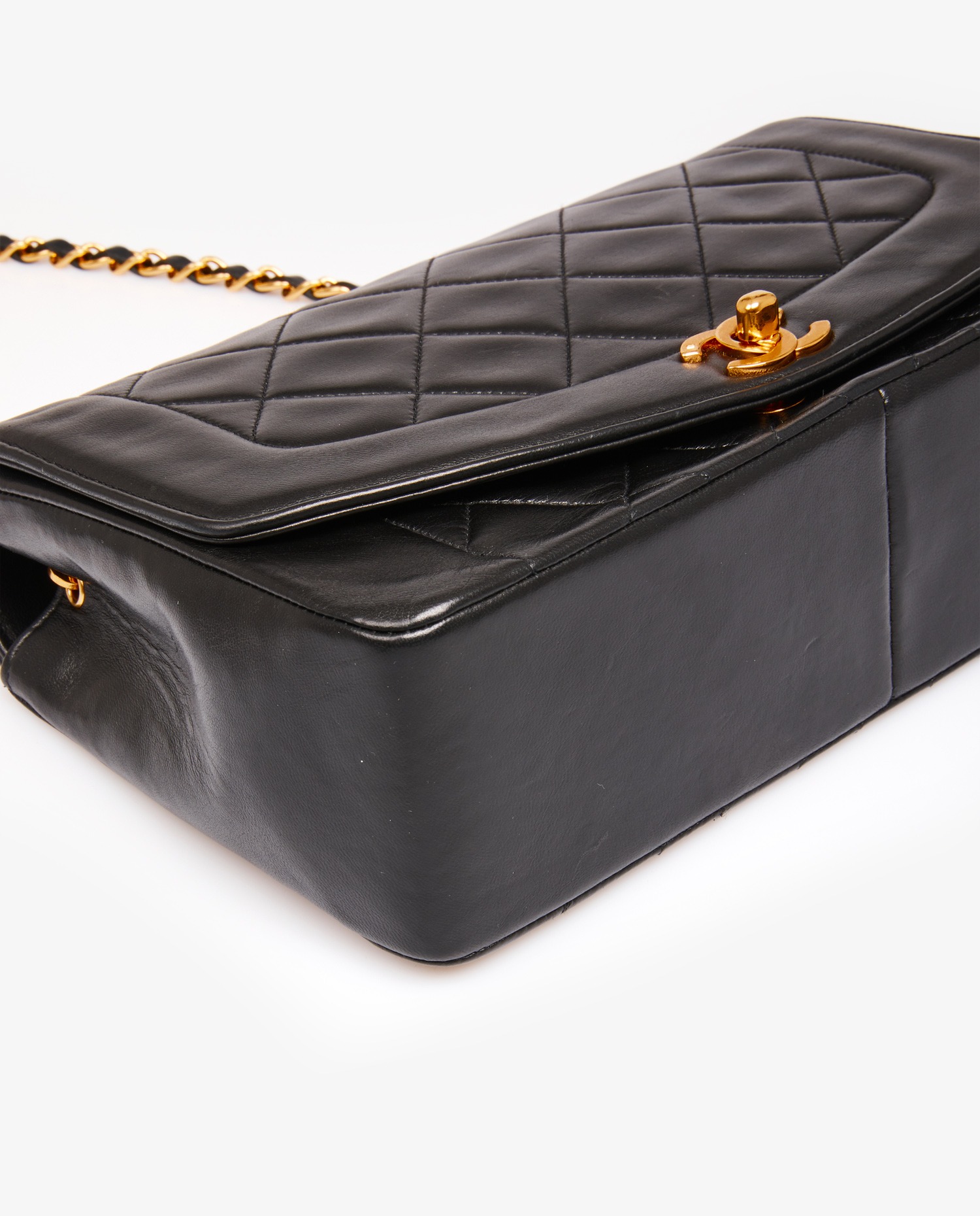 Diana Chanel bag in black quilted lambskin. CC clasp. Carried on the shoulder or crossbody. The shoulder strap measures 109cm. In very good condition.