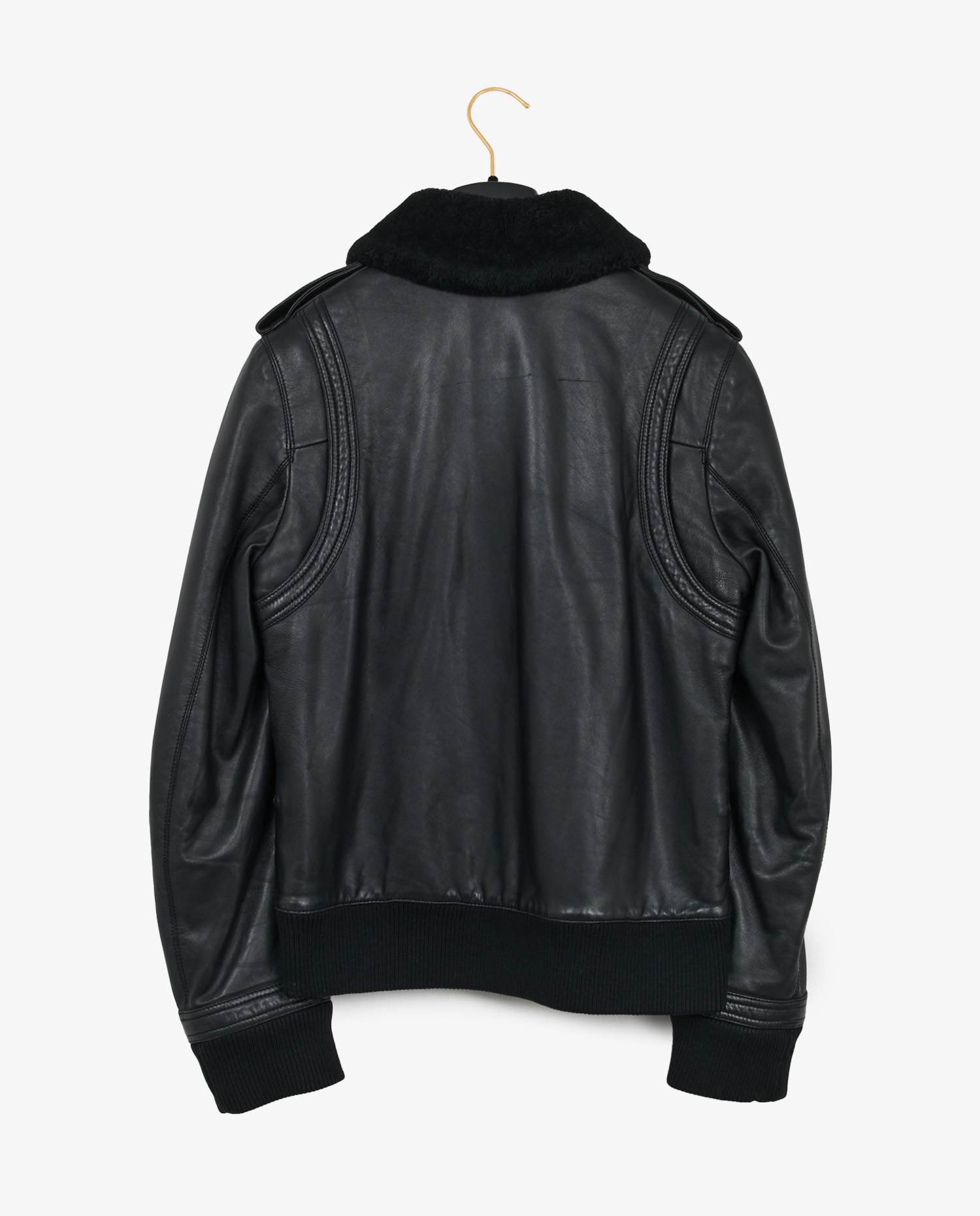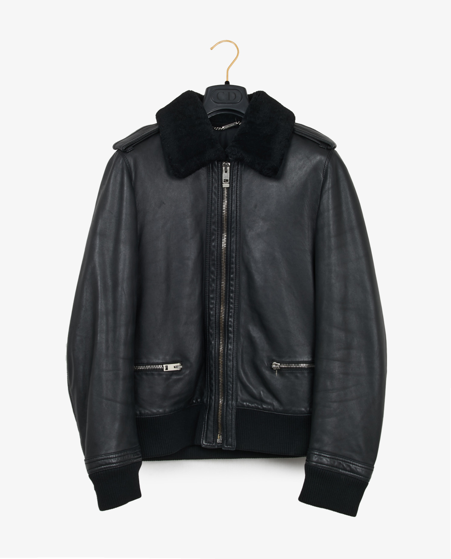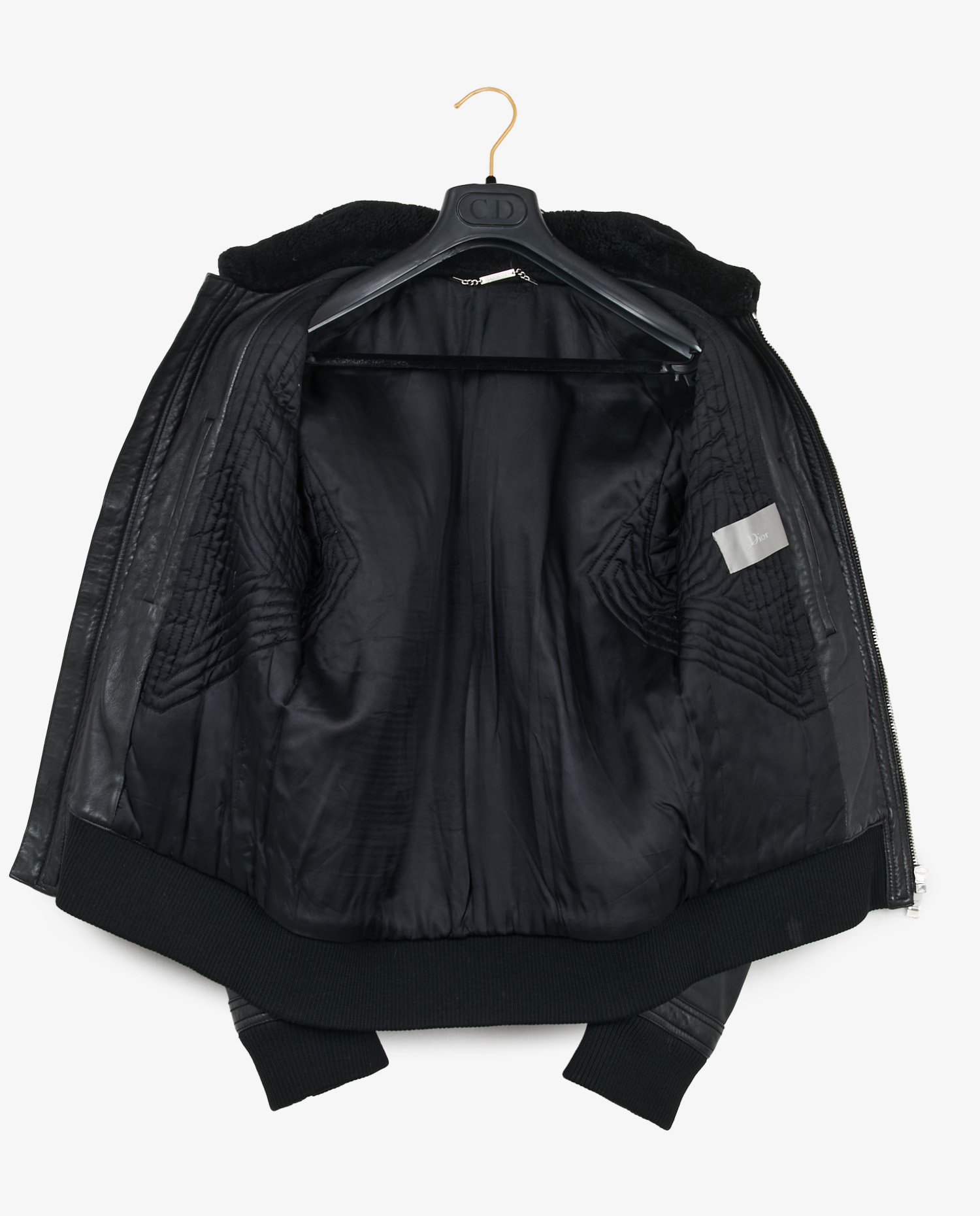 Dior jacket in black lambskin. Zipper closure. Turned-skin collar. Tight at the waist. Size 46. In very good condition.