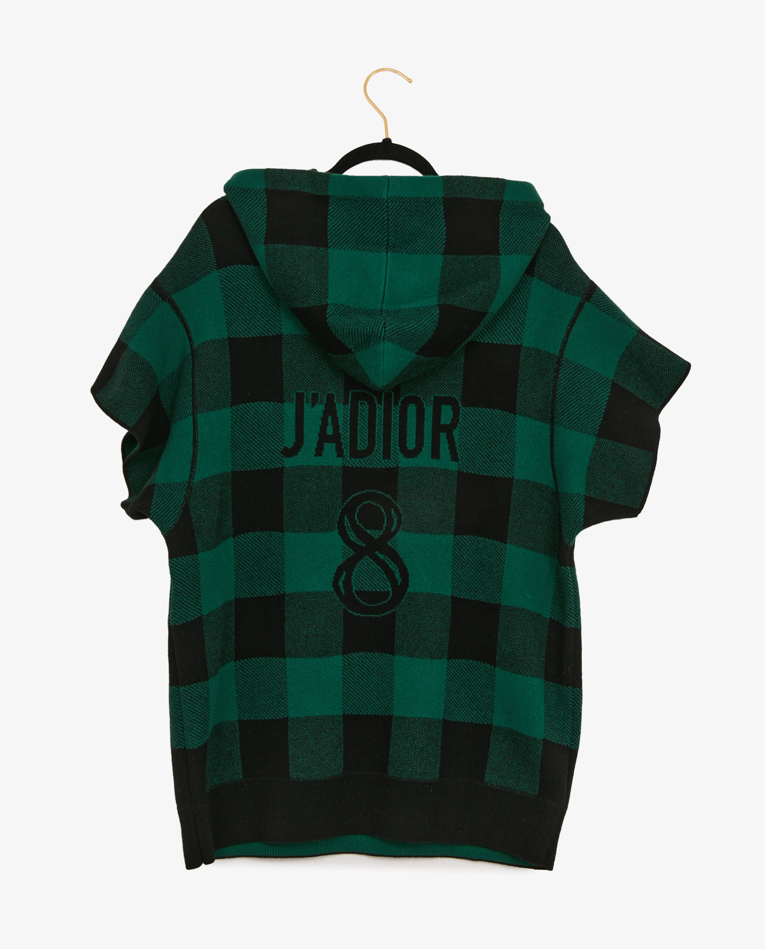 Dior black and green gingham pattern short-sleeve hoodie in cashmere. J’adior motif on back (see photos). Size 48. In very good condition.