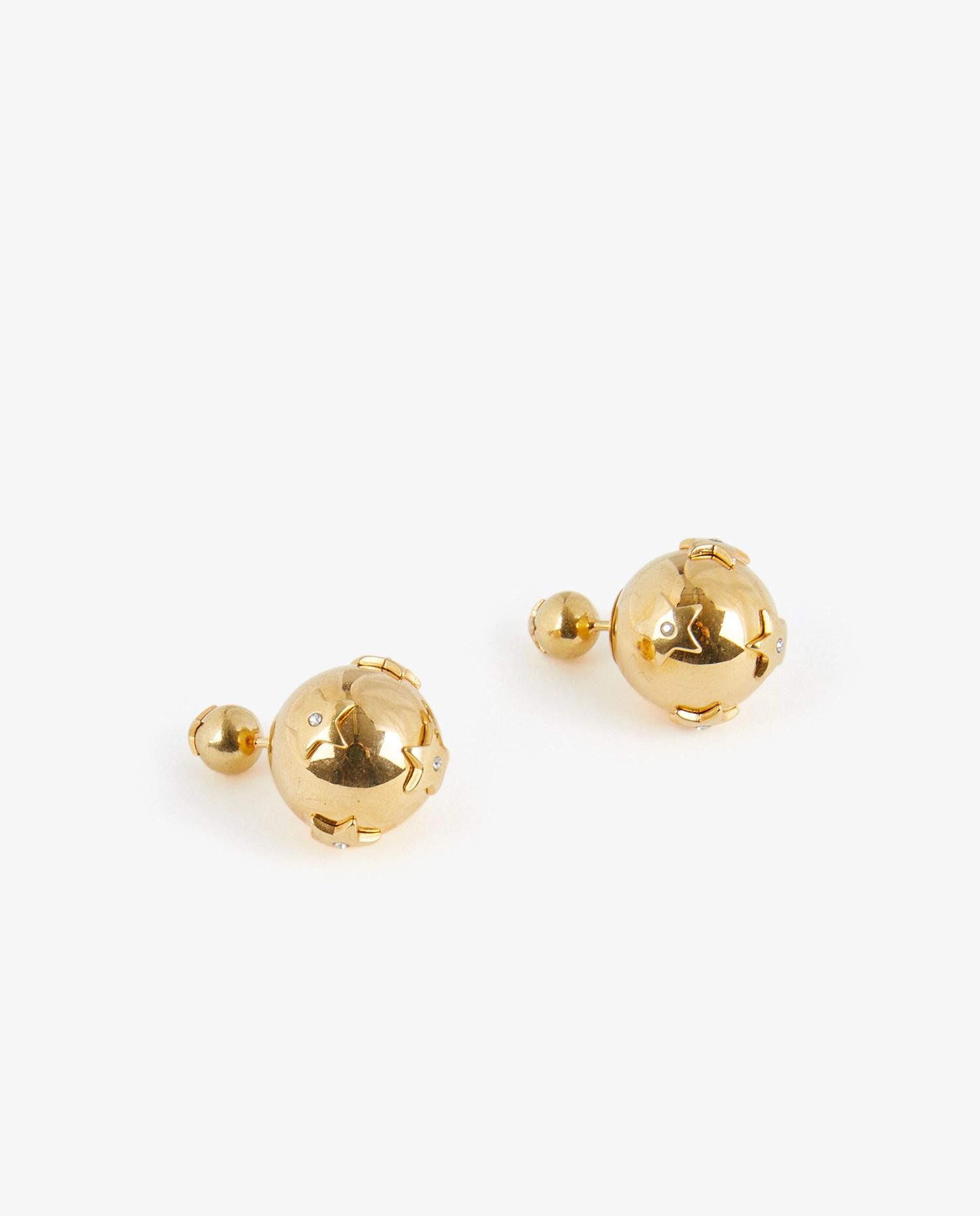 Golden Dior tribal earrings with stars and rhinestones in the center. In very good condition. Small scratches visible on one. Bead diameter 1.6.