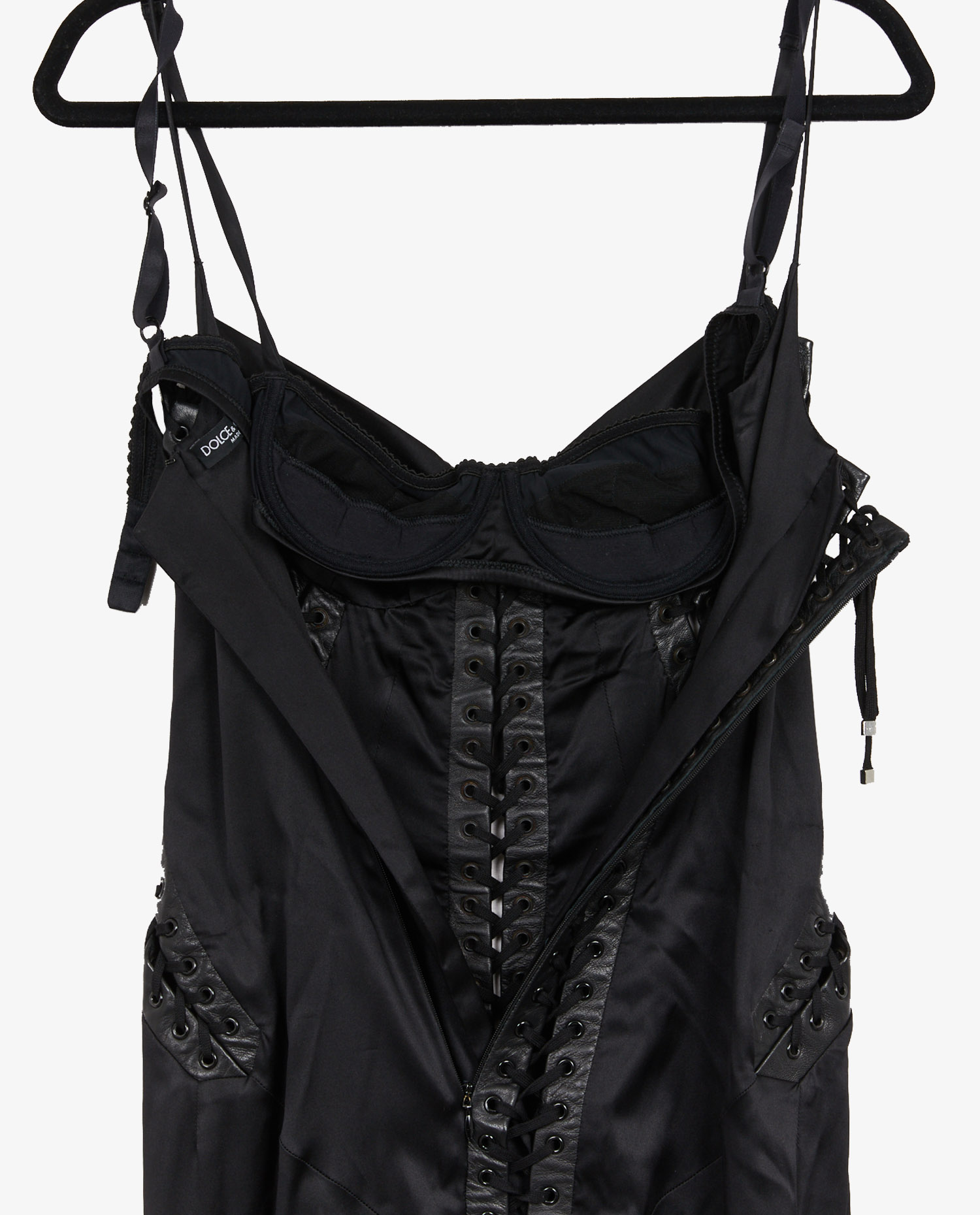 Dolce & Gabbana black satin corset maxi dress. Integrated bra. Close to the body. Size 40 IT equals 36 FR. In very good condition.