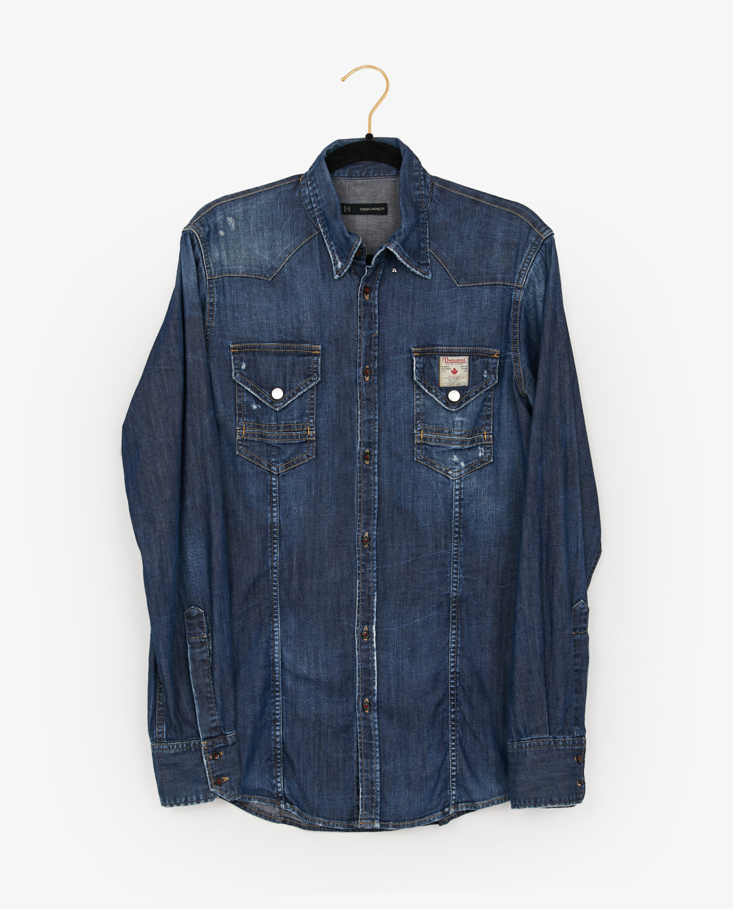 The denim shirt is part of the heritage of early 20th-century American workwear, later popularized as a symbol of Western and rock culture. Dsquared, founded by twins Dean and Dan Caten in the ’90s, revisits this classic with a contemporary twist and intricate detailing. The brand’s denim shirts are renowned for their slim fit and Canadian/American-inspired aesthetic, true to the designers’ origins.