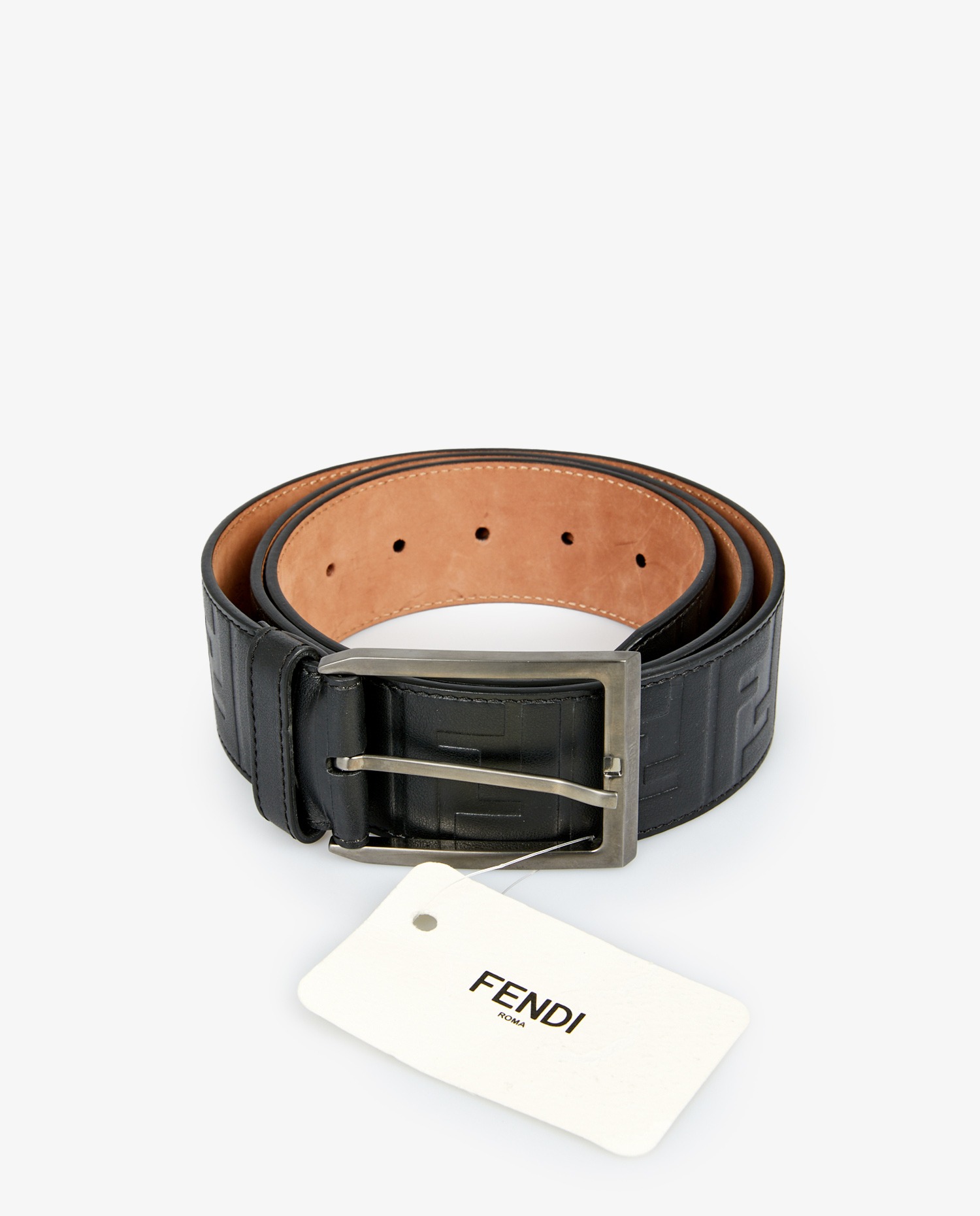 Fendi black embossed leather belt. Matt silver buckle. Size 105cm. Never worn. Price label always present.