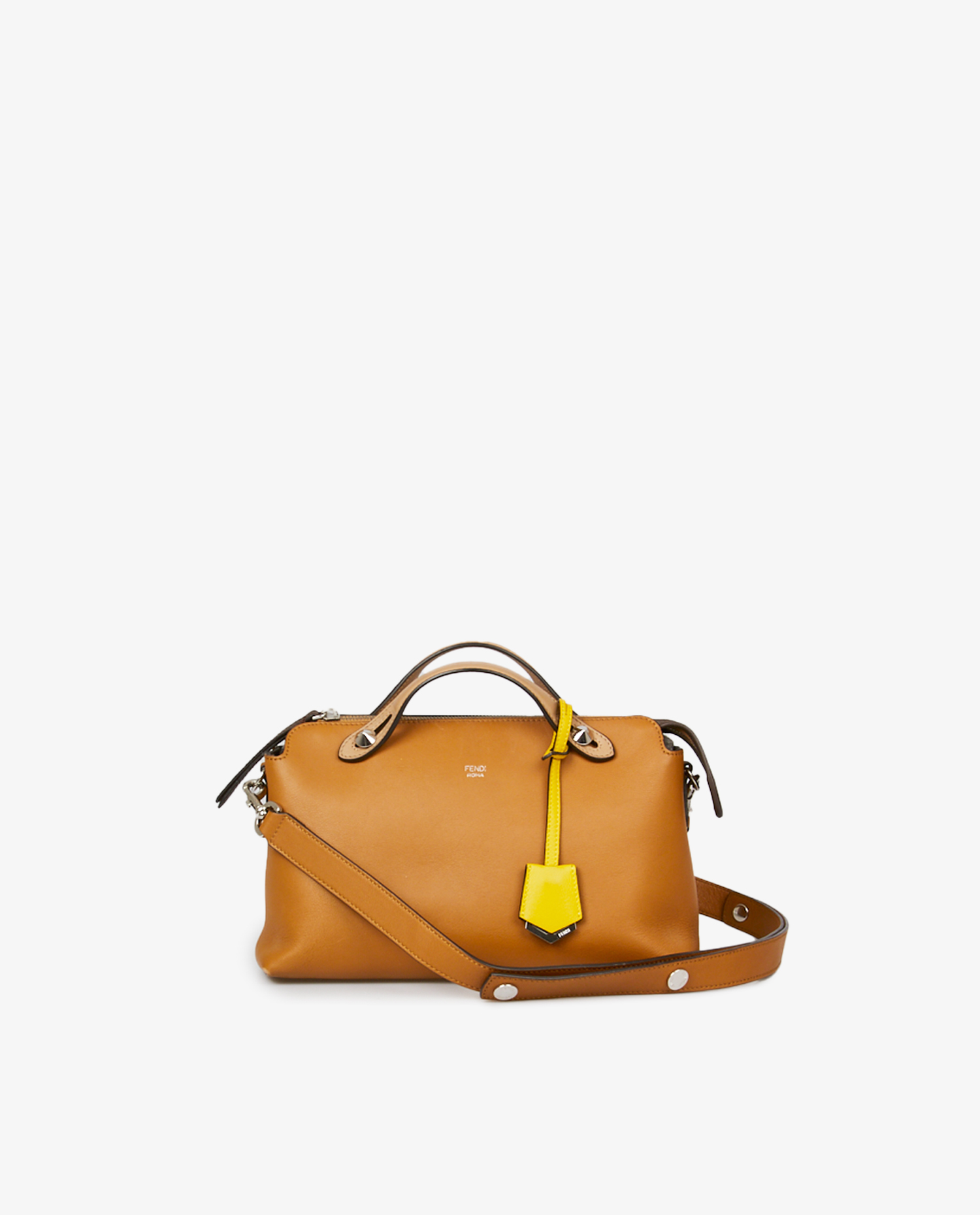 Fendi By the way bag in gold leather. Hand-carried as a clutch or crossbody with removable shoulder strap (shortest 80cm, longest 114cm). The interior is in brown fabric. In very good condition.